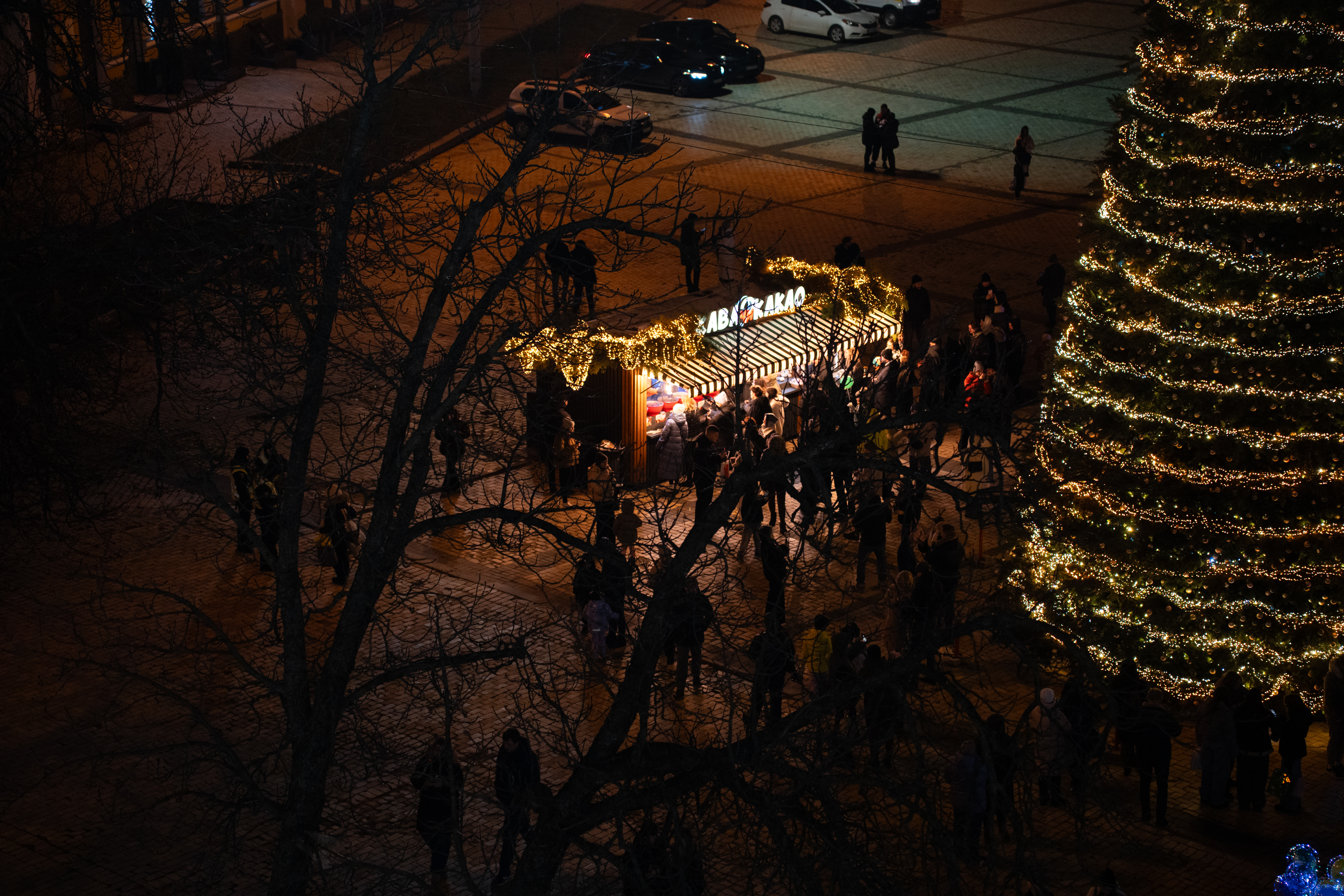 與冬日腳步共同逼近的,是俄羅斯的無人機與飛彈,能源設備遭到摧毀,停電成了冬季的日常。烏克蘭的人民用幽默抵禦殘酷,11 月底週末的購物節,有人拍下停電中的市景,標註 #黑色星期五。聖誕節前夕,聖索菲亞大教堂前的聖誕樹依舊點亮,聖誕樹旁的發電機發出轟然巨響。