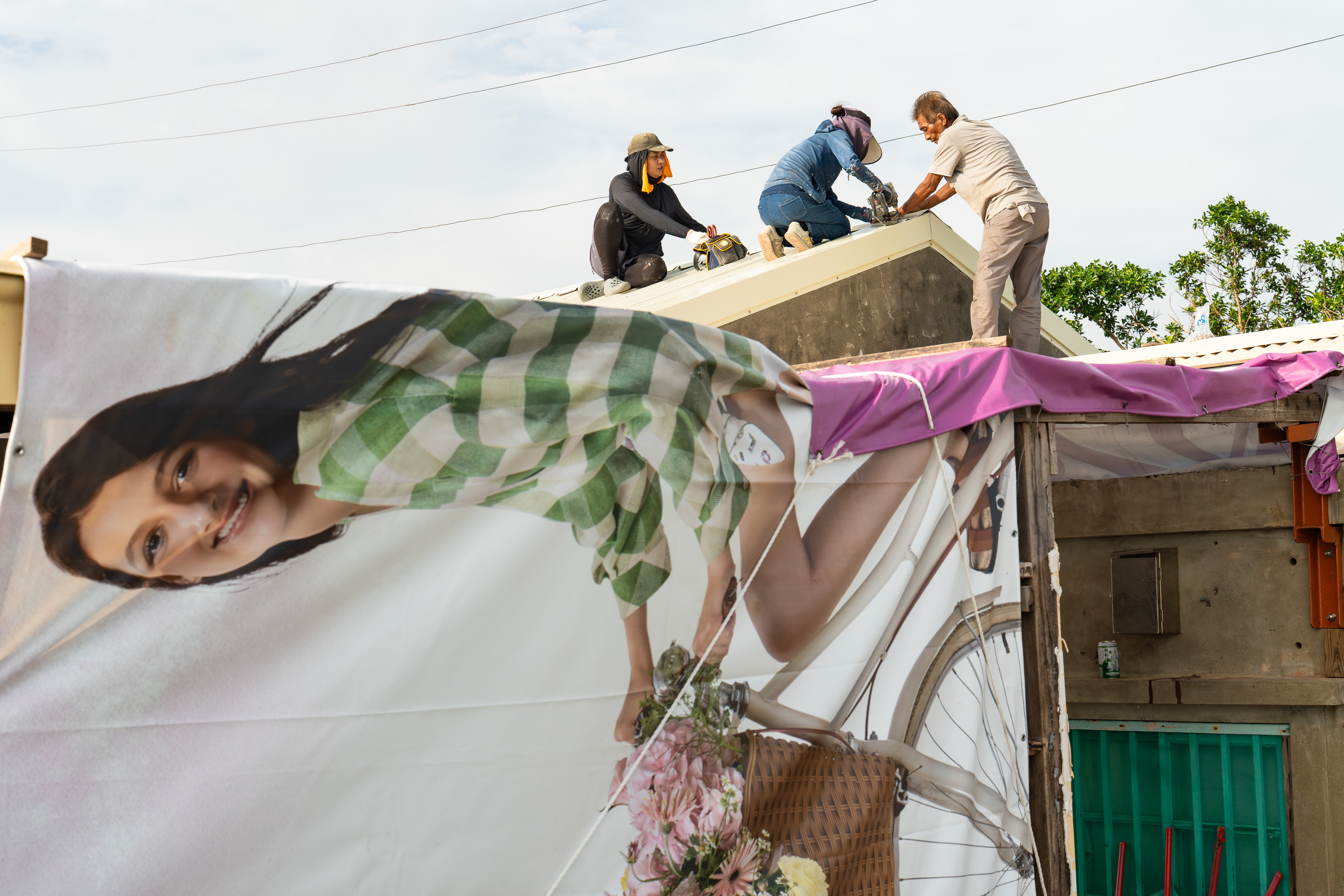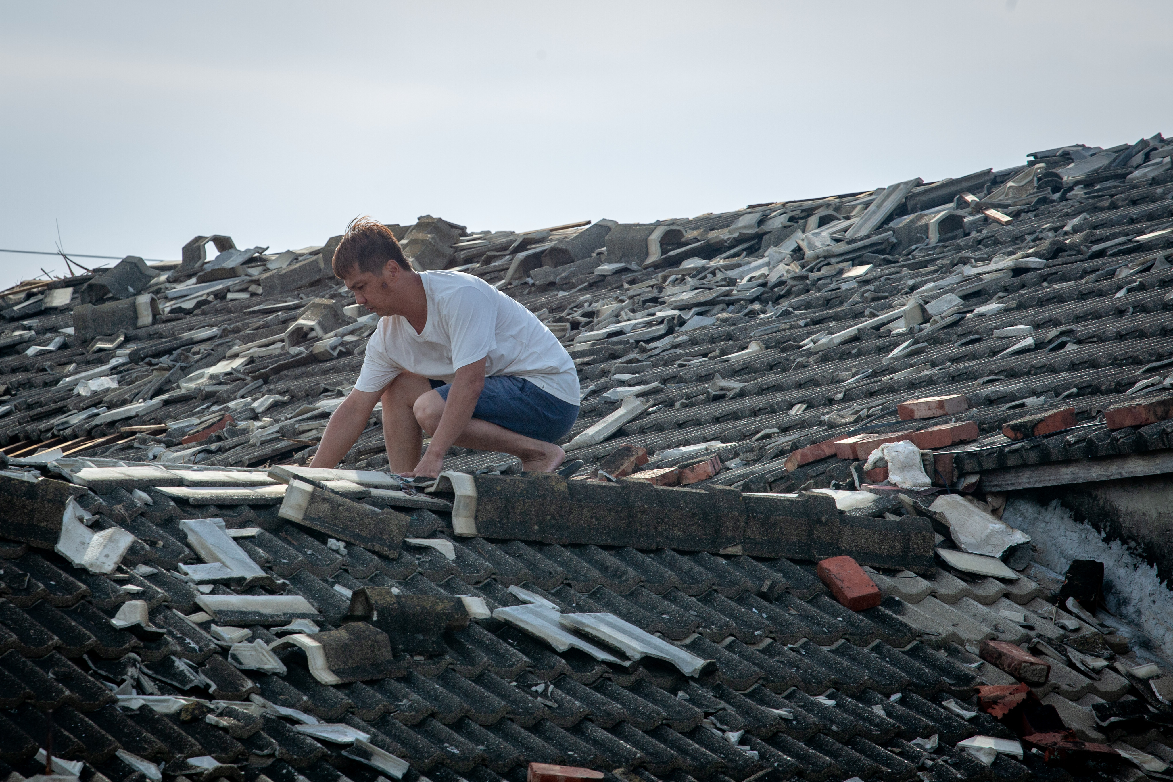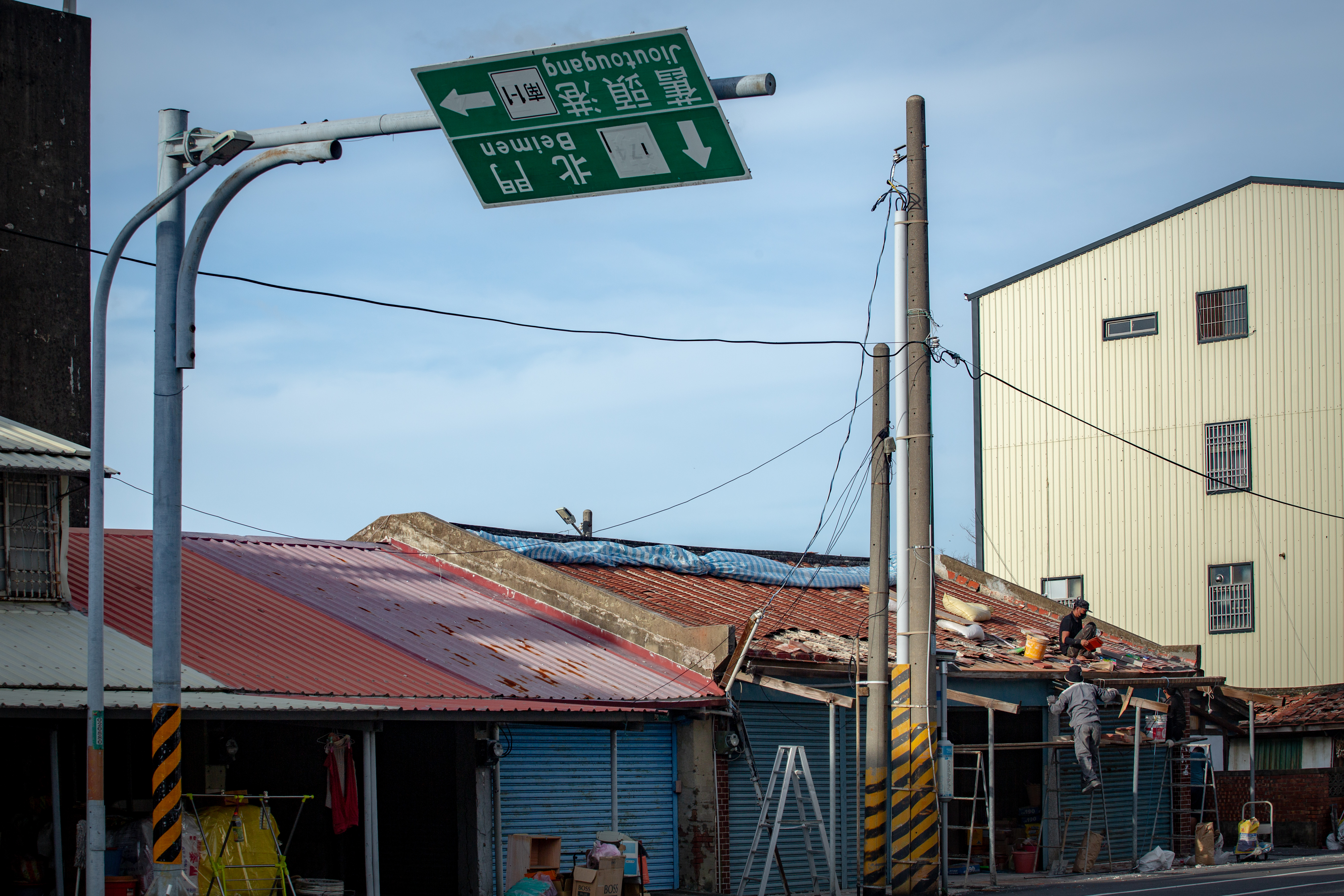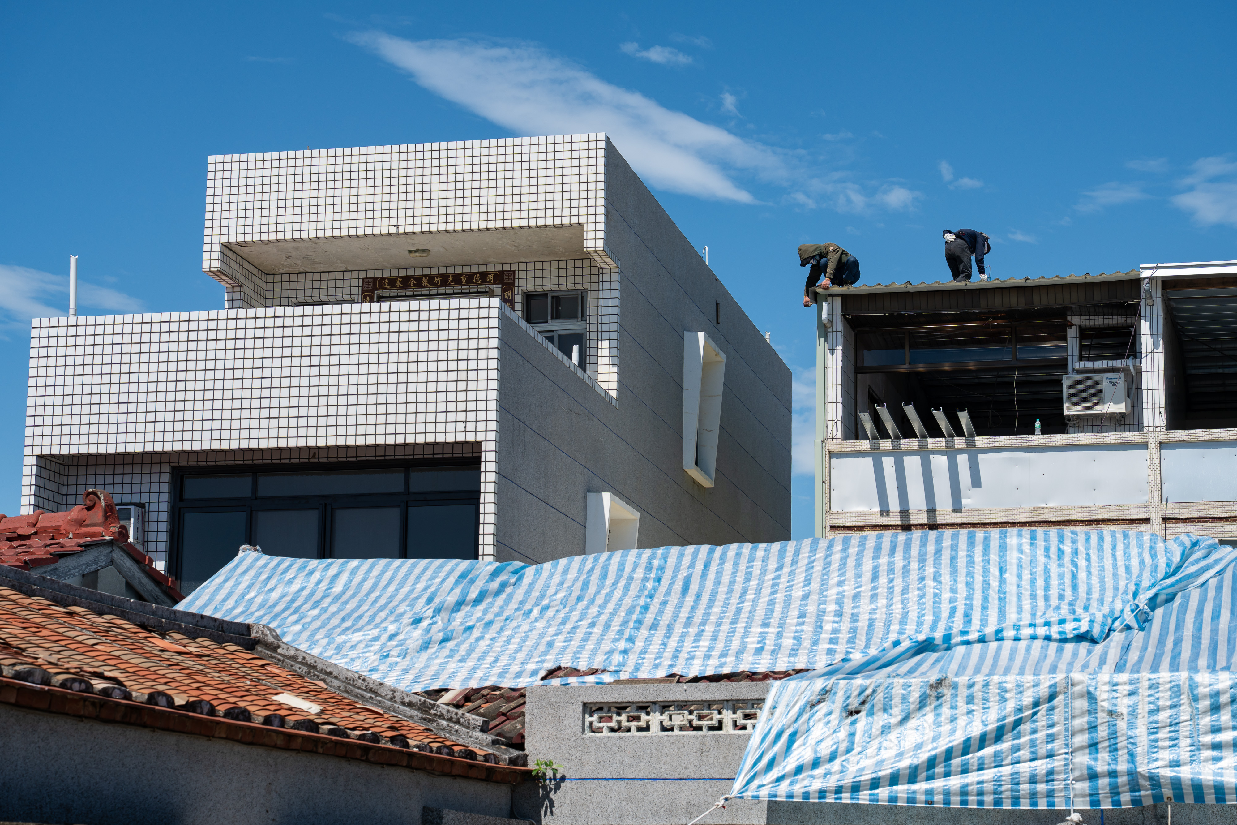 颱風過去一個多月後,仍有不少住家屋頂尚未修復。雪上加霜的是,8 月 13 日襲台的楊柳颱風雖然強度相對緩和,卻把許多覆蓋受災屋舍的塑料帆布吹走,災民仍無法安心返家。