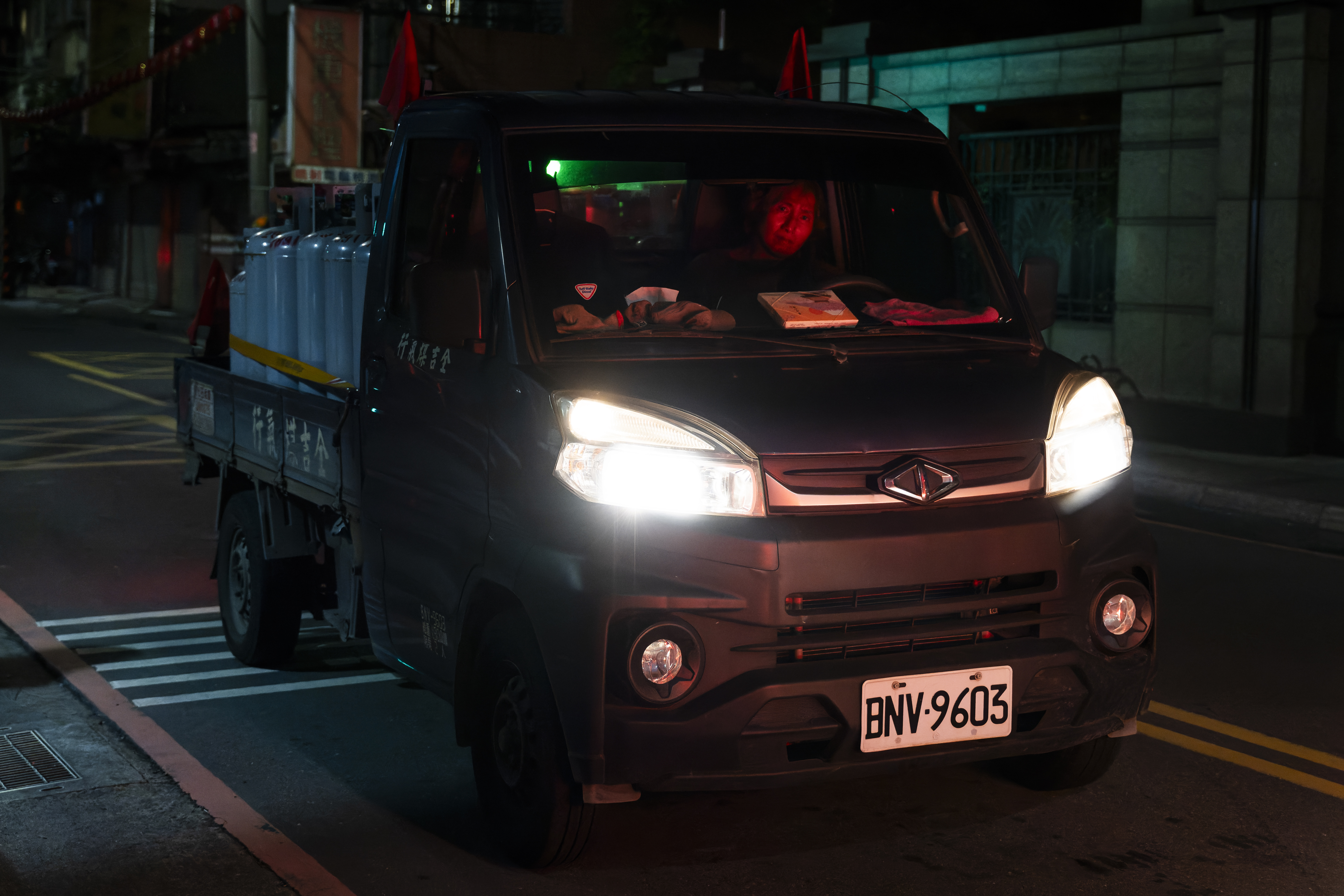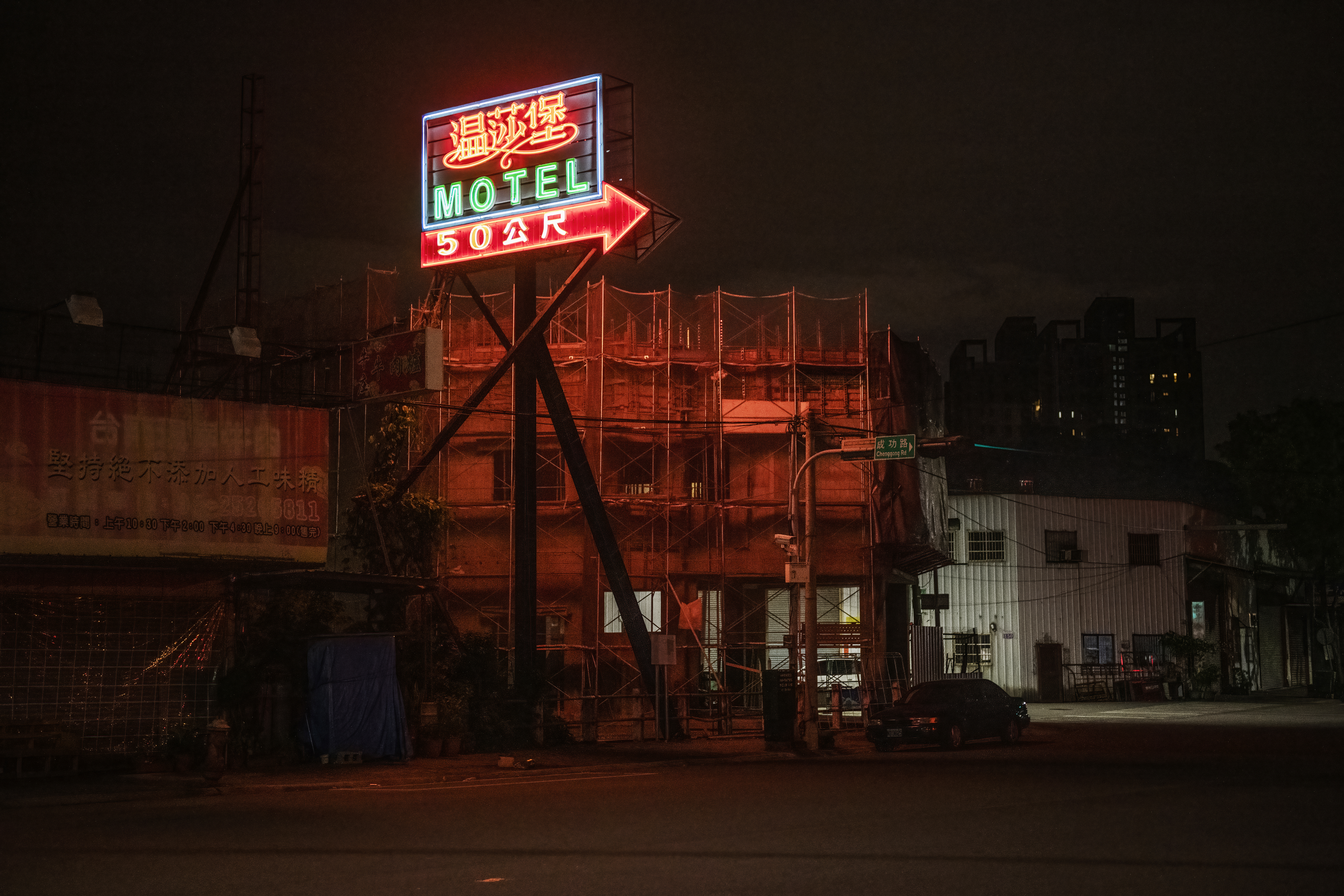 藉著低光技巧、半長時間曝光以及霓虹與陰影的交織,這個系列捕捉了荒涼的巷弄和神秘的城市與郊區空間中,人類轉瞬的身影,或如幽靈、或生動鮮明、或孤獨寂寞。受「黑色電影」(film noir)和街頭攝影的原始寫實風格的啟發,我的影像呈現出一個既現代又無時間感的台灣。這不僅是美學呈現,更是一座連接紀實與內省的橋樑,提供對台灣社會和人類處境的洞察。