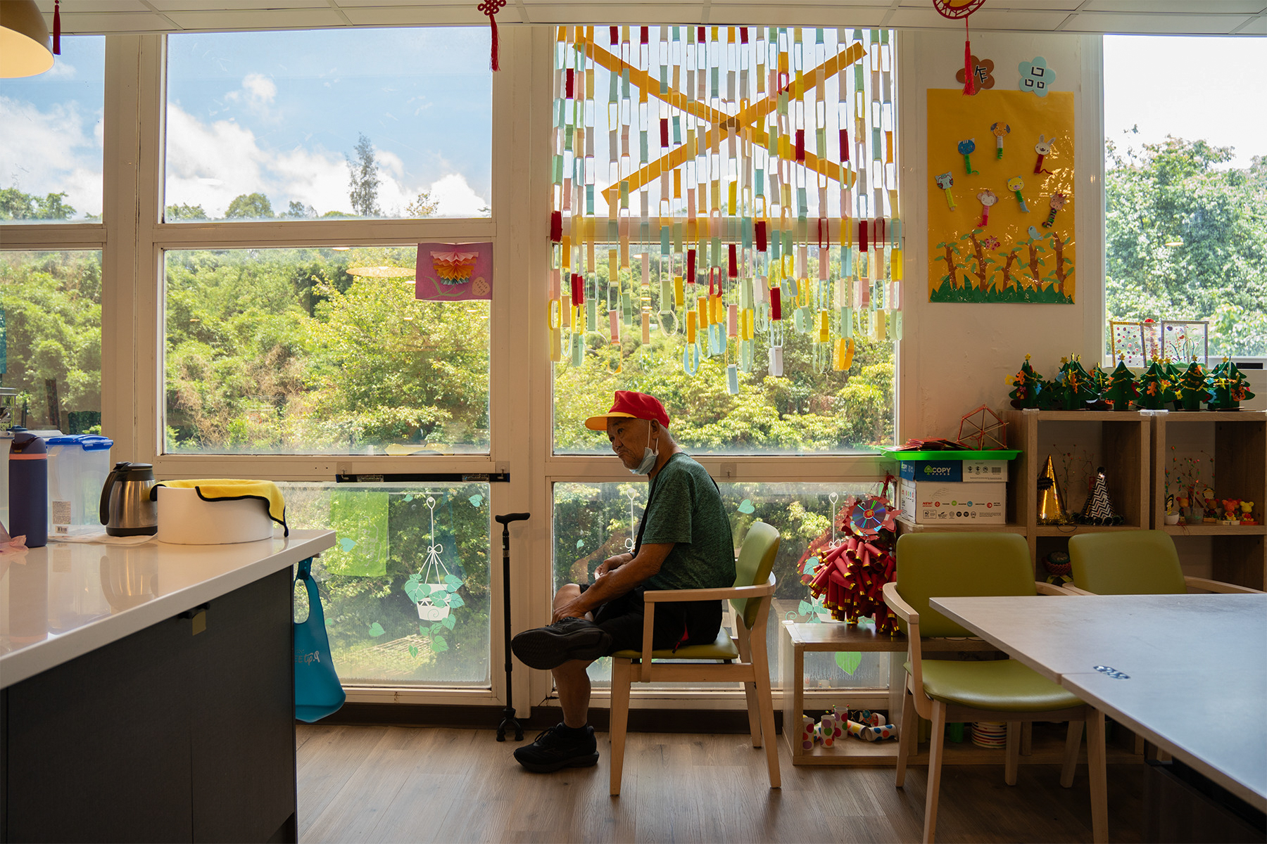 但長輩有各自的頑強。今年 71 歲,以前是板模工人的阿福,安靜地坐在自己位子上,沒有跟著台前的照服員一起做操。我問他為甚麼不一起動一動,他只是笑笑地說:「毋是足有興趣。」