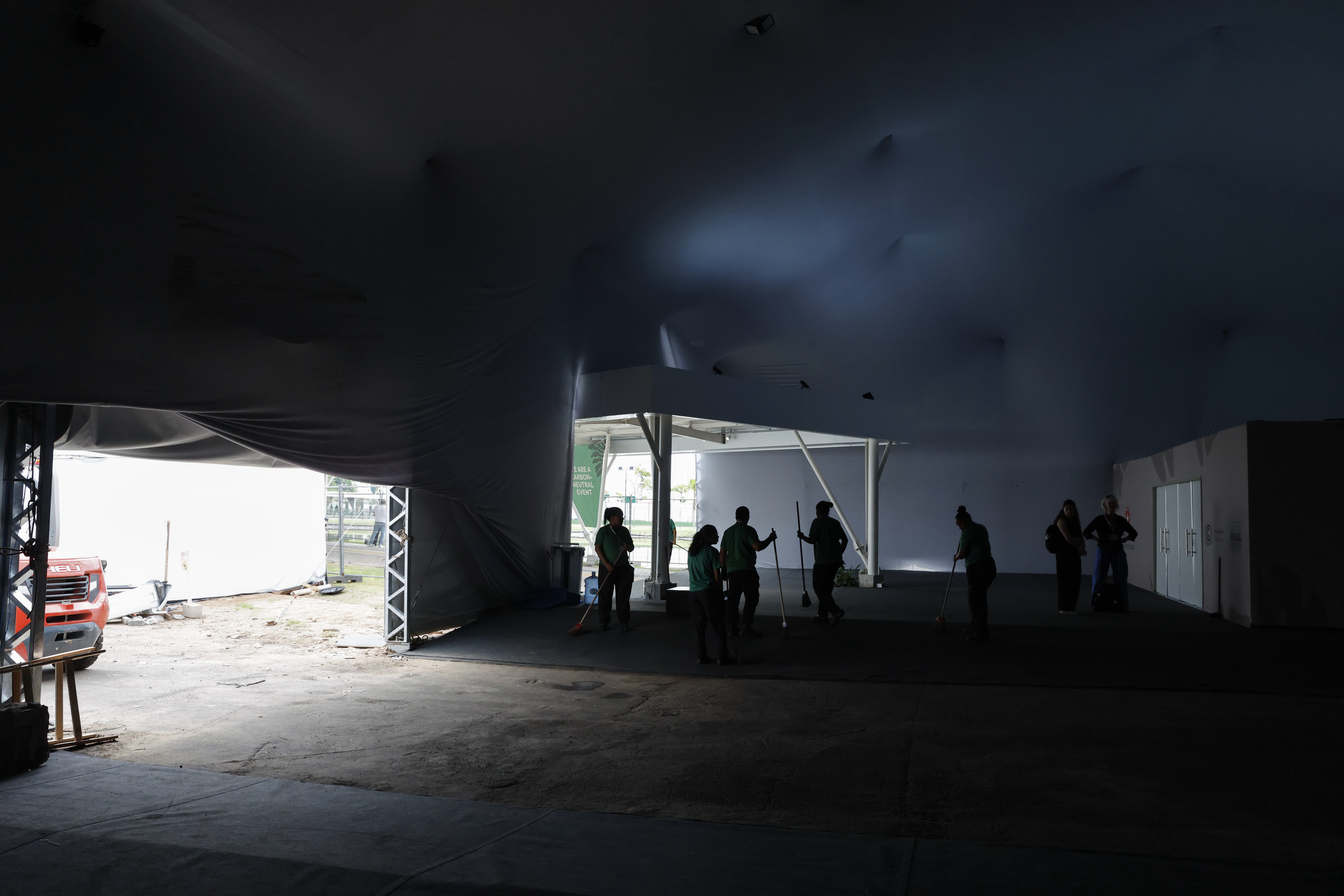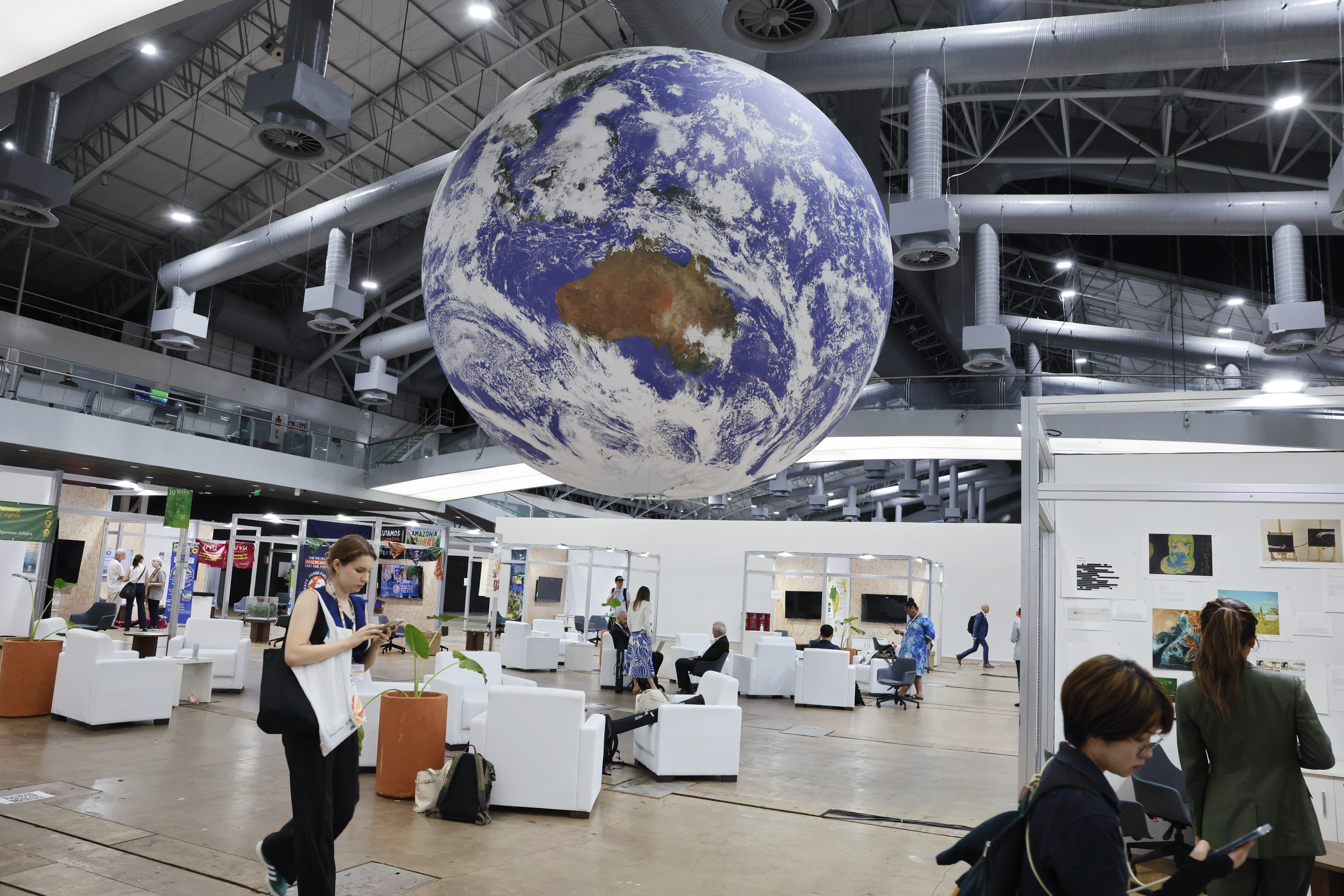 位於貝倫市區的主場館以白色帆布覆蓋輕鋼架建成,幾座龐然大物在城市之間略顯突兀。而 11 月初正值乾季尾聲的巴西,午後下起大雷雨,會場外圍在雨後不久開始積水,會場內部被因大雨拍打帆布的轟隆聲響籠罩,甚至出現漏水。