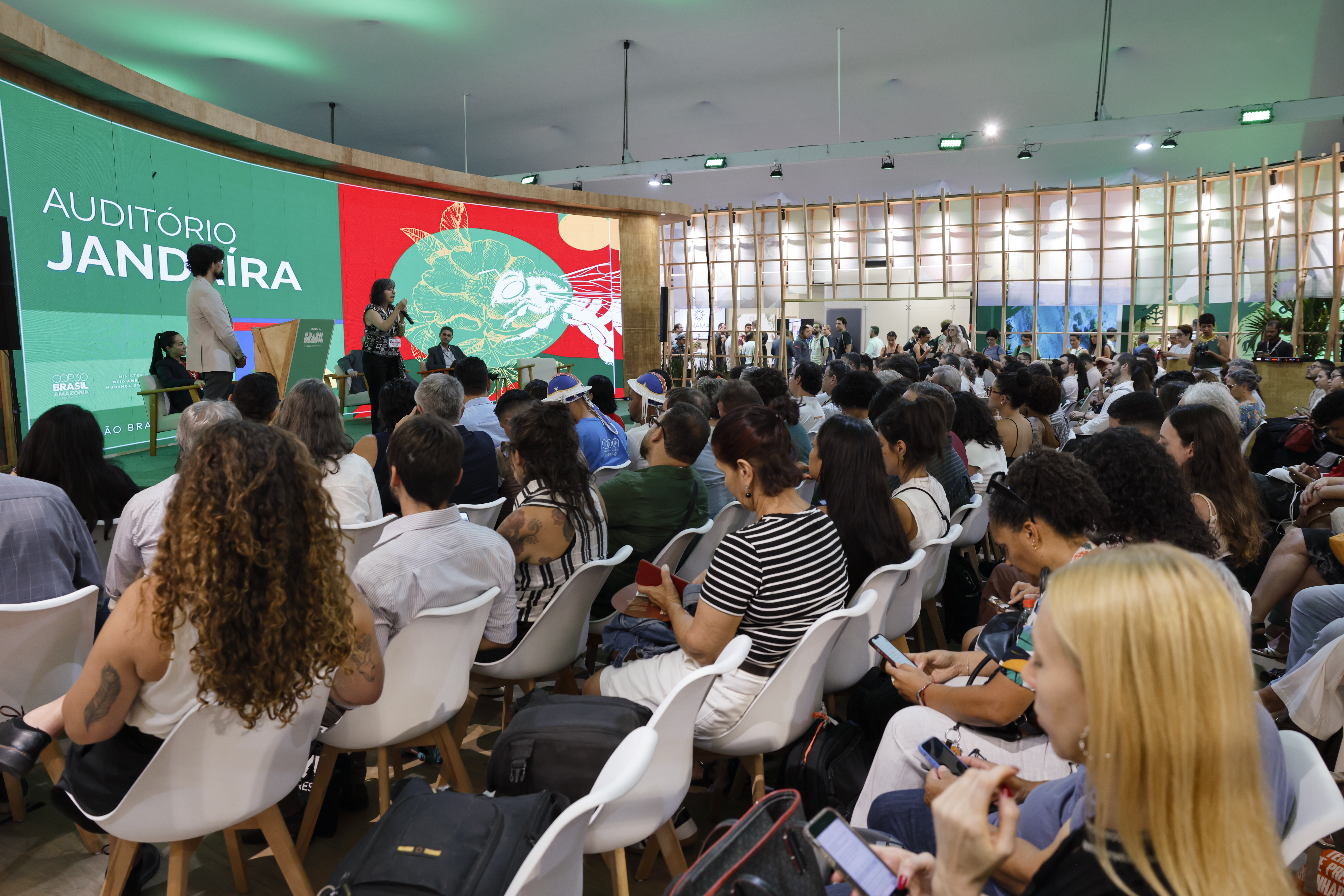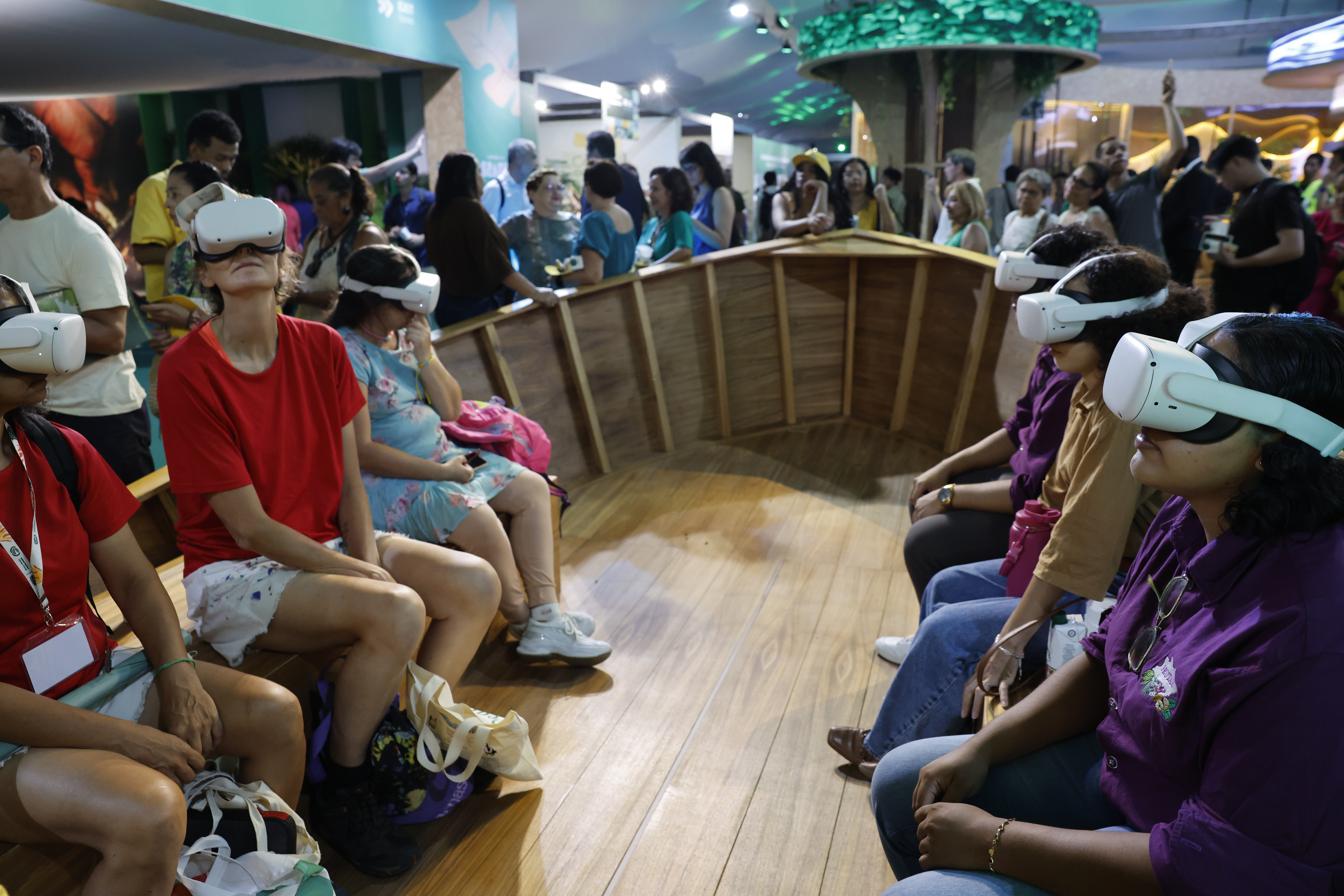 在會場中開放所有民間參加者的綠區入口,工作人員向每一名民眾發放印有大會標誌的白色塑膠杯,上頭寫著「使用這些杯子,我們可以為 COP30 省下 150 萬個拋棄式杯子。」