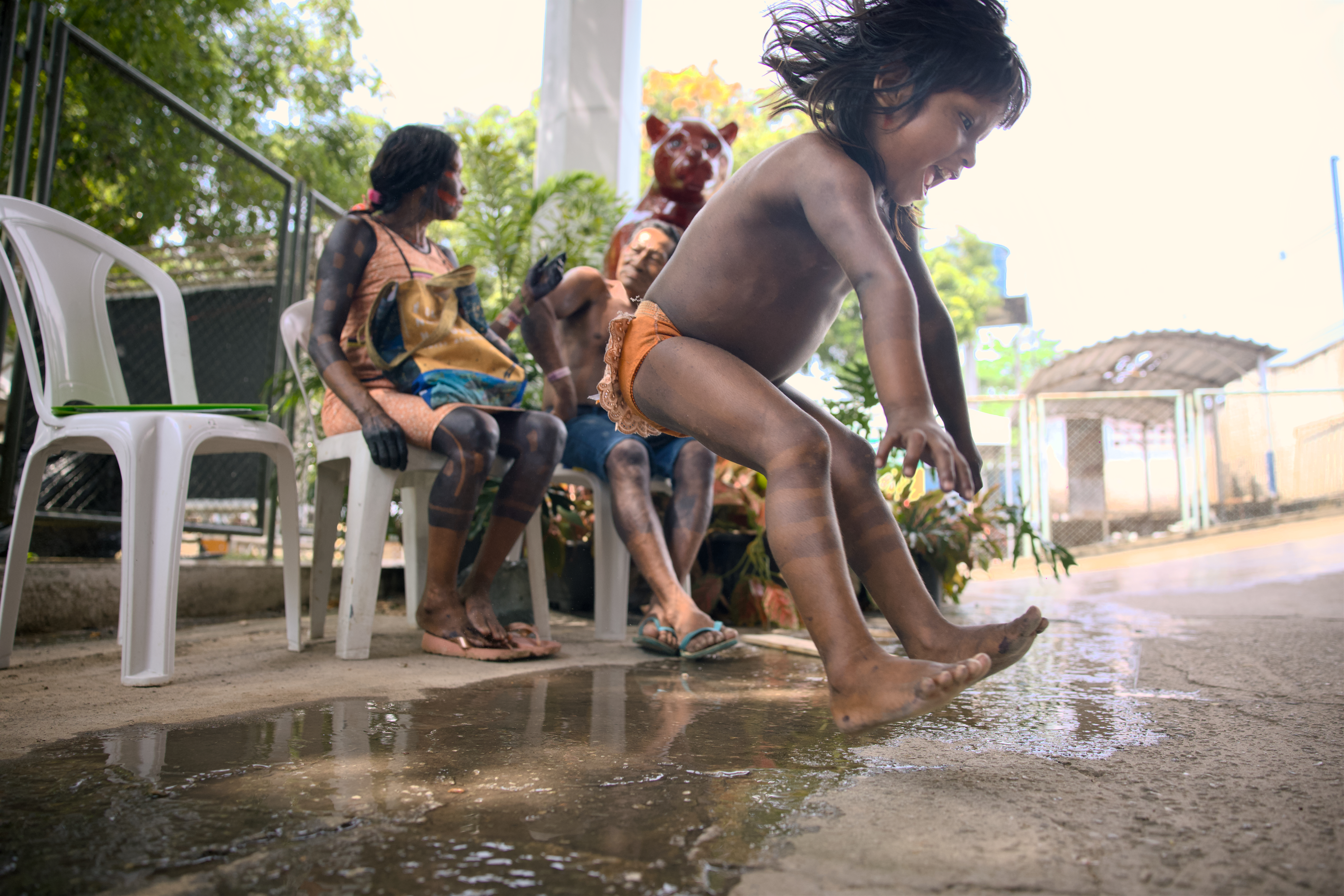 公路帶來亞馬遜的「現代化」,同時嚴重影響了世居於此的原住民部落。馬庫帕的族人被迫離開世代生活的家園,從亞馬遜深處的新谷(Xingu)遷往馬托格羅索州(Mato Grosso)邊界。「政府說這是發展,但對我們而言卻是失去一切的開始。我們失去了熟悉的森林與河流,也失去了賴以為生的資源。」「COP 村落」(ALDEIA COP)開幕這天,巴西卡亞貝族(Kaiabí)的首領(Cacique)馬庫帕(Markupa)靜靜待在會場一角,等待時機主動上前與記者攀談。他像抓到浮木般,向媒體娓娓道來關於卡亞貝族的故事。