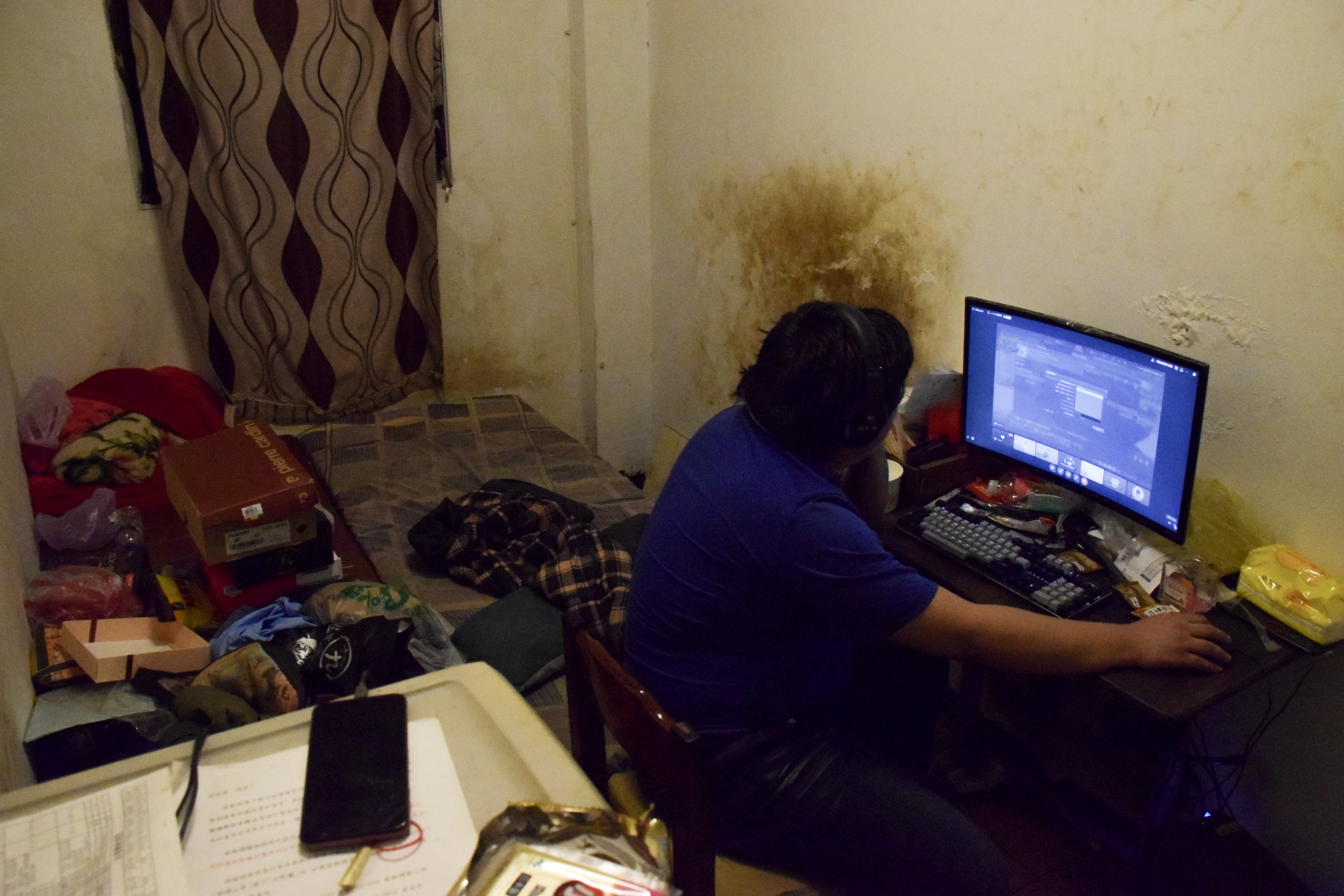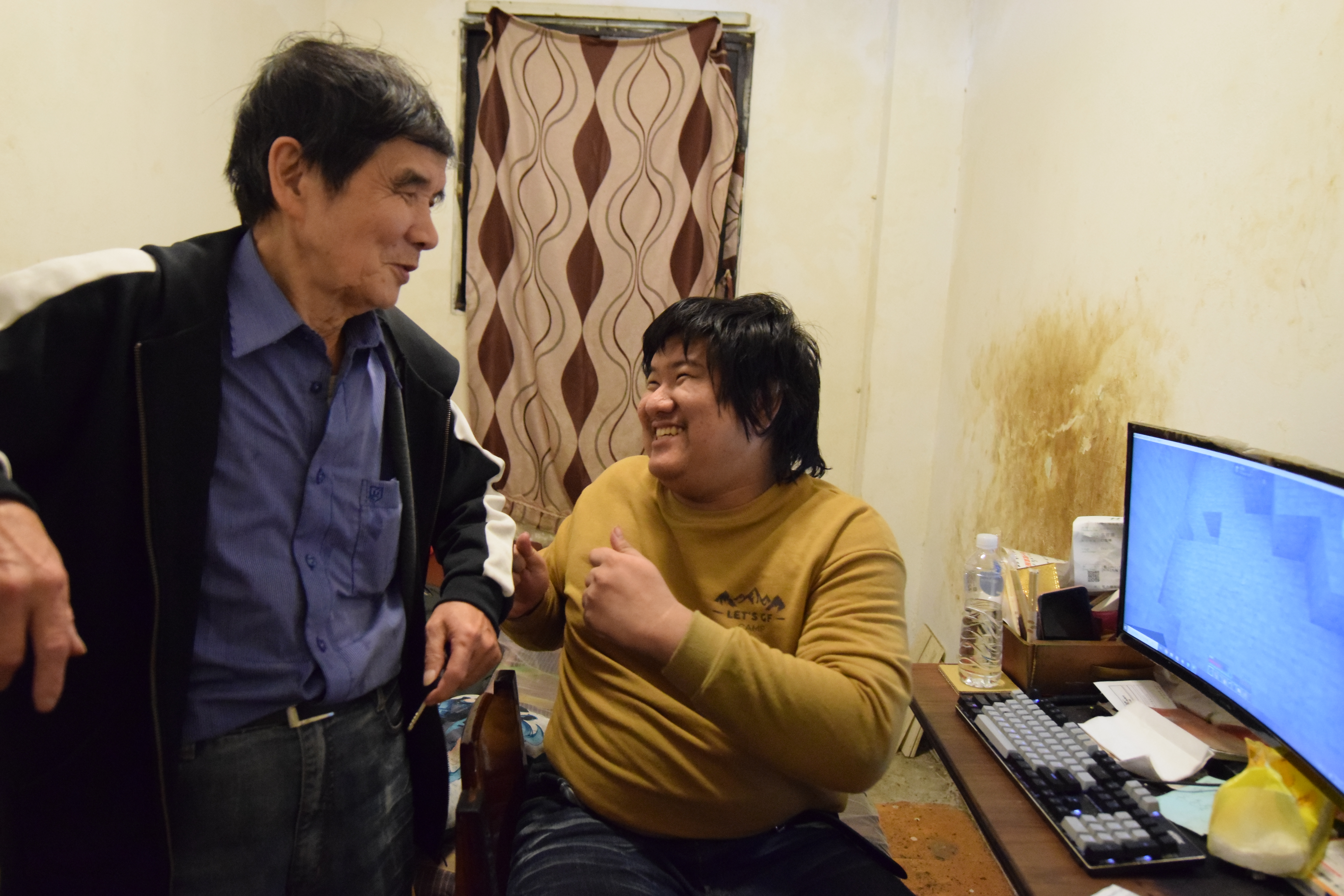 「帥哥,我幫你買小籠包回來。」狹小的房間裡擺了兩張床,大男孩「帥哥」還和中午起床後維持著差不多的坐姿,書桌前,電腦螢幕的光映在帥哥臉上,他神情專注,耳機裡傳來遊戲的槍聲與喊殺聲,沉浸在與吳爸截然不同的世界中。