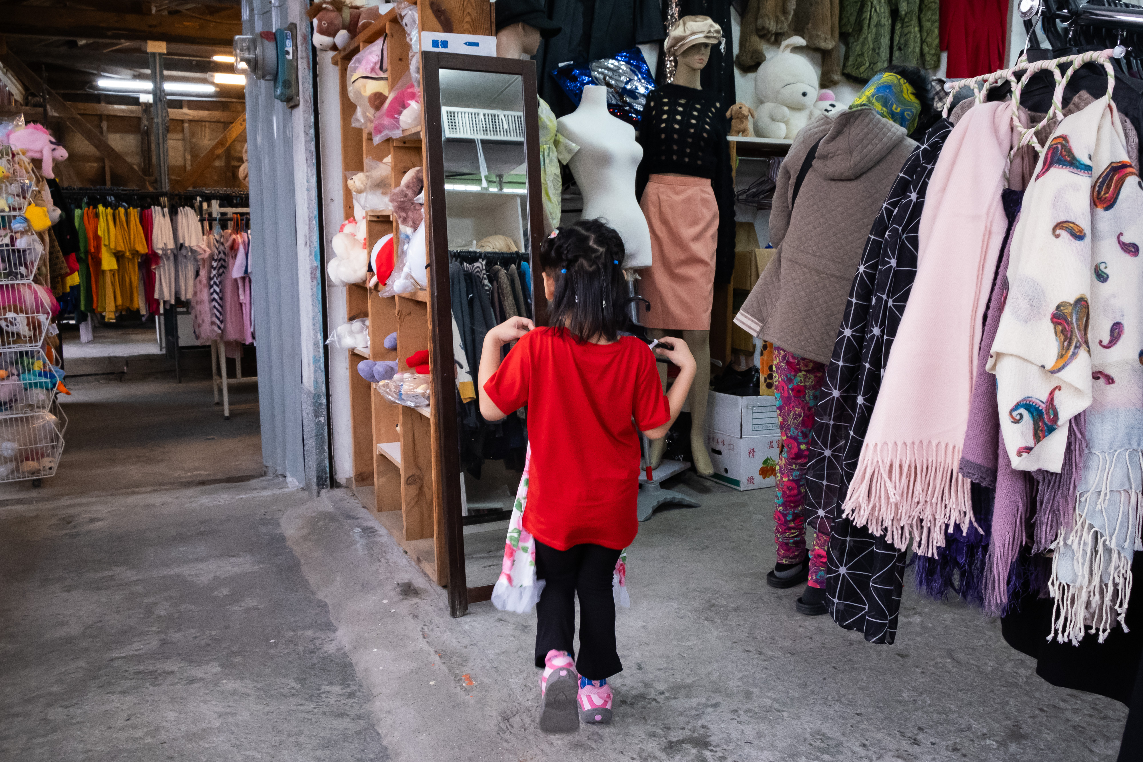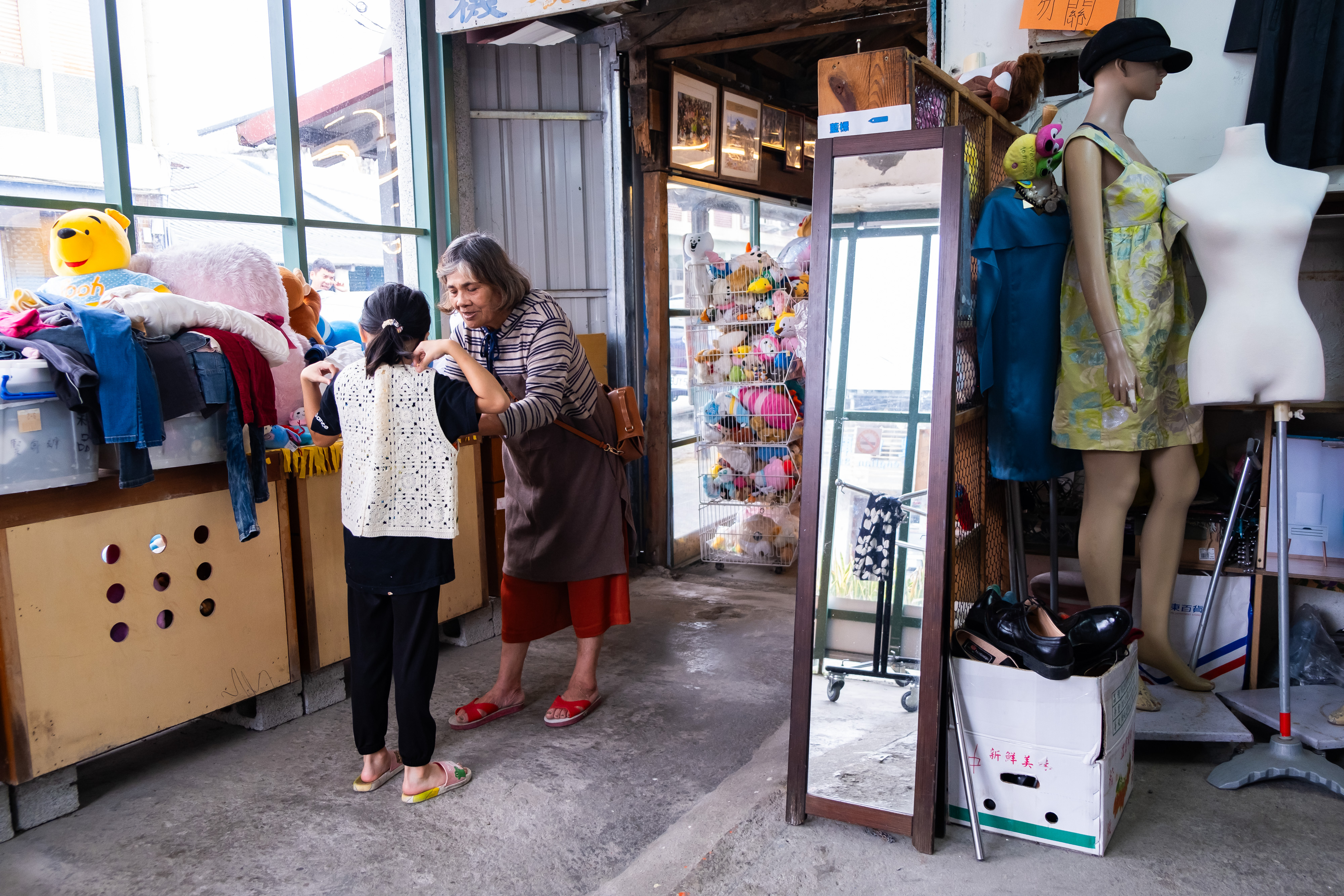 來買二手衣的,大多是附近居民、新住民與移工;他們對經濟實惠的二手衣物,有著很高的需求。移工甚至會購買大量二手衣物,帶回母國贈送親友。這樣的現象,也與永續意識抬頭、二手風潮興起隱隱相合。