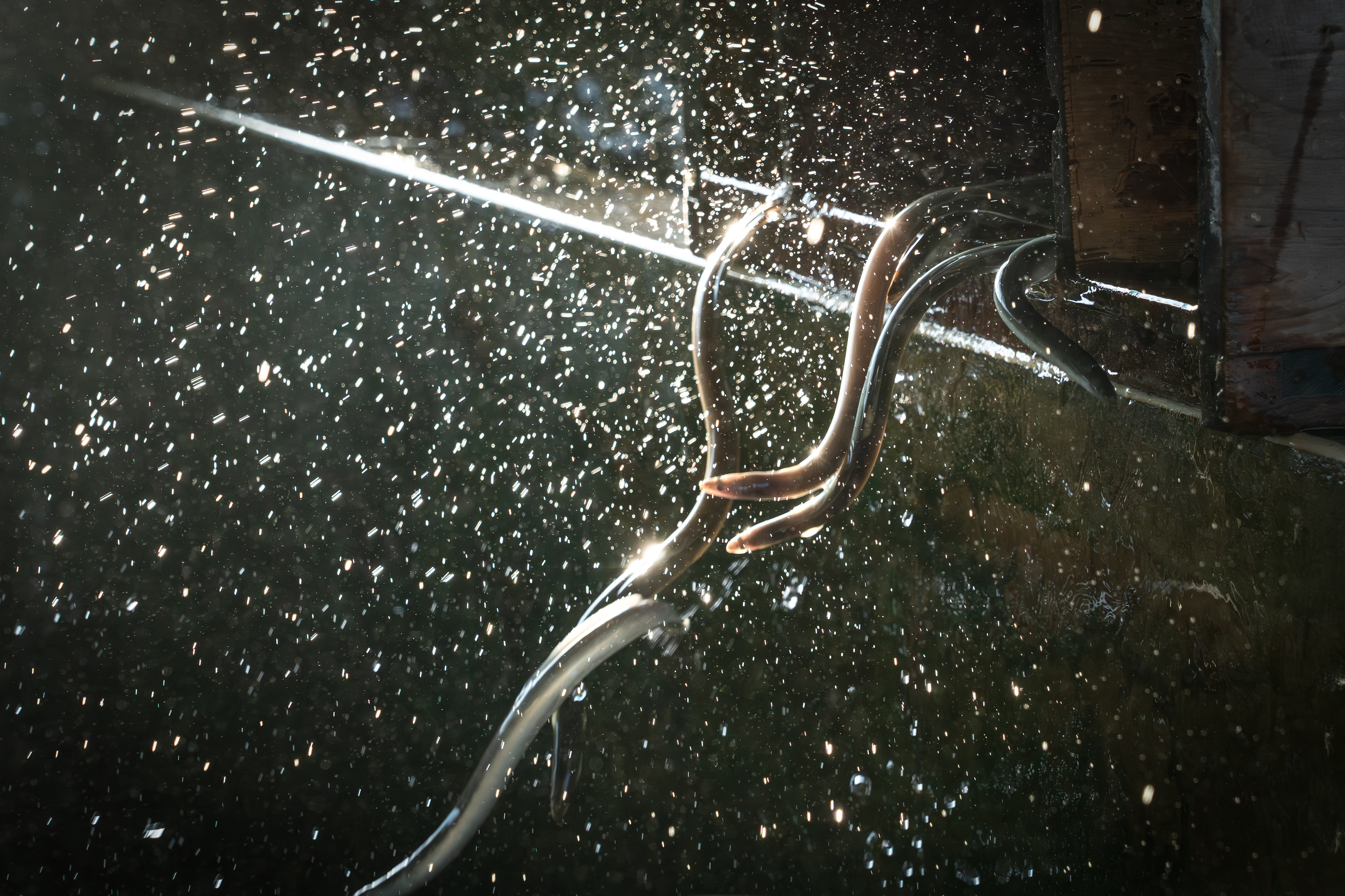 「沒法度啊。」那陣子丹娜絲颱風及後續的西南氣流狹帶豪雨,造成水質變化,「有幾隻鰻魚因為下雨去嚕池岸(編按:鰻魚有逆水性),受傷有細菌感染的情況,所以趕緊來換池,順便幫這些鰻魚洗一下澡」,李安靜說。