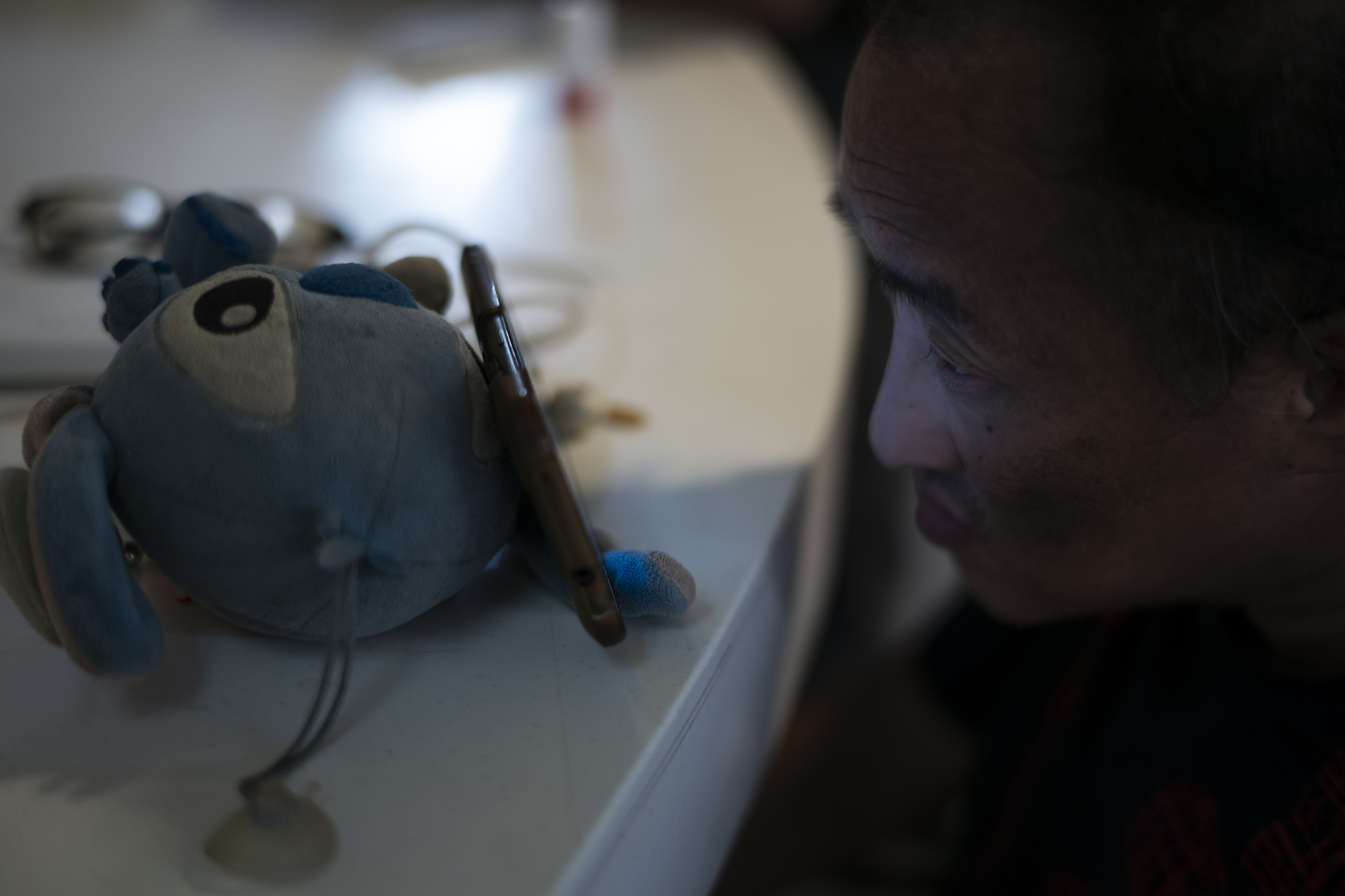 阿強年約 50 歲,是個天真爛漫的大叔,與一堆毛娃娃為伴。我道明來意,說自己是攝影記者,想跟他聊天、拍照。他爽快答應,對陌生人毫無戒心、不會拒絕。可以想像,若他在職場上,應該吃虧不少。