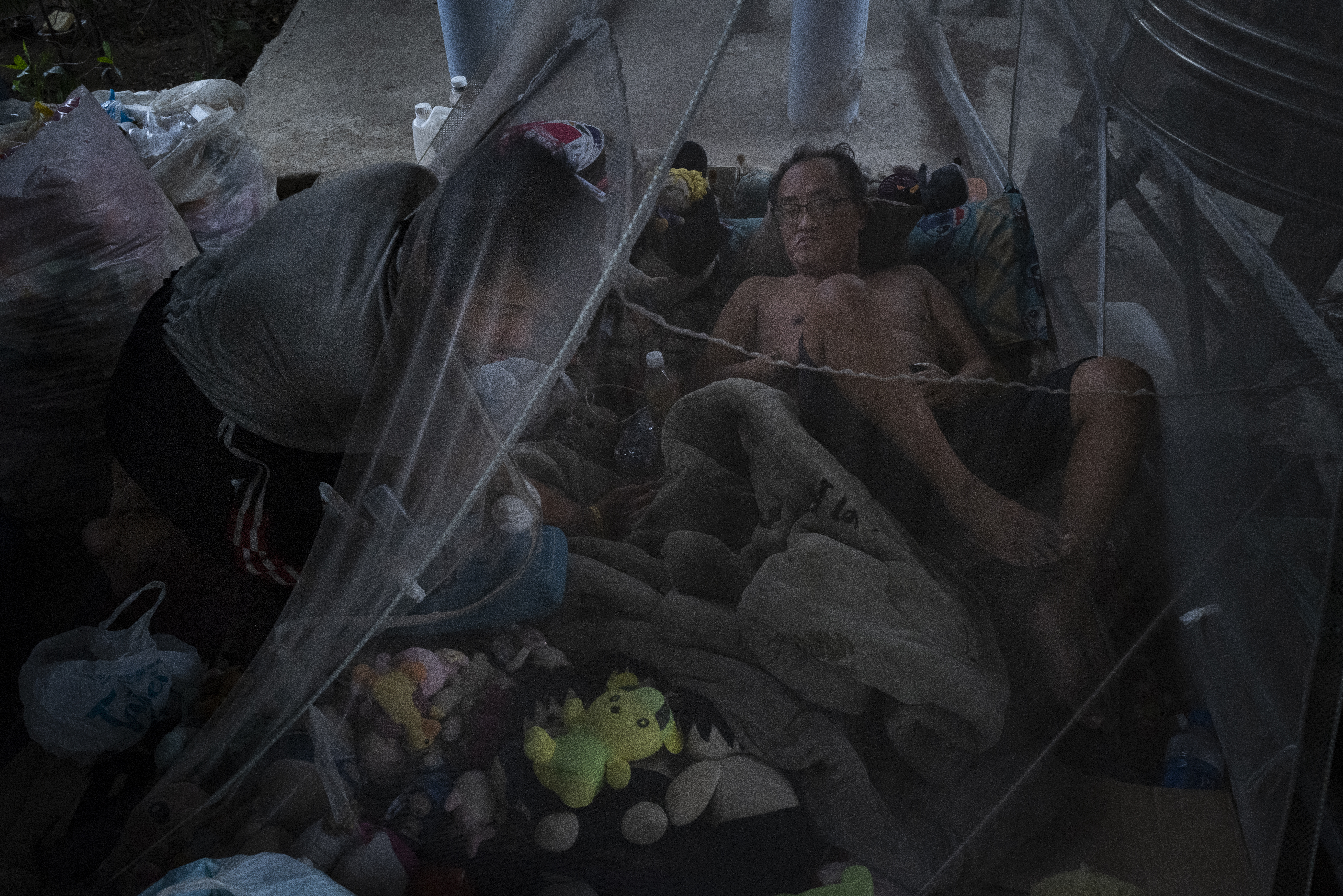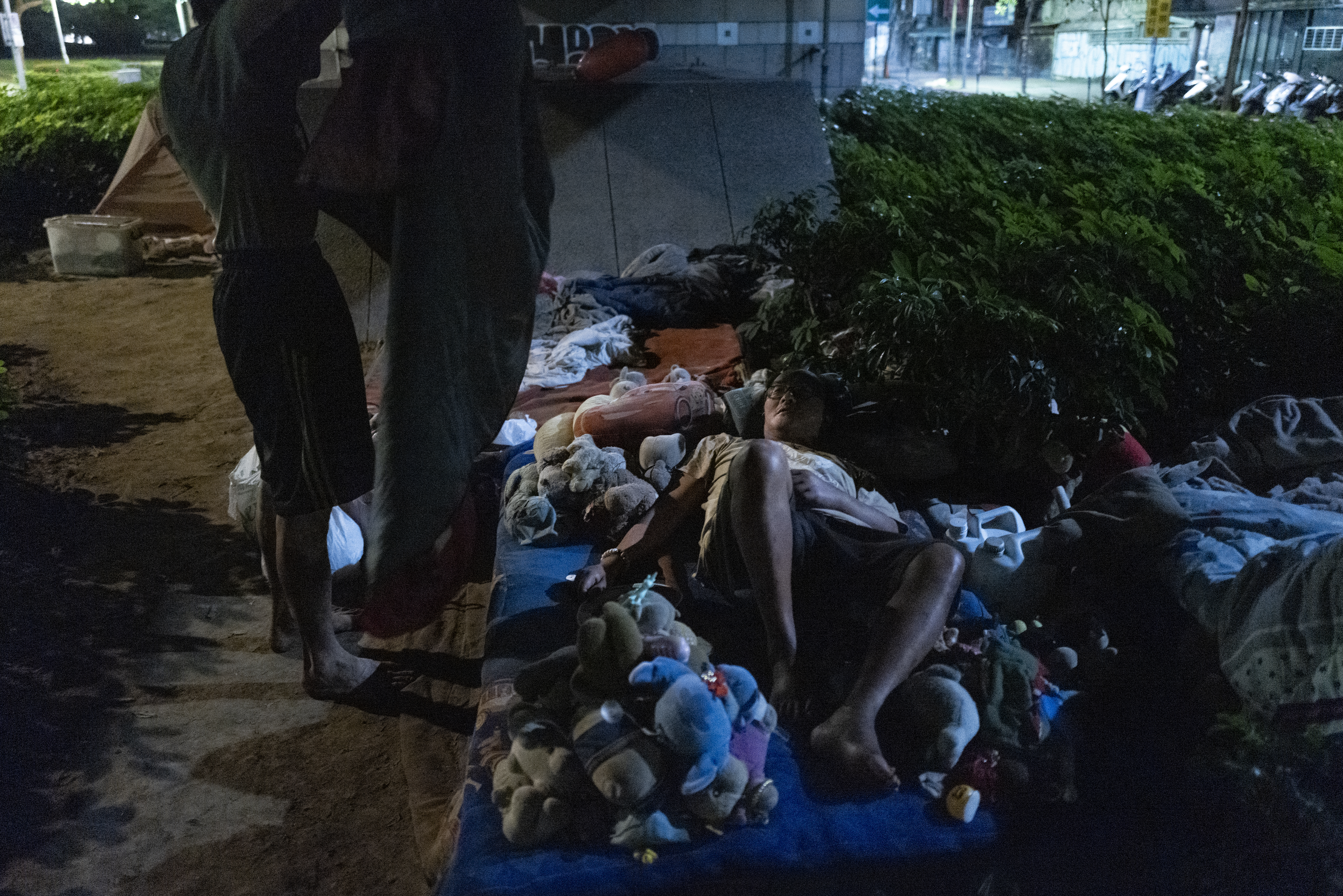 最初與他們相遇,是在台北車站。我在香港拍攝無家者已逾 10 年,2021 年移居台灣後,希望繼續拍攝這群體。台北車站是無家者的聚腳地。我帶了啤酒和香煙在北車蹲點,希望與當地居民攀談。由於不諳台語、國語也很差勁,這策略不太成功。直到遇到阿強。