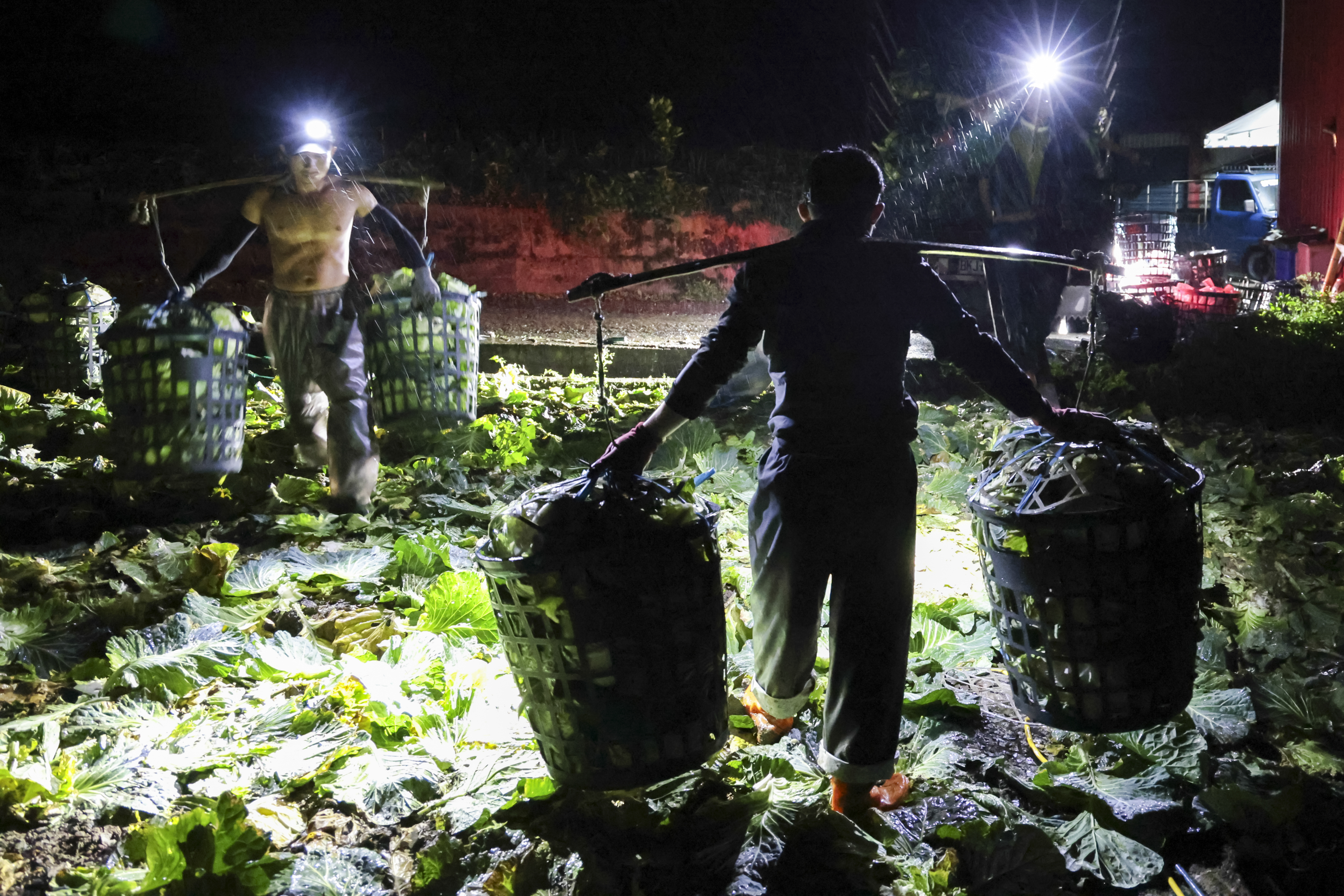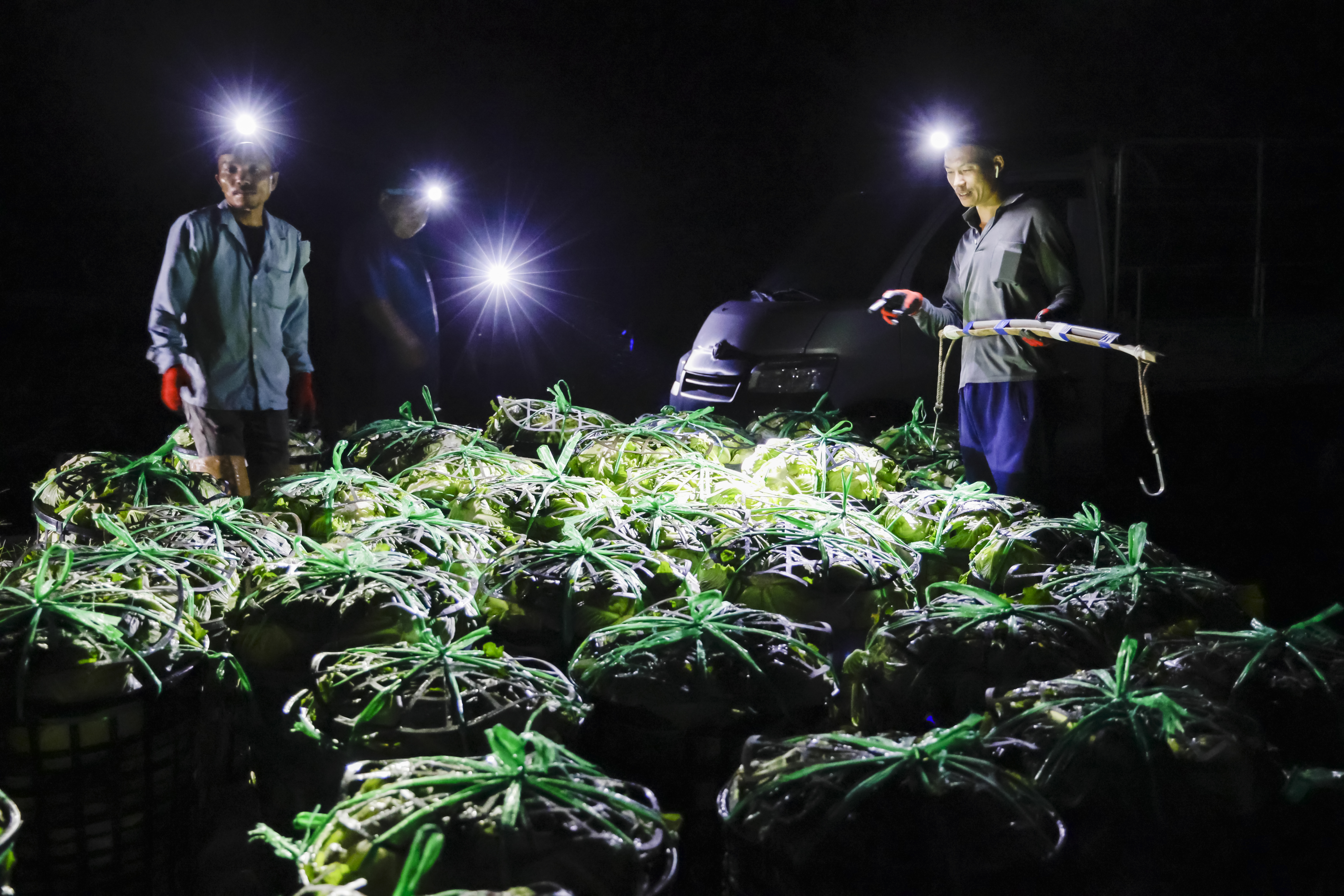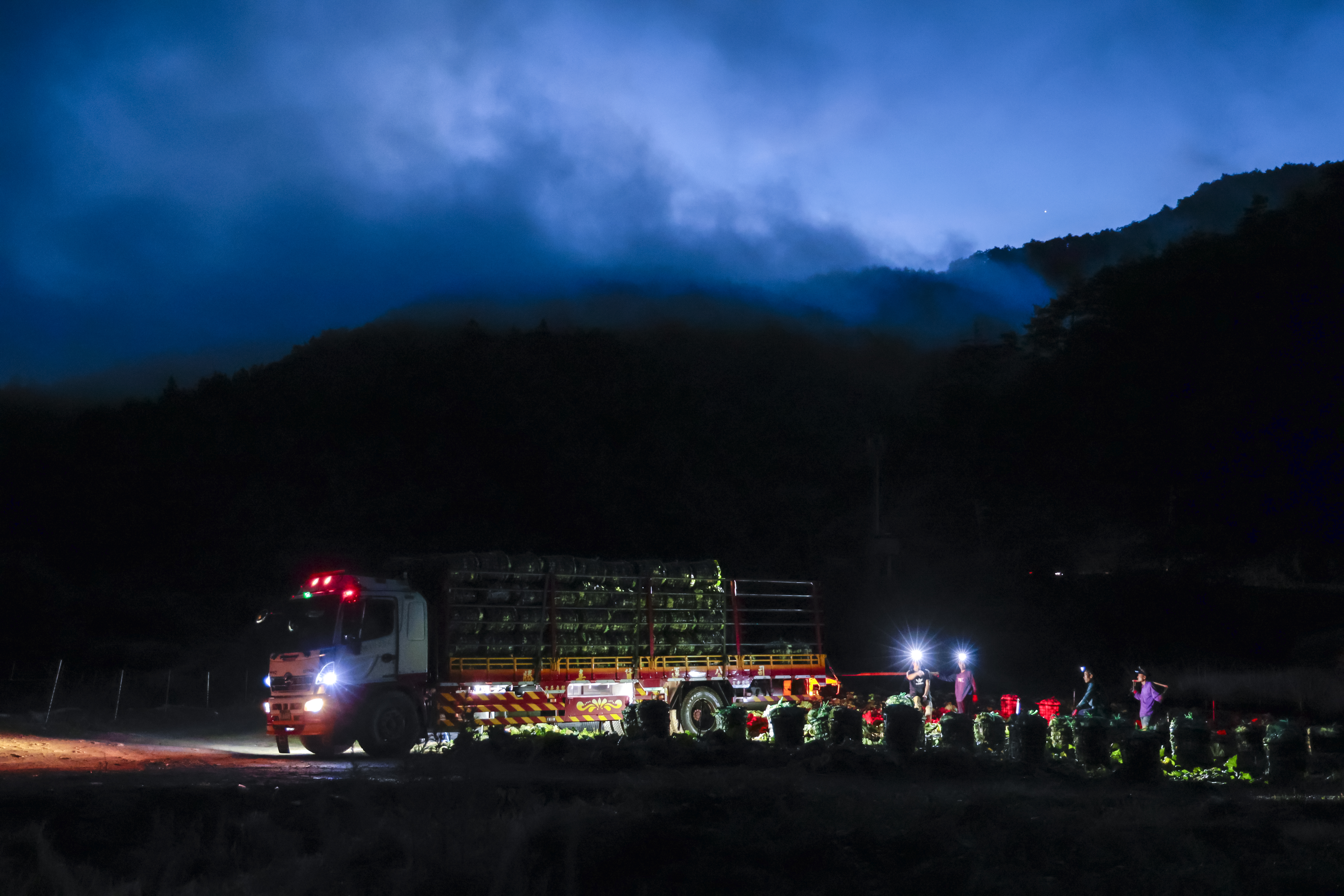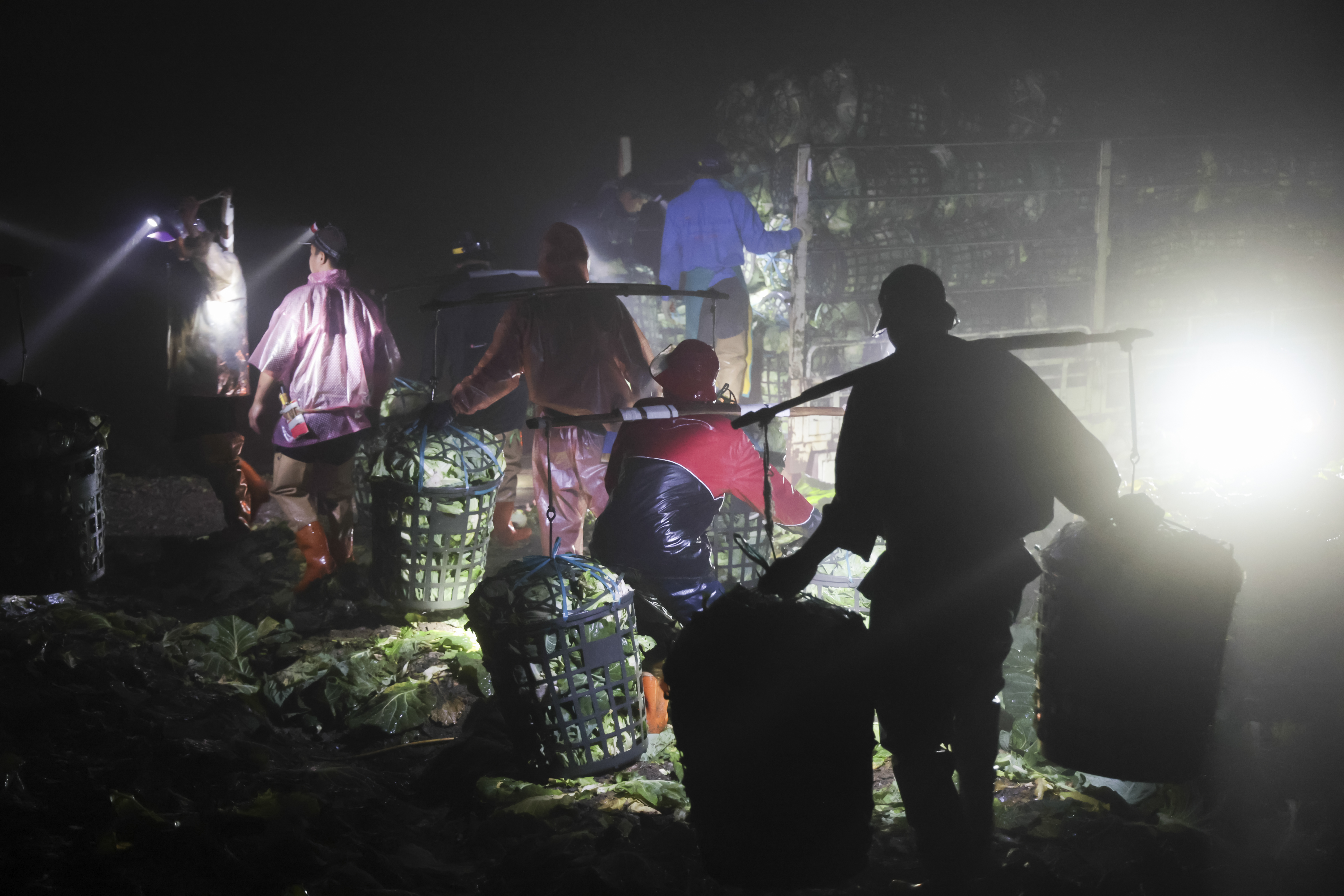 以砍菜的失聯移工為例,在山上採收尖峰期,他們經常每天工作十幾個鐘頭。除了砍菜,還得把每簍 30 公斤左右的高麗菜,一次兩簍共 60 公斤扛上貨車。大型貨車約可堆疊 300 件共 9 公噸,連夜到天亮可能要砍好幾輛貨車的量,工作量非常驚人。