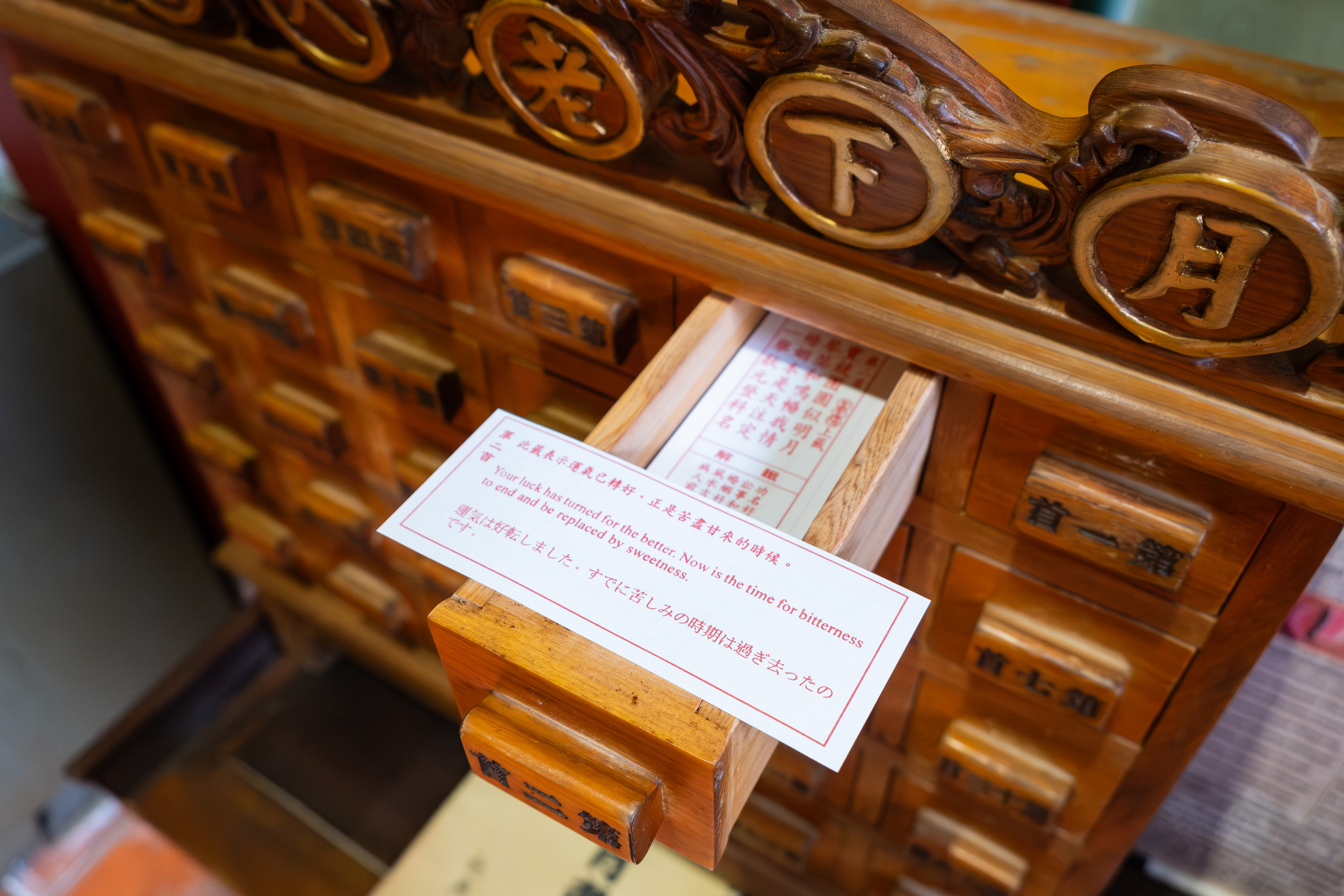 素珍是祀典武廟的工作人員,談起月老靈驗滔滔不絕。她得意地說,2019 年有一名日本男子慕名而來,後來因疫情緣故,改以每兩周寄來一封航空信祈求姻緣。廟方收信後會將內容稟告月老,再以日文回覆,並附上月老加持過的緣粉、紅線。