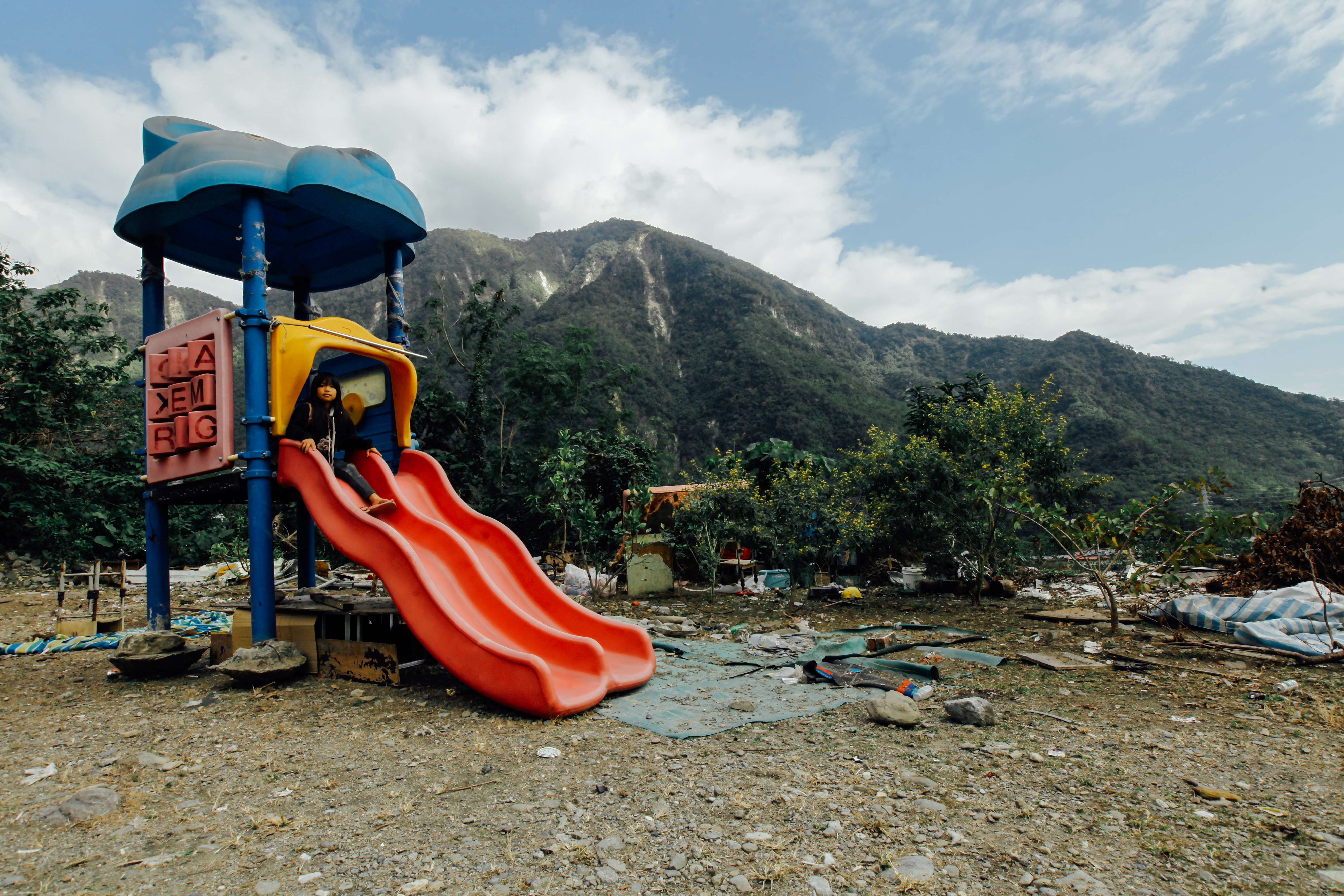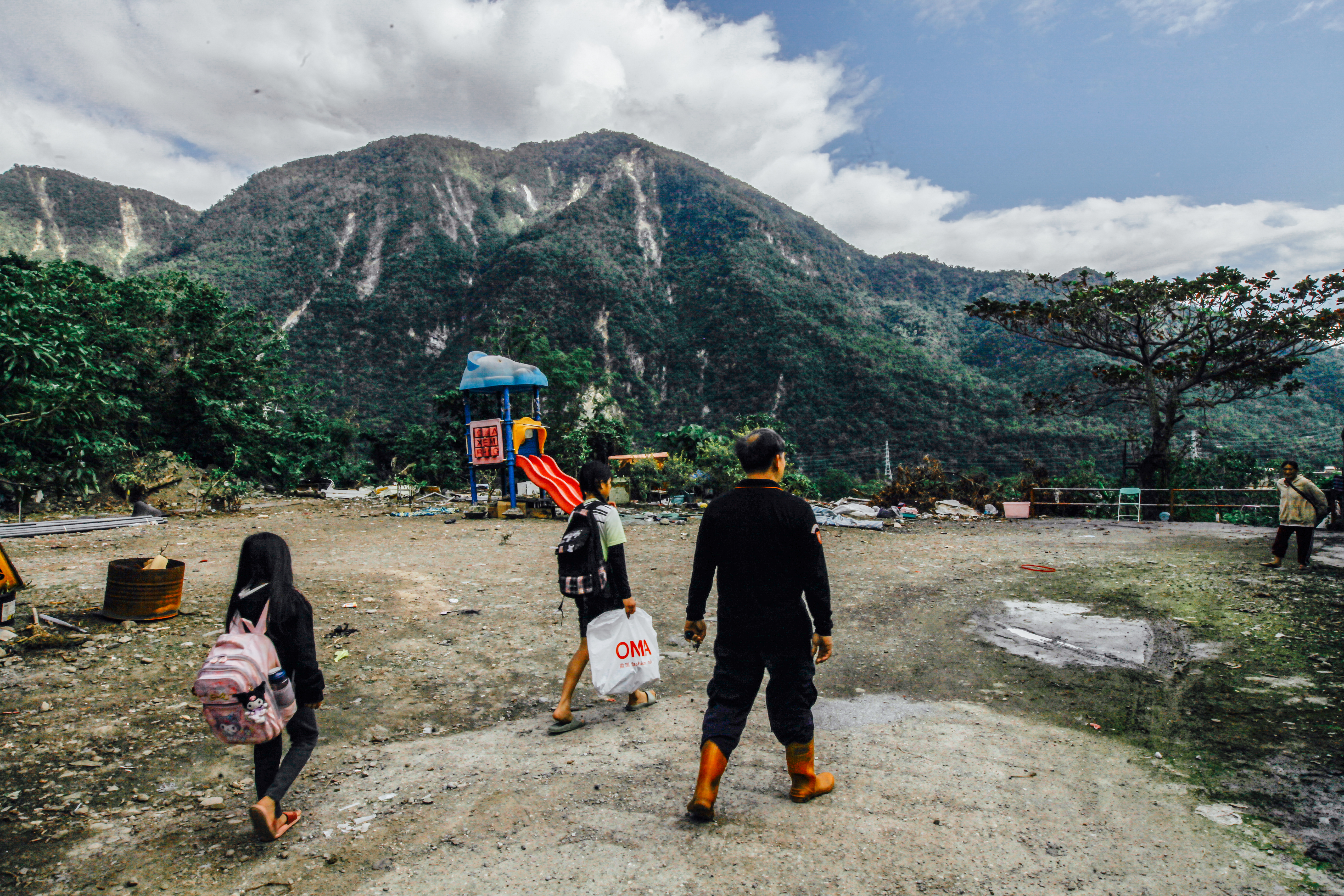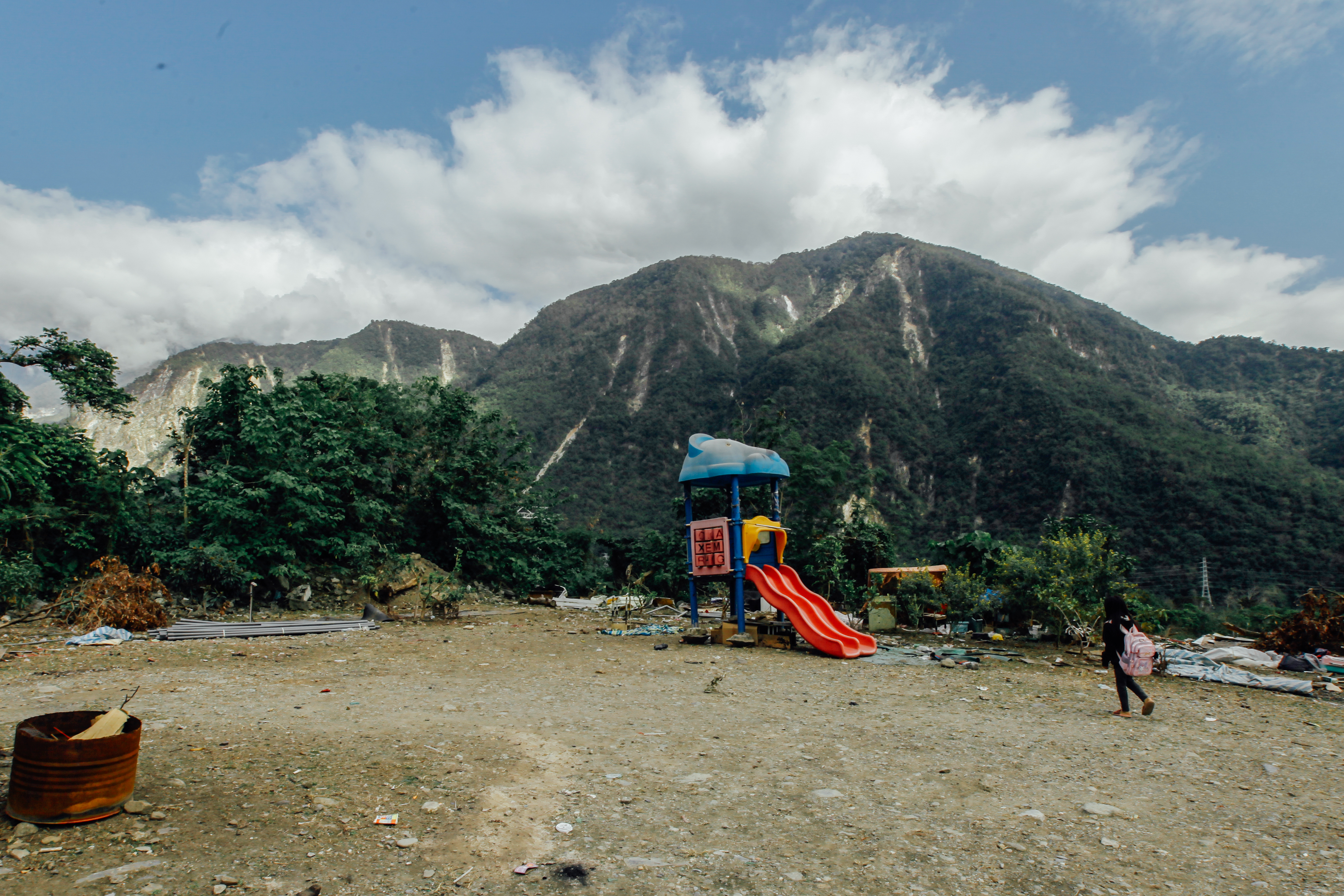 「去年(0403)地震嚇死我了!從上面(礦場)掉下很多石頭,還有到處飛的灰塵跟落石,我想逃都看不到路了!」Mimi 瞪大眼睛,指著礦區的「斷頭山」說。