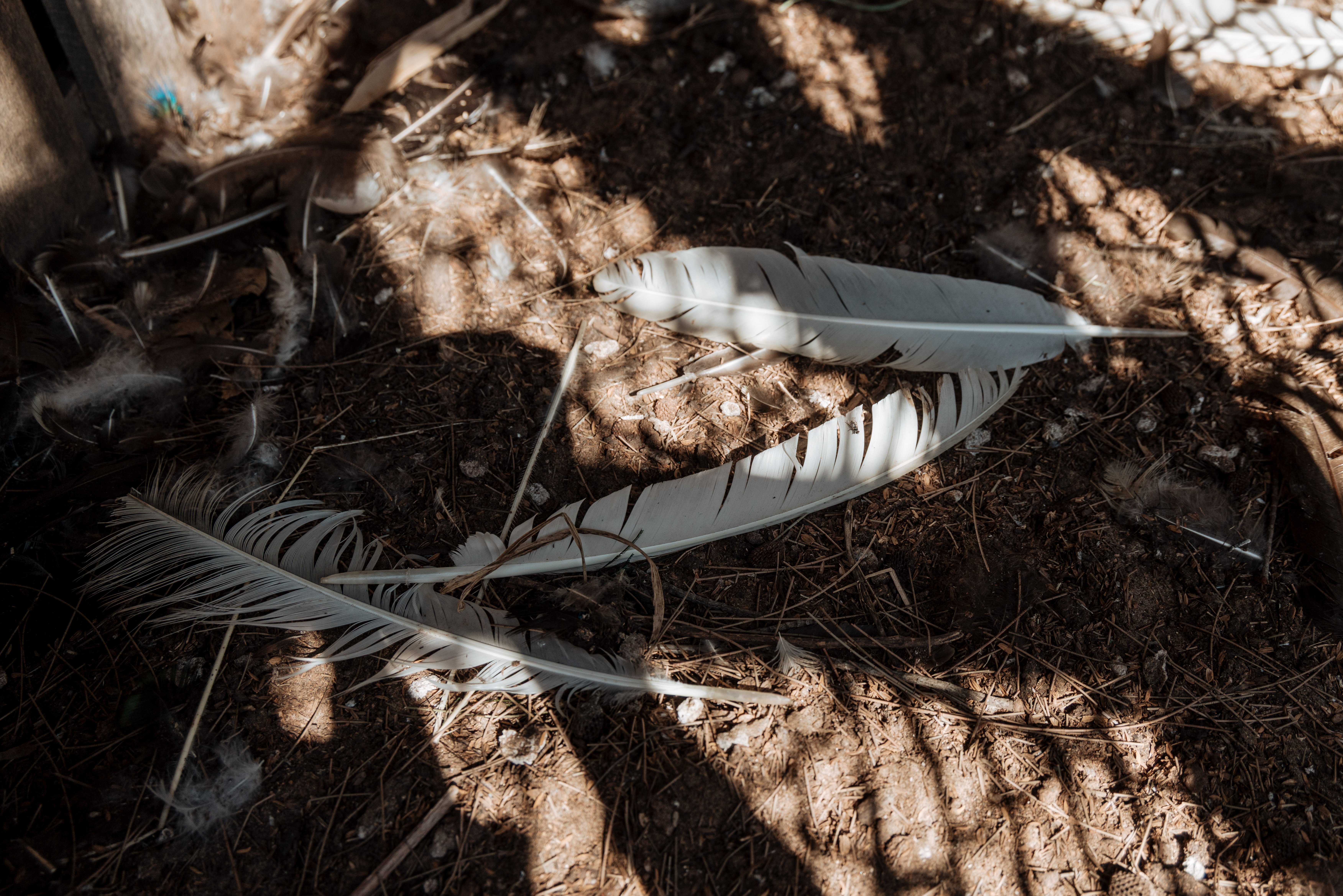 白孔雀是李策勵和兒子兩個人一起抓到的,「打下來後翅膀受了傷,我趕快把牠帶回來搶救。一開始我先擦優碘,後來想說只擦優碘可能不夠,要內外夾攻,我就用那個消炎粉拌水讓他喝,很怕牠感染細菌什麼的,兩三個禮拜後它就痊癒了。」
