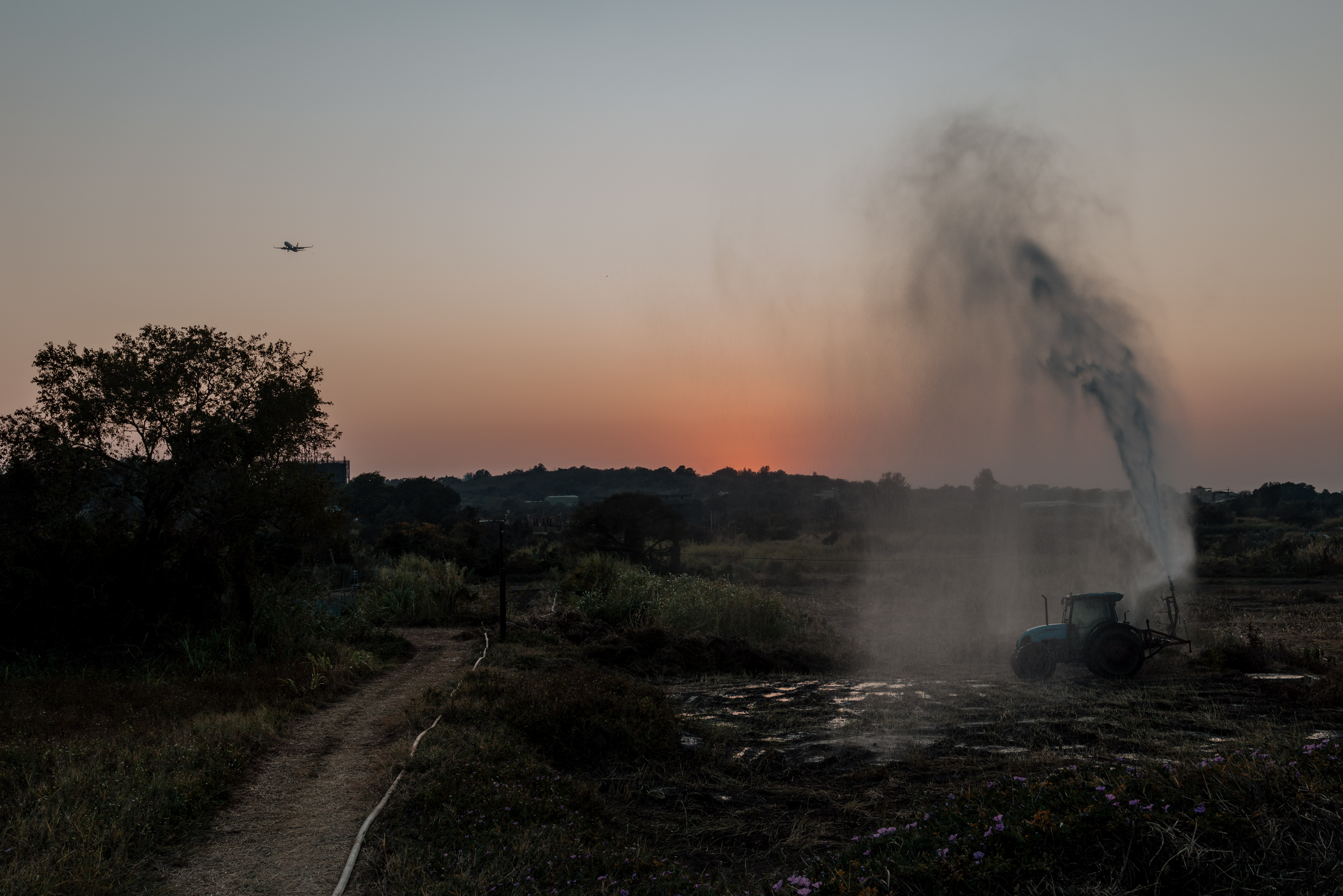 他咿咿呀呀的說完,走向田間一旁的小屋,關上轟隆作響的發電機,轉頭騎車離去,天地回歸寂靜。
