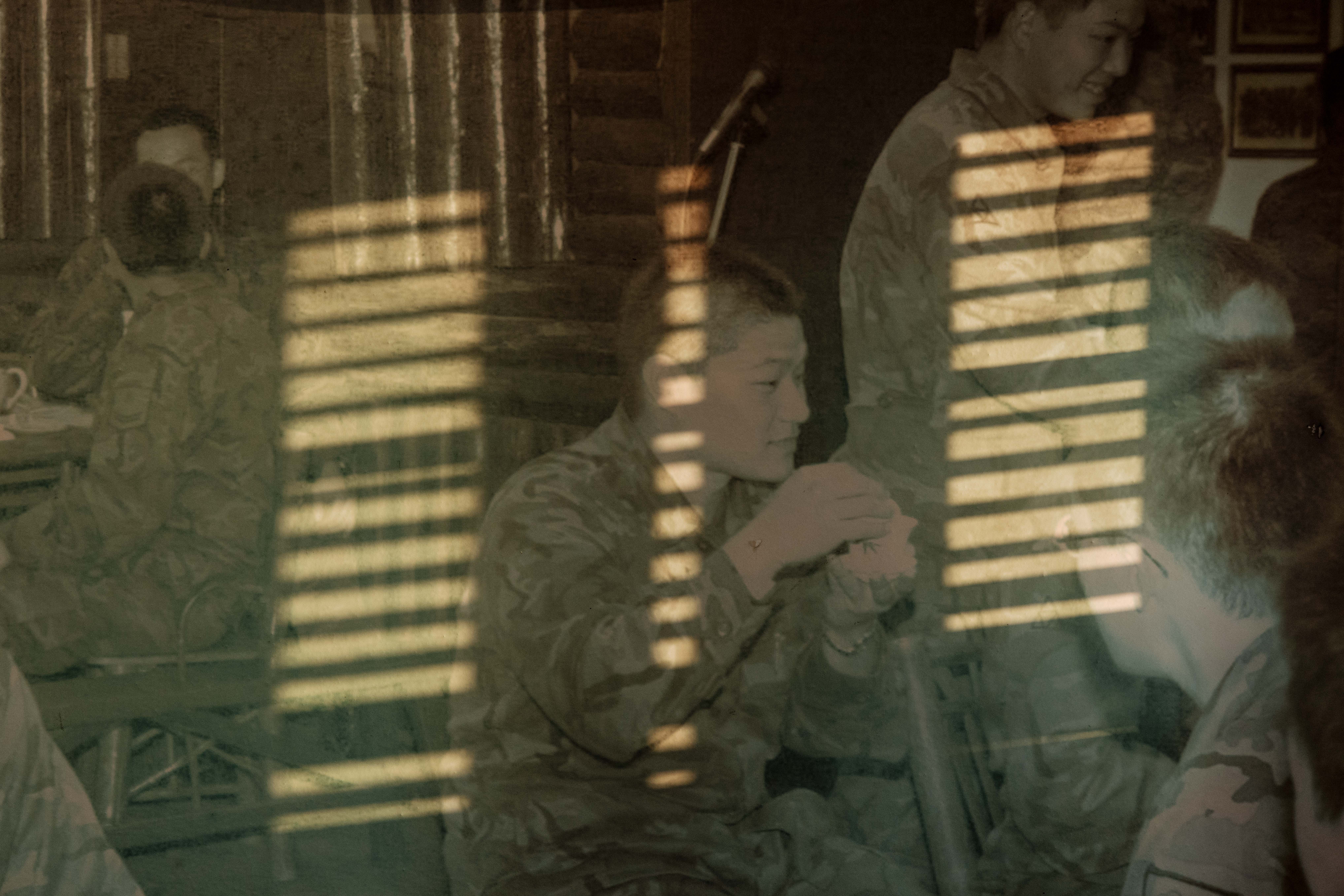 第一次與聖祺見面時,他一身軍裝造型、腰間配戴一只鋁製酒壺,粗獷又略顯魁偉的體型,看起來正像是我對他獵人身份的理解,但獵人造型下,他有藝術家性格的浪漫。