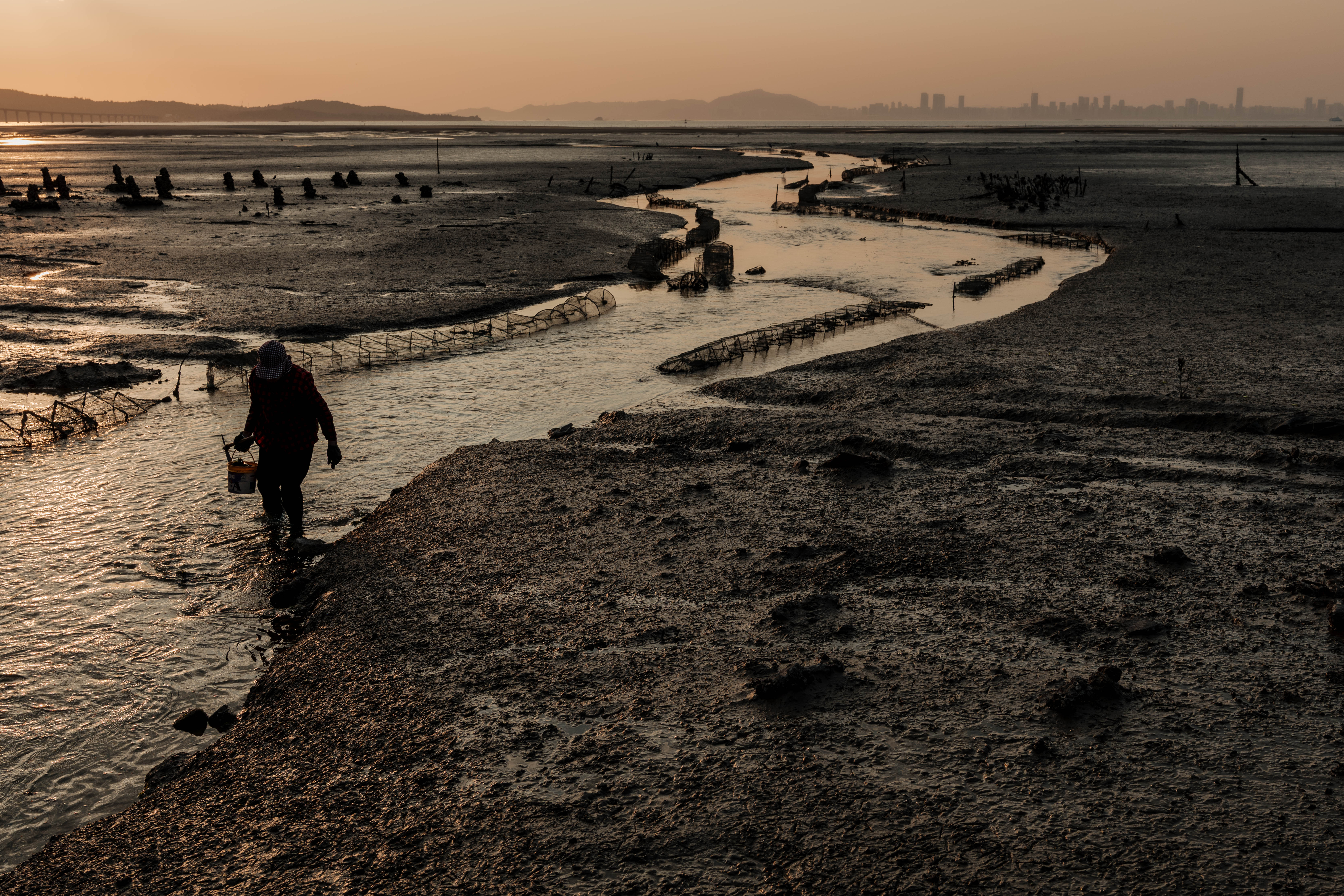 機場興建過程大量抽砂,「對我們海岸線的影響很大。」吳有家說,對岸的抽砂船在海上作業,甚至進入限制水域違法抽砂。被破壞的海床地形,致使海流速度與方向改變,加速金門海岸侵蝕、灘地流失,細沙逐漸消失,剩下粗礫石,「沙子抽完之後,帶來很多灘泥、爛泥,從中南、何厝、浦邊、劉澳到西園,石蚵的產量減少,蚵民下海採蚵的難度也增加。」