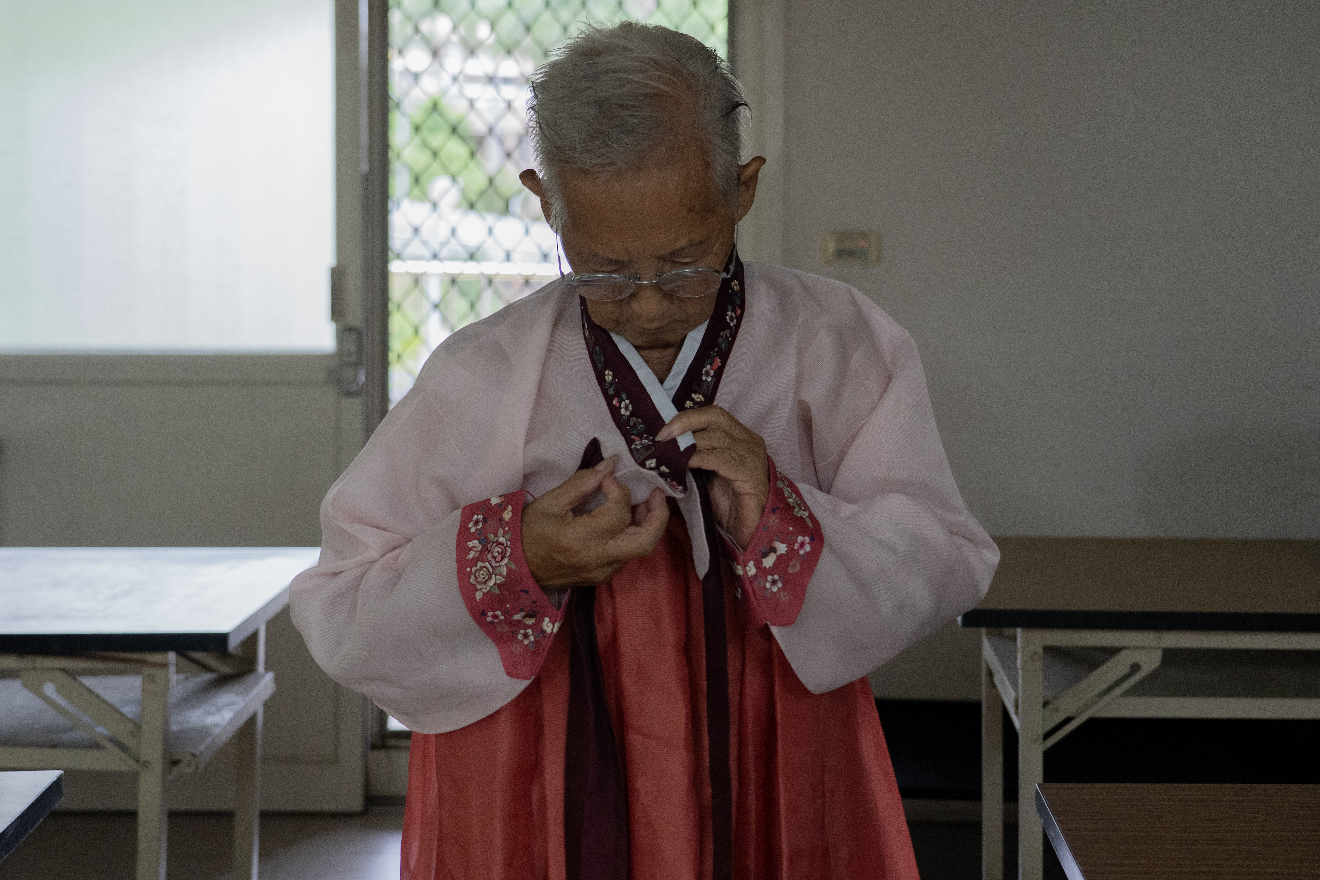 在教會裡帶領阿姨們唱歌跳舞的金正姬,是在日韓僑的第三代。她的爺爺奶奶、外公外婆都來自濟州島,二戰前移居日本,在大阪生下了她的父母。