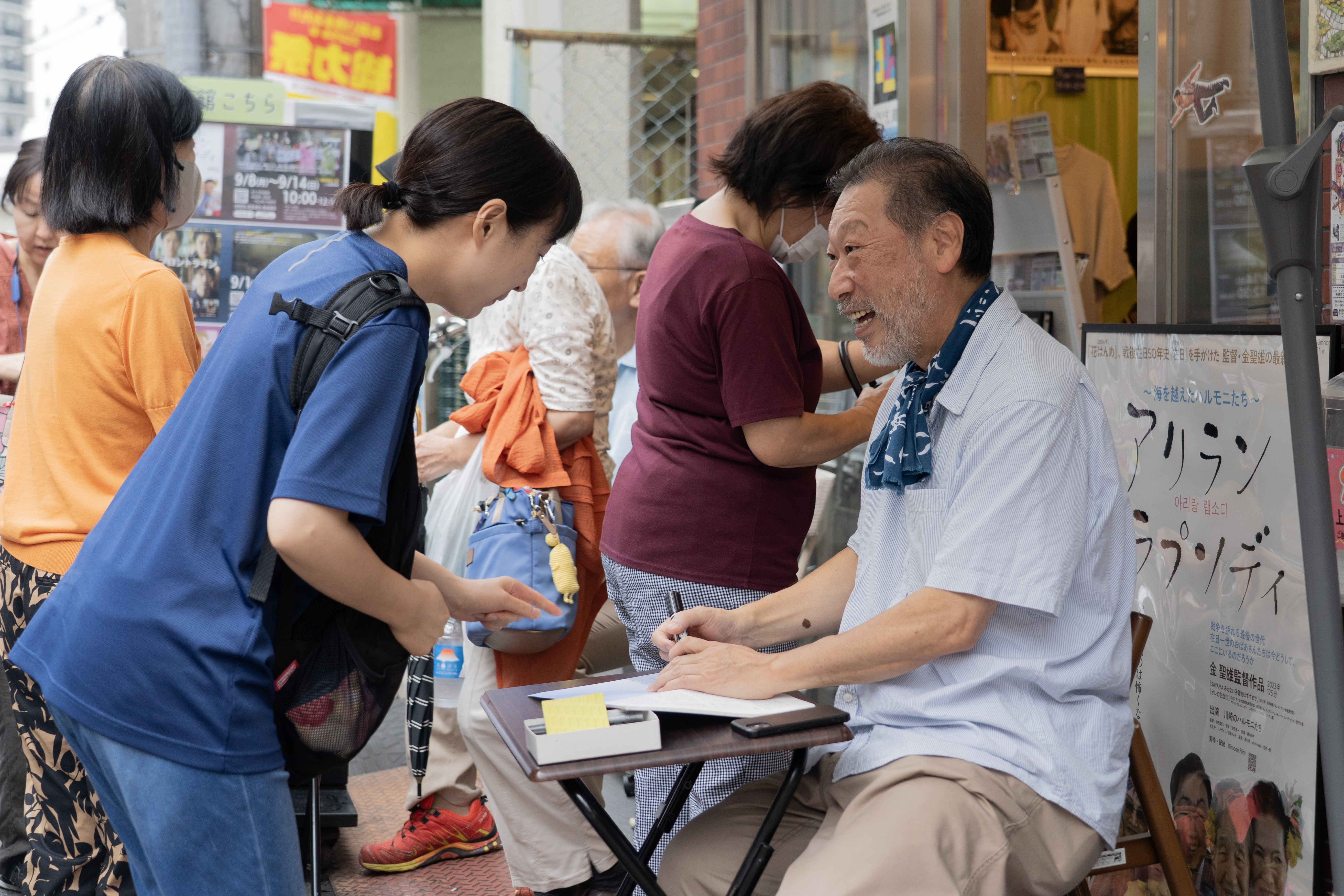 金聖雄的第二部紀錄片《阿里郎》,影片中,他與川崎的交流館合作,從識字課開始,拍攝老人們學寫字、互相傾聽。這個空間後來發展成跨世代的學習場域,聚集了不同國籍與背景的人——有人學日語,有人學英語,也有人只是來聊天。