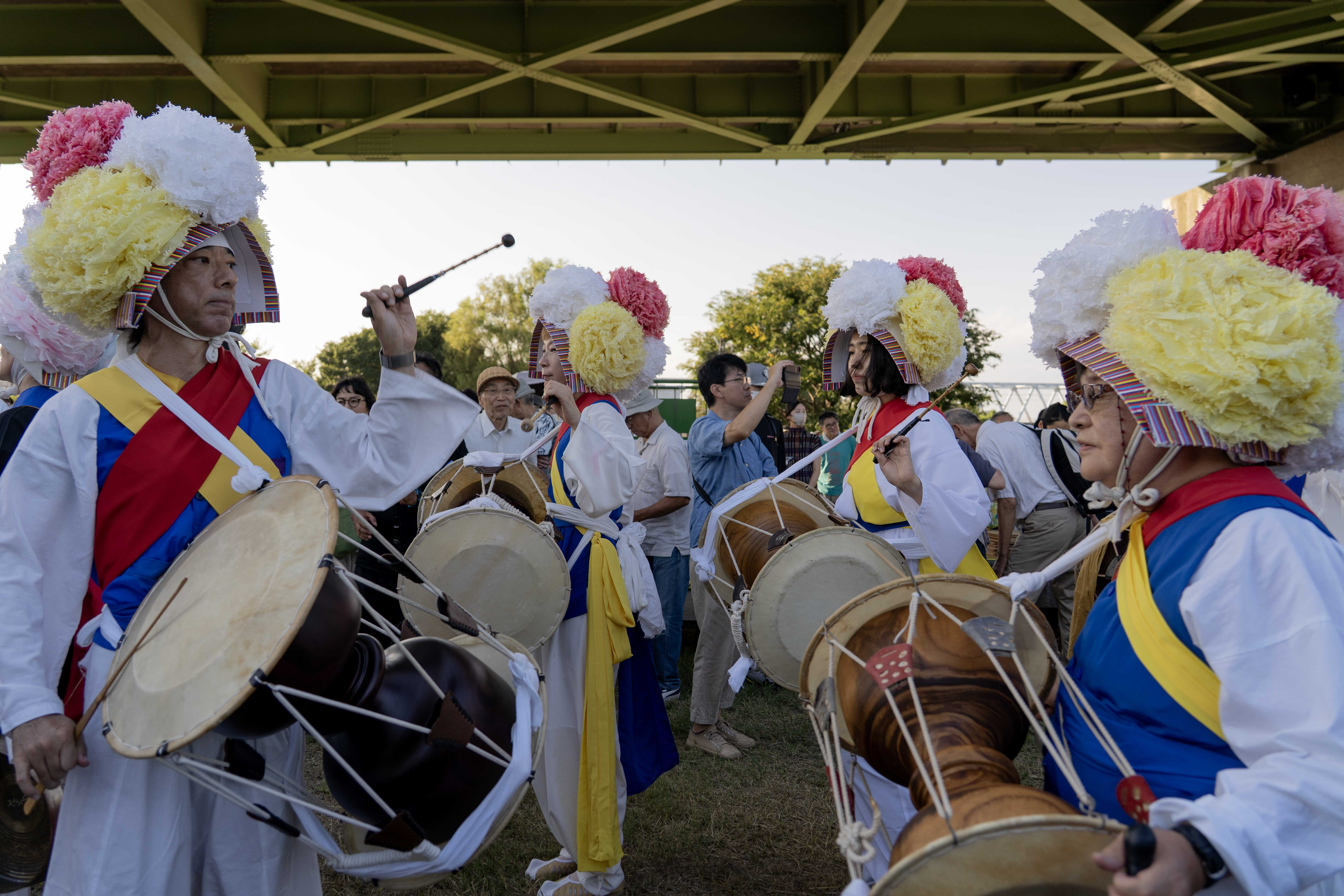2025 年 9 月 6 日,在日本東京荒川的四木橋下擠滿了人,人群的前方,身著白色的男子,打起了桶鼓,現場氣氛莊嚴肅穆,一群人穿著五色韓服,表演起朝鮮傳統民俗音樂「農樂」。這裡正在悼念關東大地震中去世的朝鮮半島人,從 1982 年開始舉辦至今,已是第 44 屆。