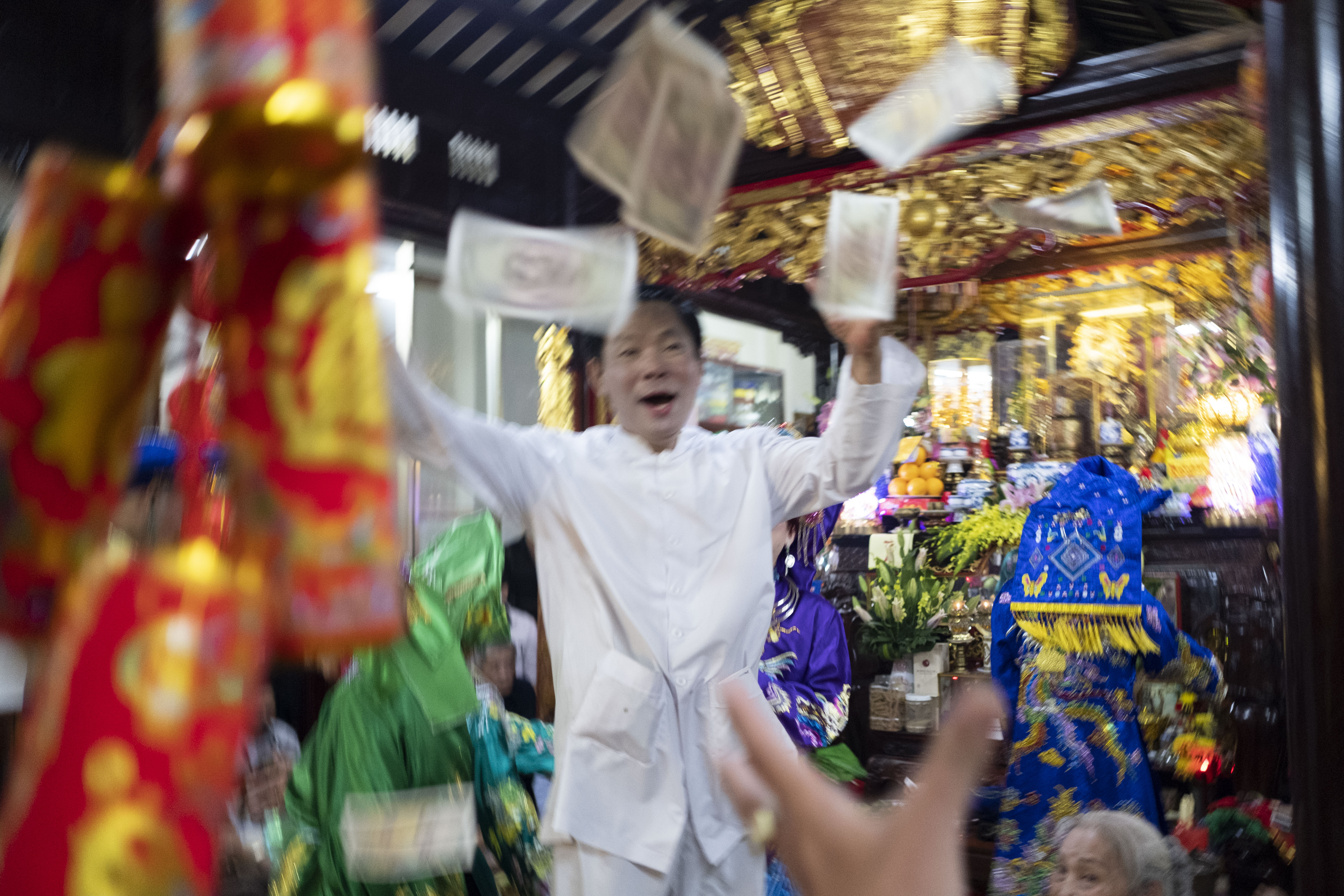 此祭祀在疫情前尤為盛行。恰逢越南經濟起飛,許多祭司將所得財物歸功於神明賜與,似乎在喻示越南經濟興起後,人們的内心慾望、止不住的傲氣,與回饋之心在此地揮霍展演。