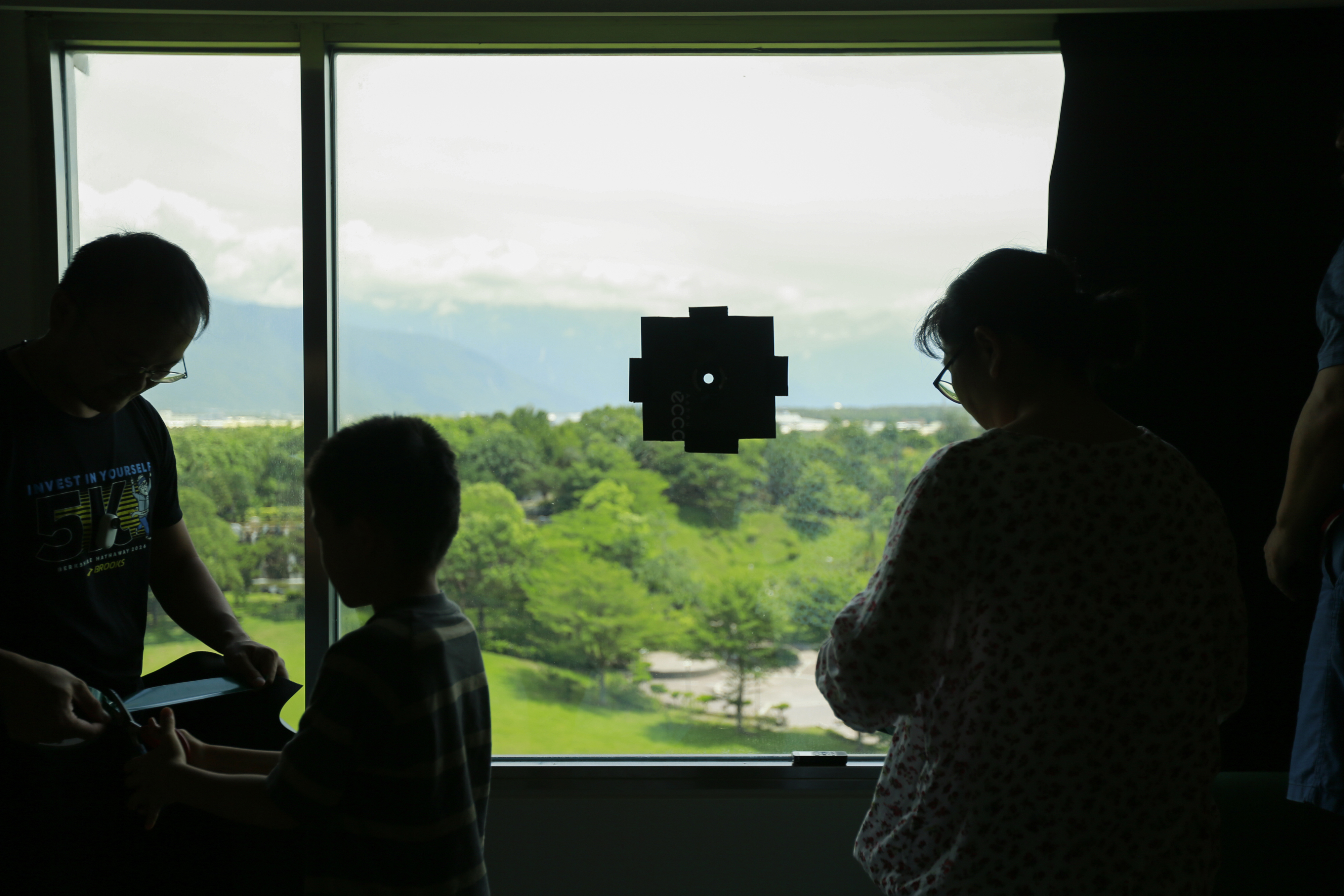 「我首先要做的事,就是盡可能把所有窗戶貼起來,不讓光漏進來。要讓房間成為全黑的環境,然後找一個地方,作為這個全黑環境的『孔眼』。以房間的比例來說,它非常地小,但是從我們來看,它並不到『針孔』的程度;這裡我用約莫兩公分的孔徑來當孔眼。決定孔眼的位置後,關燈,接下來就交給『光』處理了。」管憶華也簡要說明布置針孔室的方式。