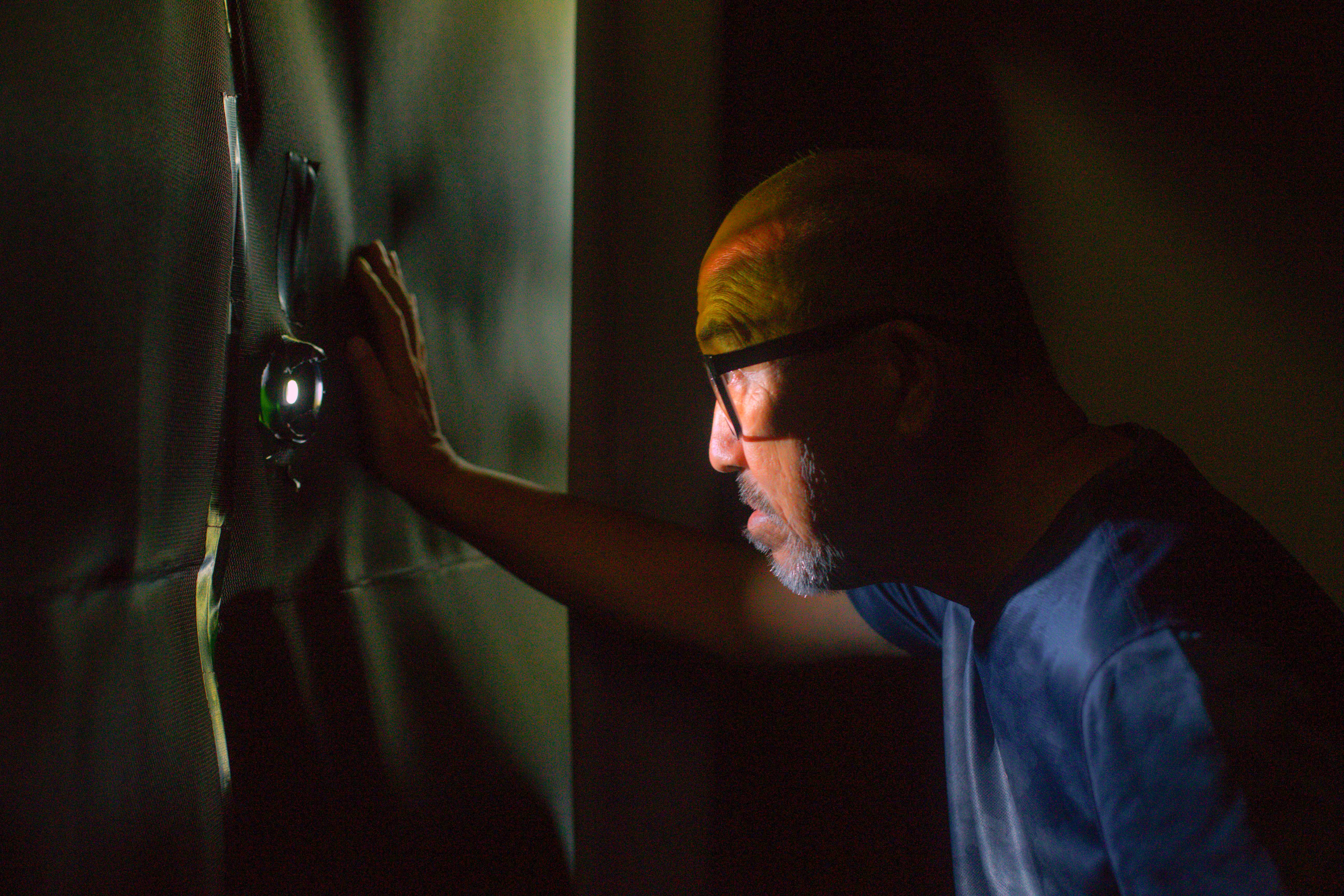 現在他們在房間裡,可以看見上下顛倒、左右相反的窗外美景,漸漸佈滿整個房間天花板。沒有任何電子儀器,僅靠一個兩公分的孔眼,就可以在現場親眼目睹畫面的「顯影」過程。即便這並非是一間真正可以照相的「房間相機」,但是仿若住在相機裡,成為暗房的一部分,應該就是管憶華一直的堅持。他是一位住在相機裡的人。