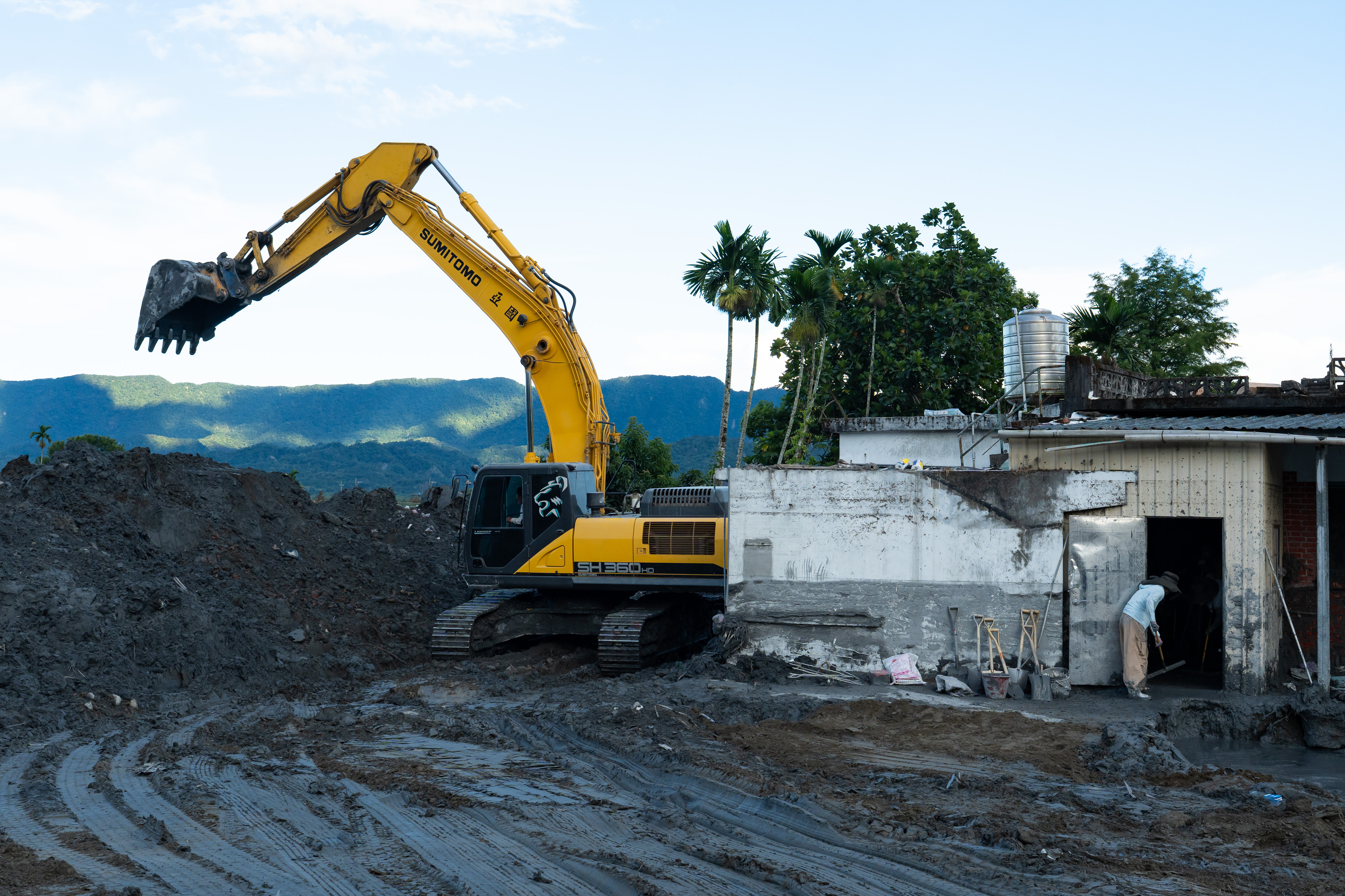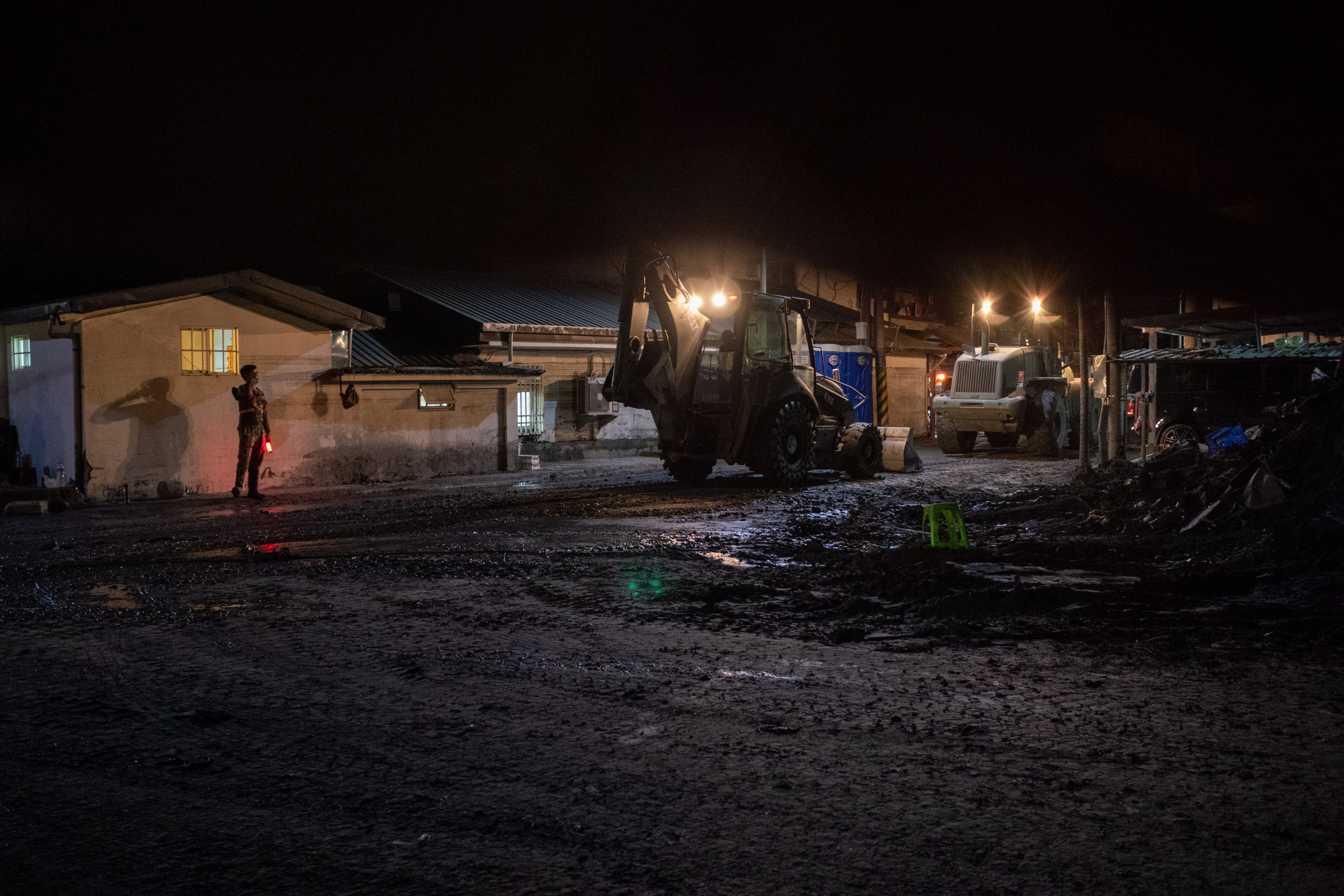 本次災情較嚴重的佛祖街周邊,可見許多志工協助清理民宅,重型機械也在淤積嚴重的保安寺進行挖掘,但周遭農田積滿了淤泥,面積廣大,是否能完全復原仍是未知數。