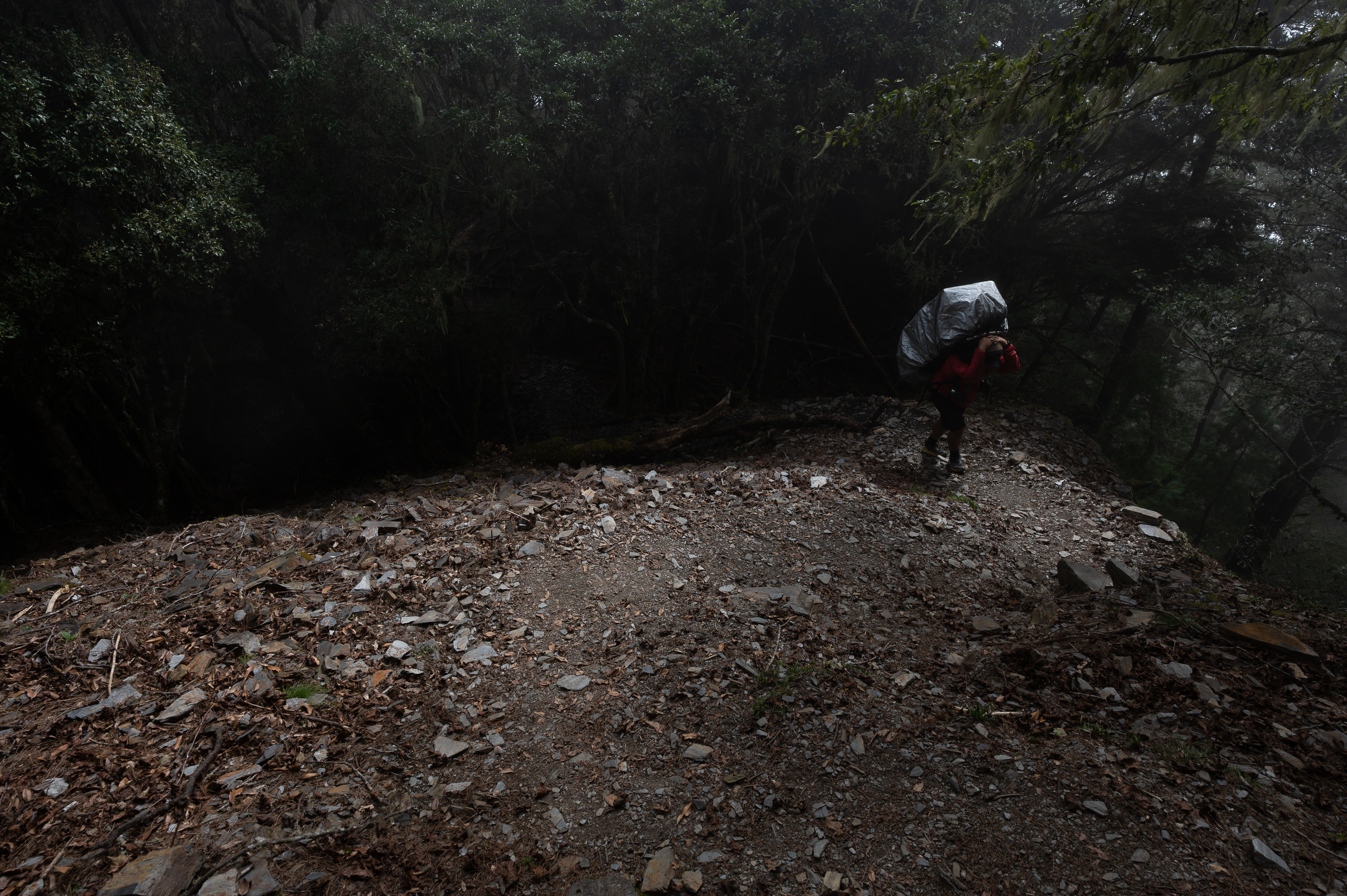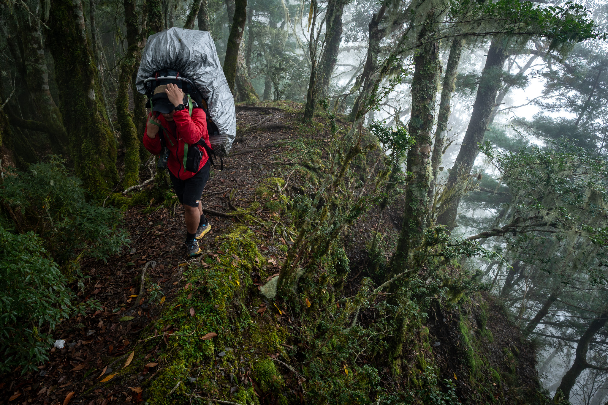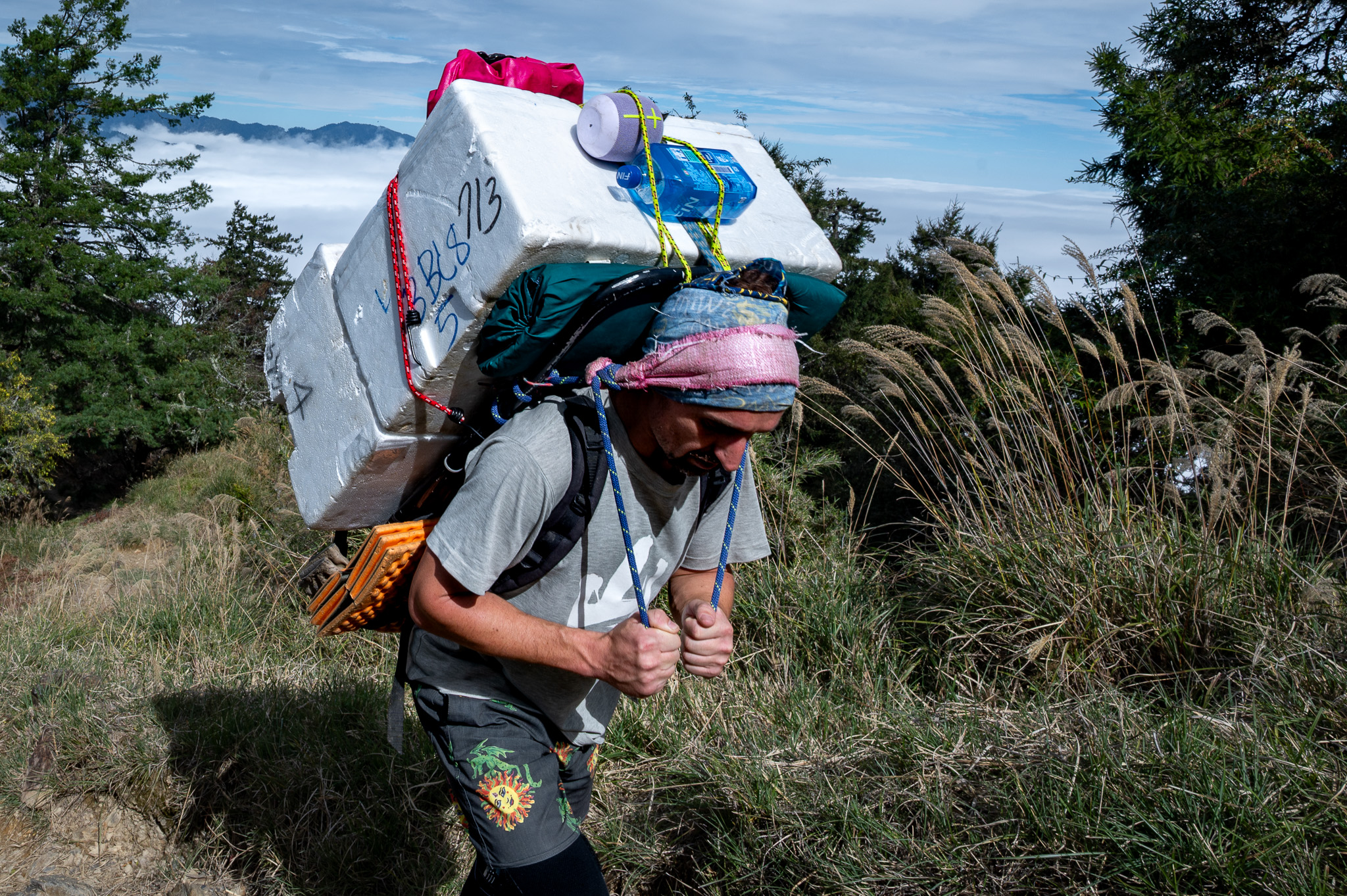 也是在山上,他第一次接觸到高山協作。當時的他正在找工作,認識的協作員問他要不要試試看。於是,阿山的人生,從揹著背包走世界,轉為揹著一整支隊伍的裝備,在台灣的高山間來回穿梭。