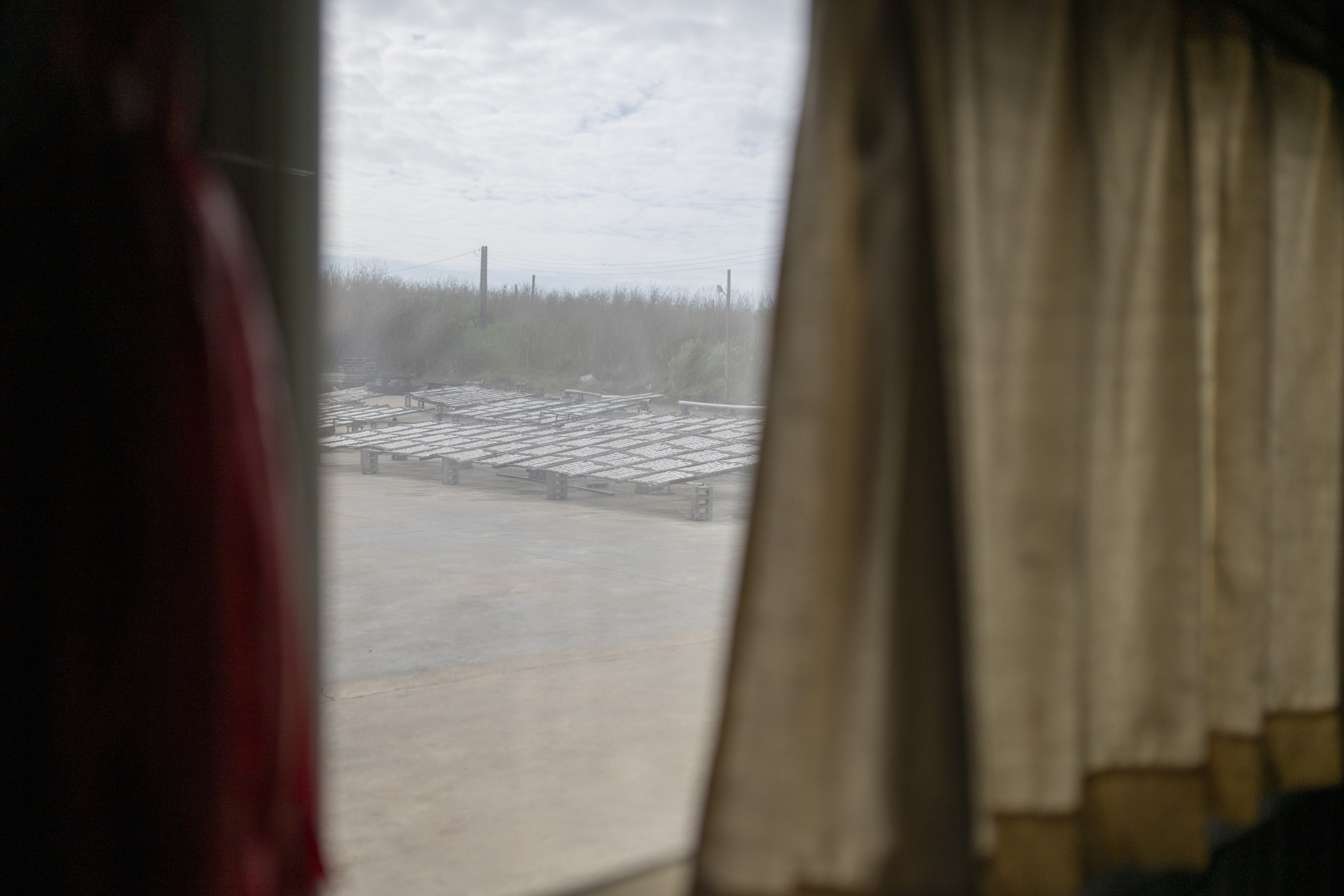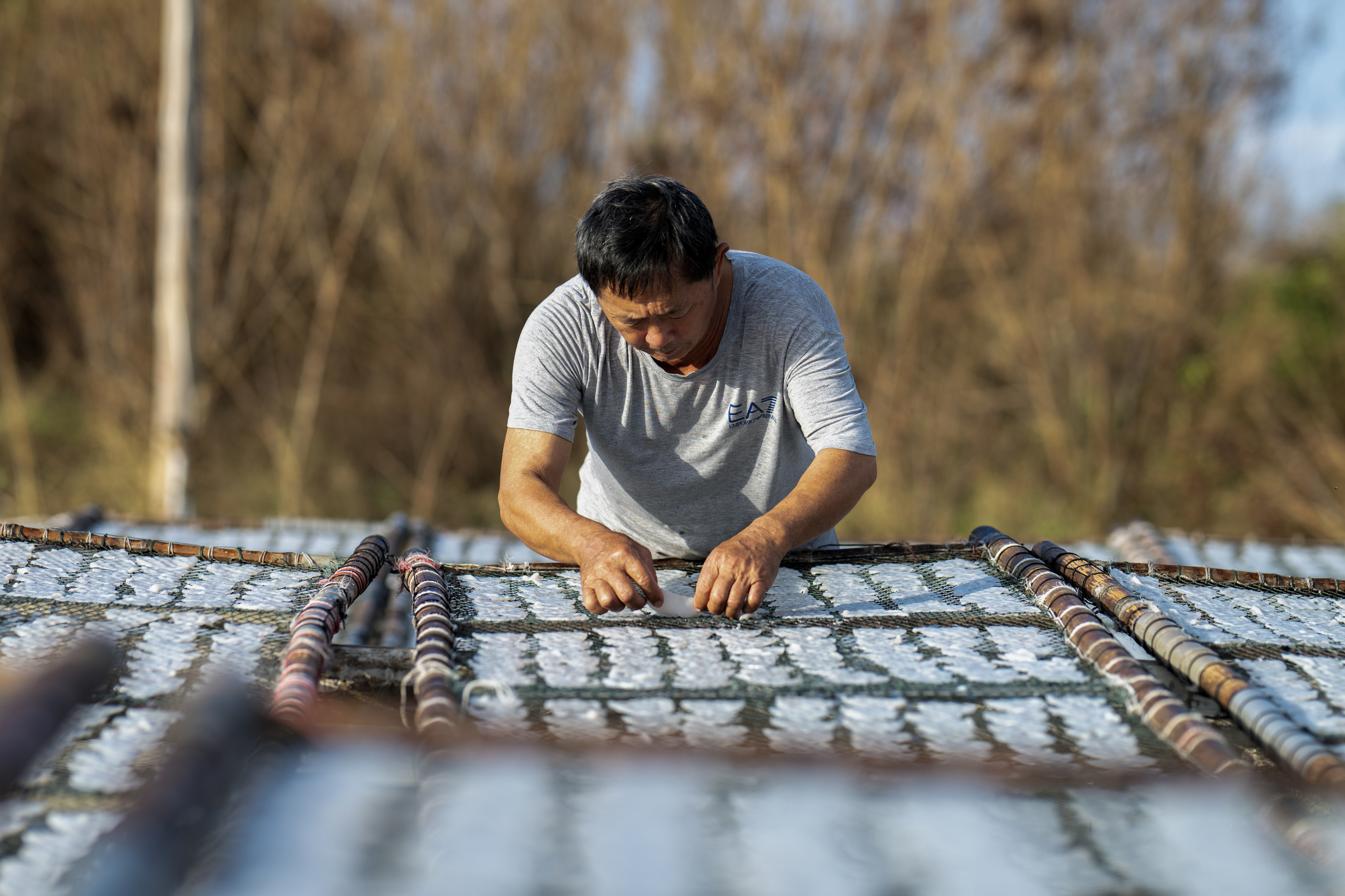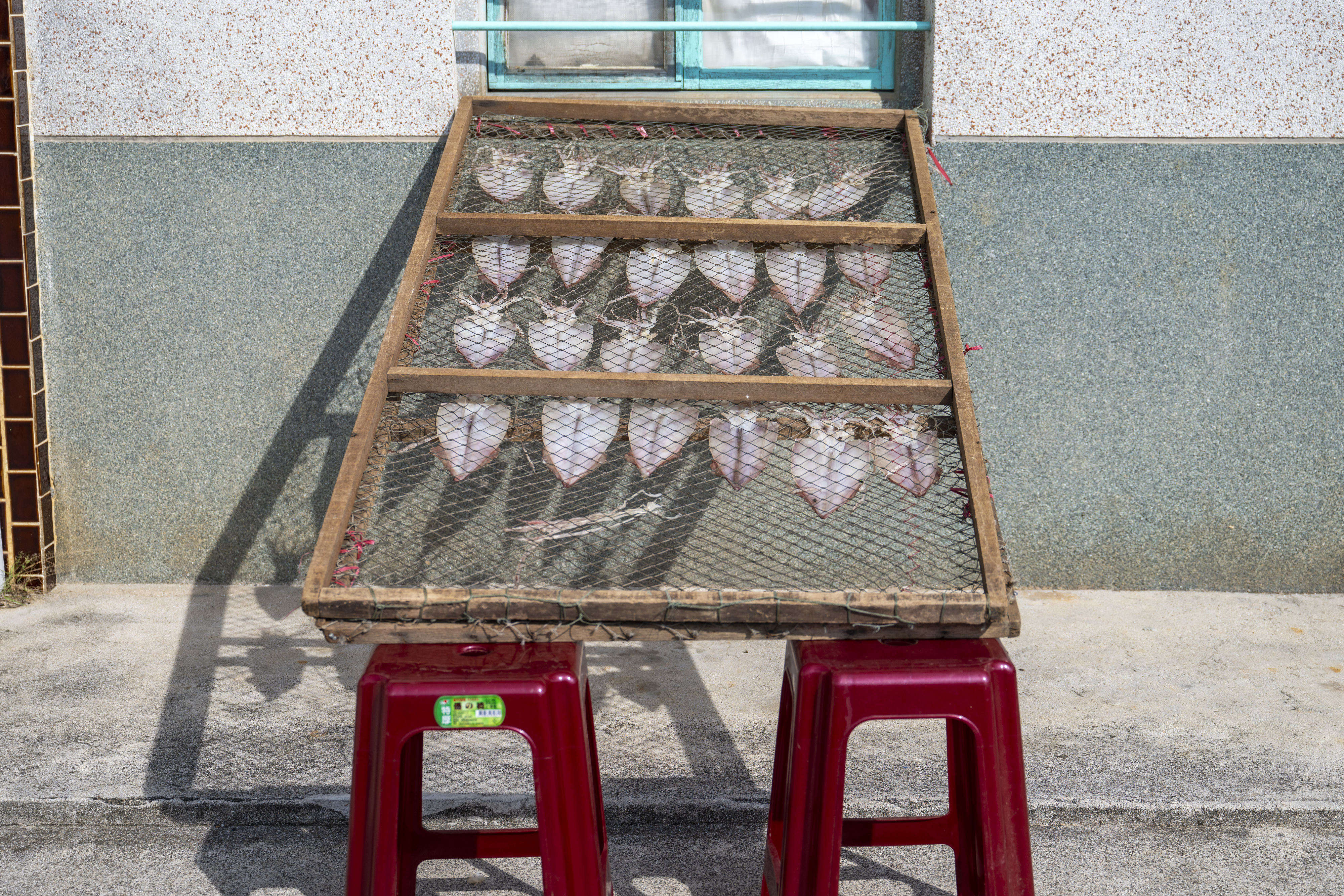 日曬過程,店家不忘巡視。對他們而言,照料小管片如同照顧小孩,凡事得細心;講求食品衛生的現代社會,更注重食安。當日加工,老頭家必是親力親為。對他來說,這是一件「慣習」的日常生活,心甘情願地看待每次不穩定的進貨狀況。