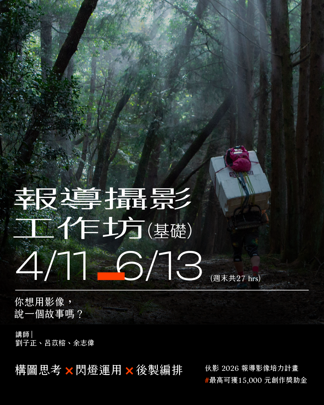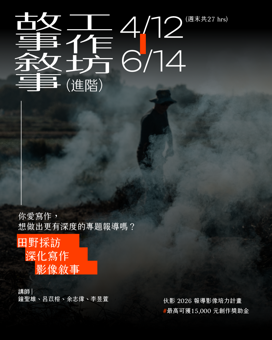 現在我們邀請你的加入,報名新一年度 2026 影像報導培力計畫,在業界導師和伙影成員的陪伴下,一起做伙走下去,用光與火點亮世界。在過去,人們會說世上有個 Magnum,而未來,人們將說台灣有個「伙影」。