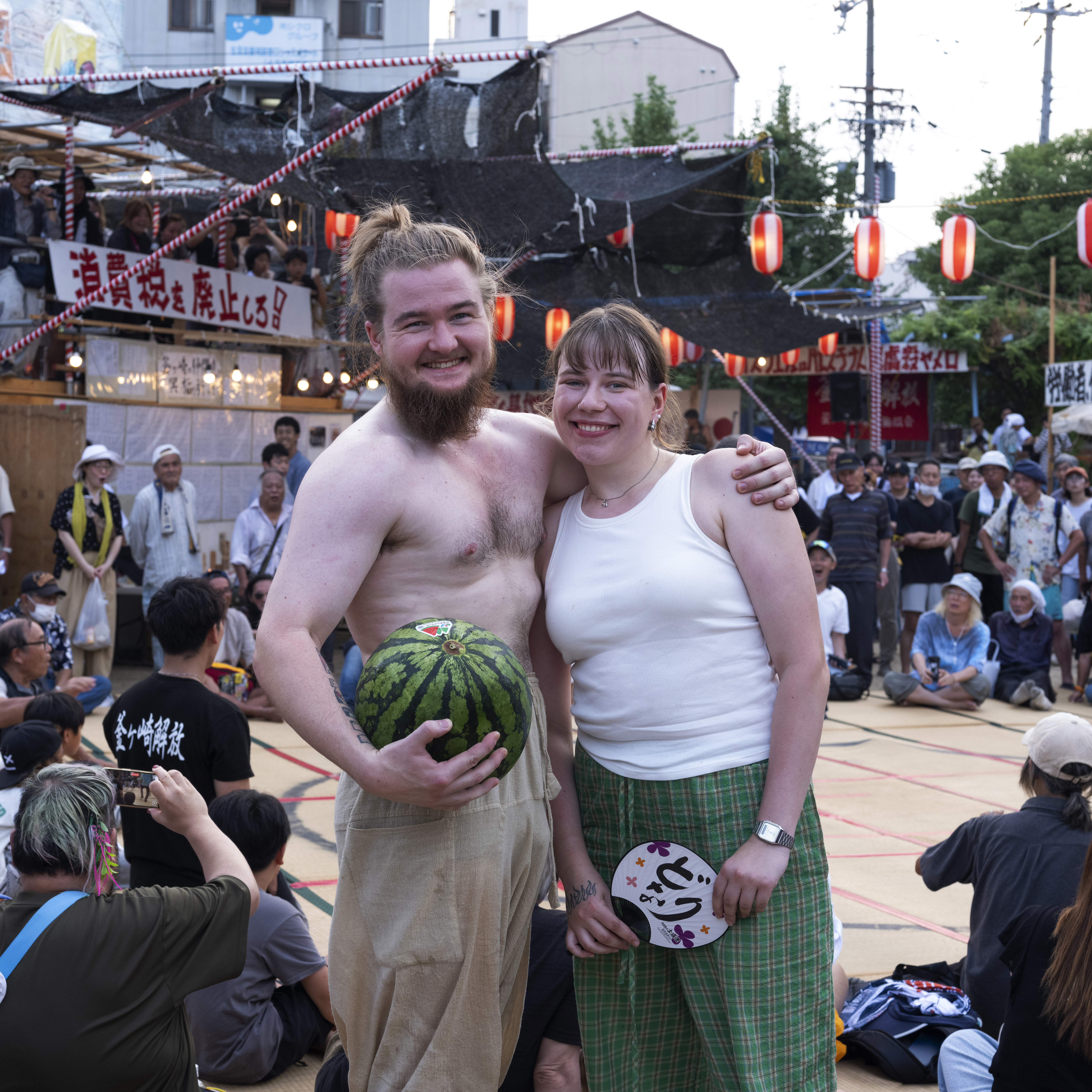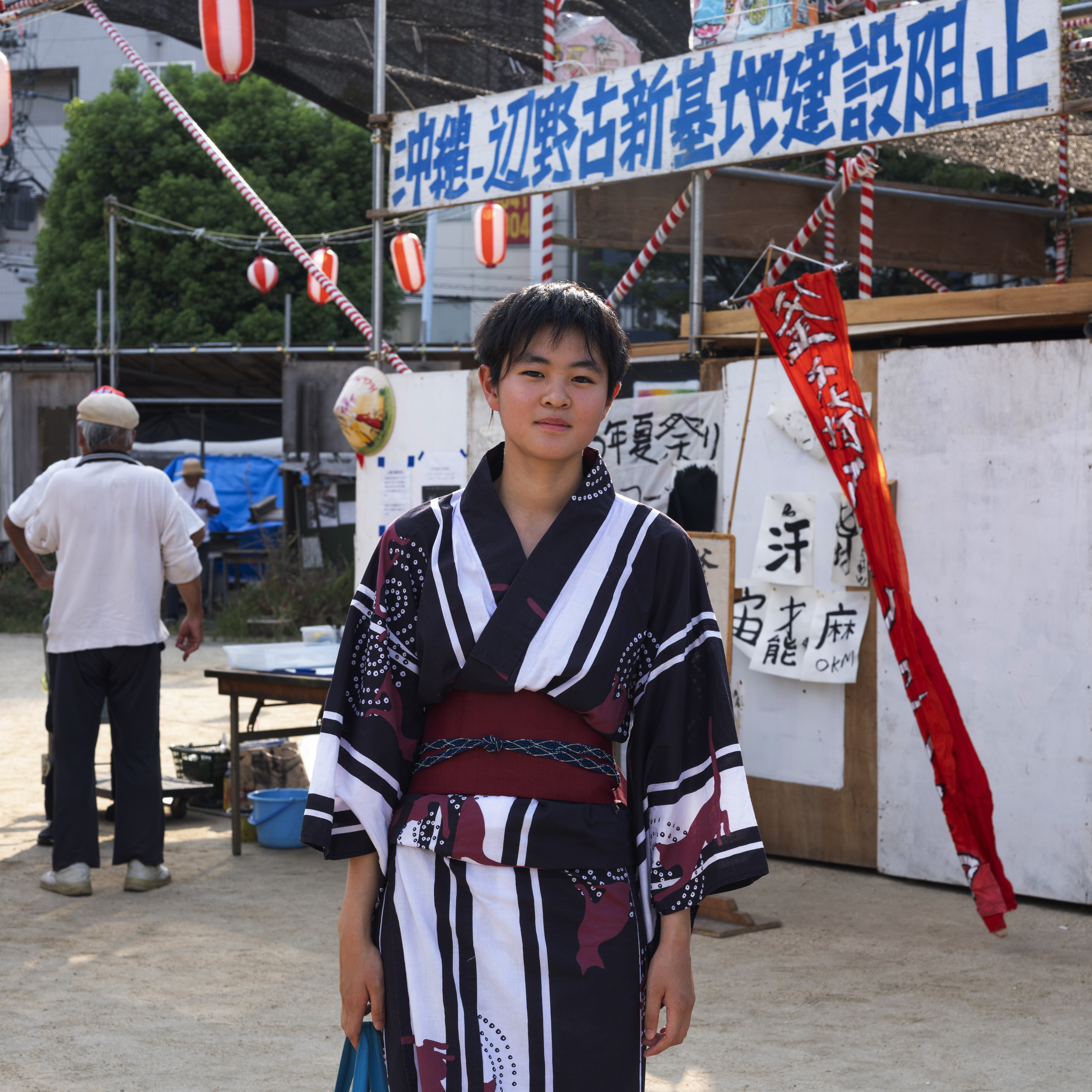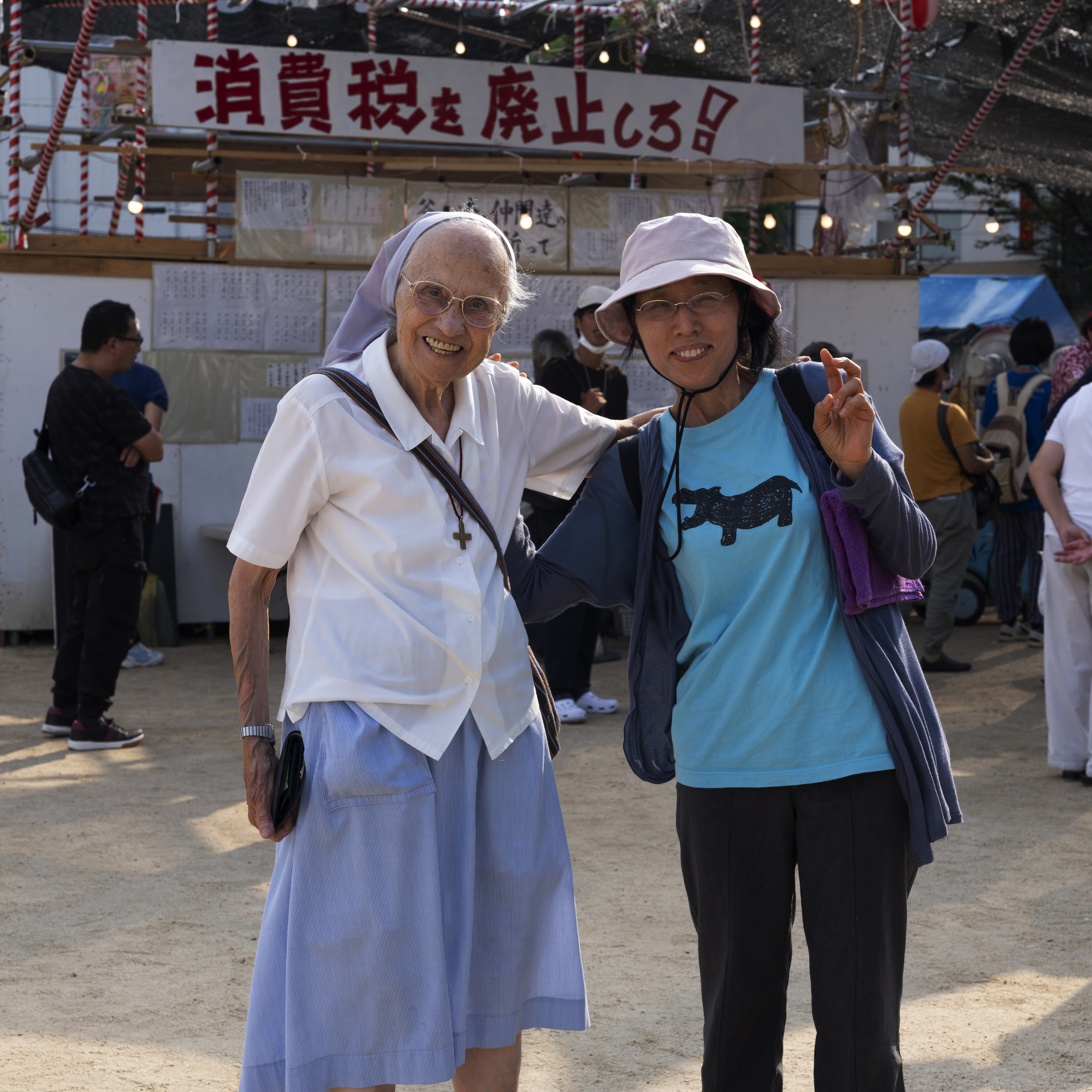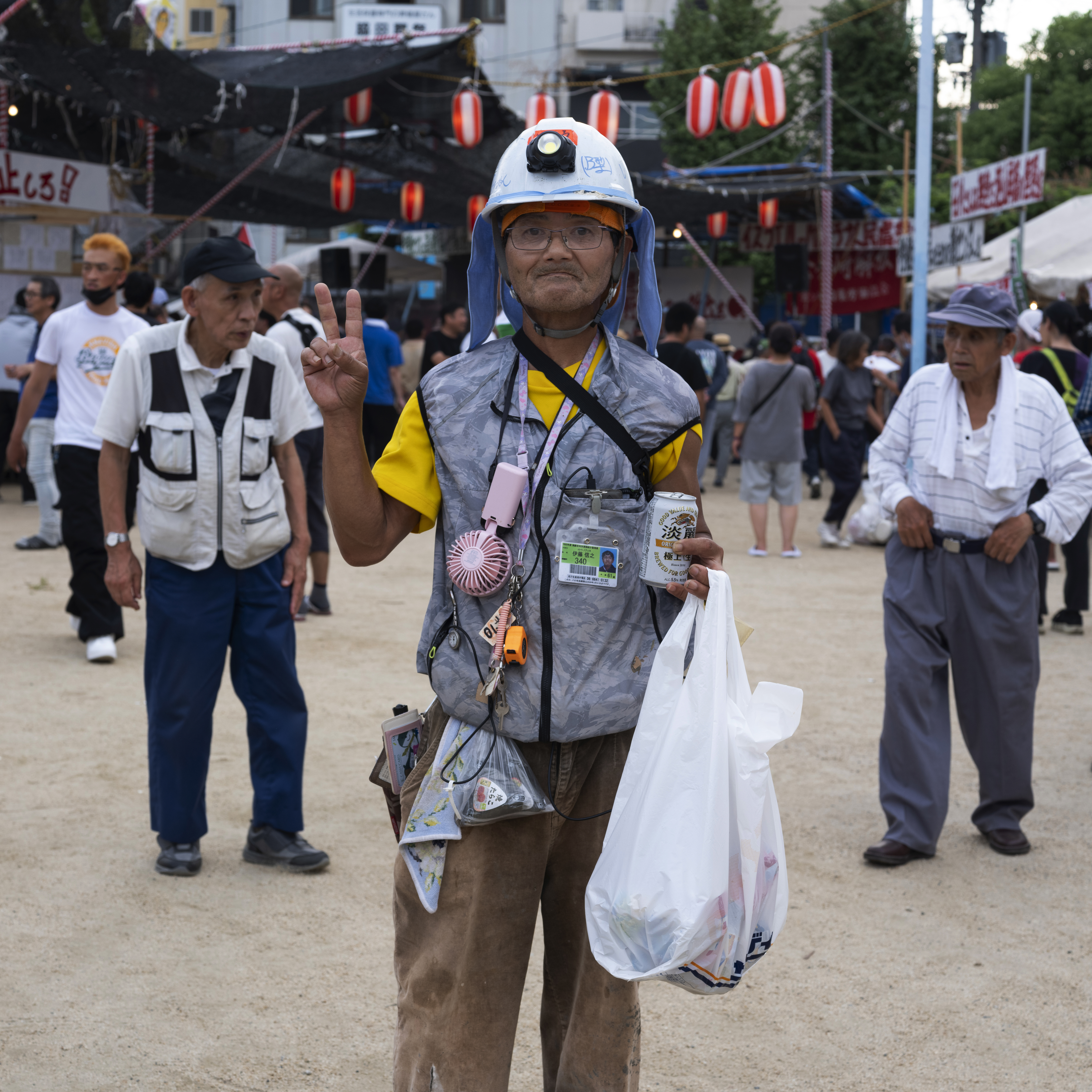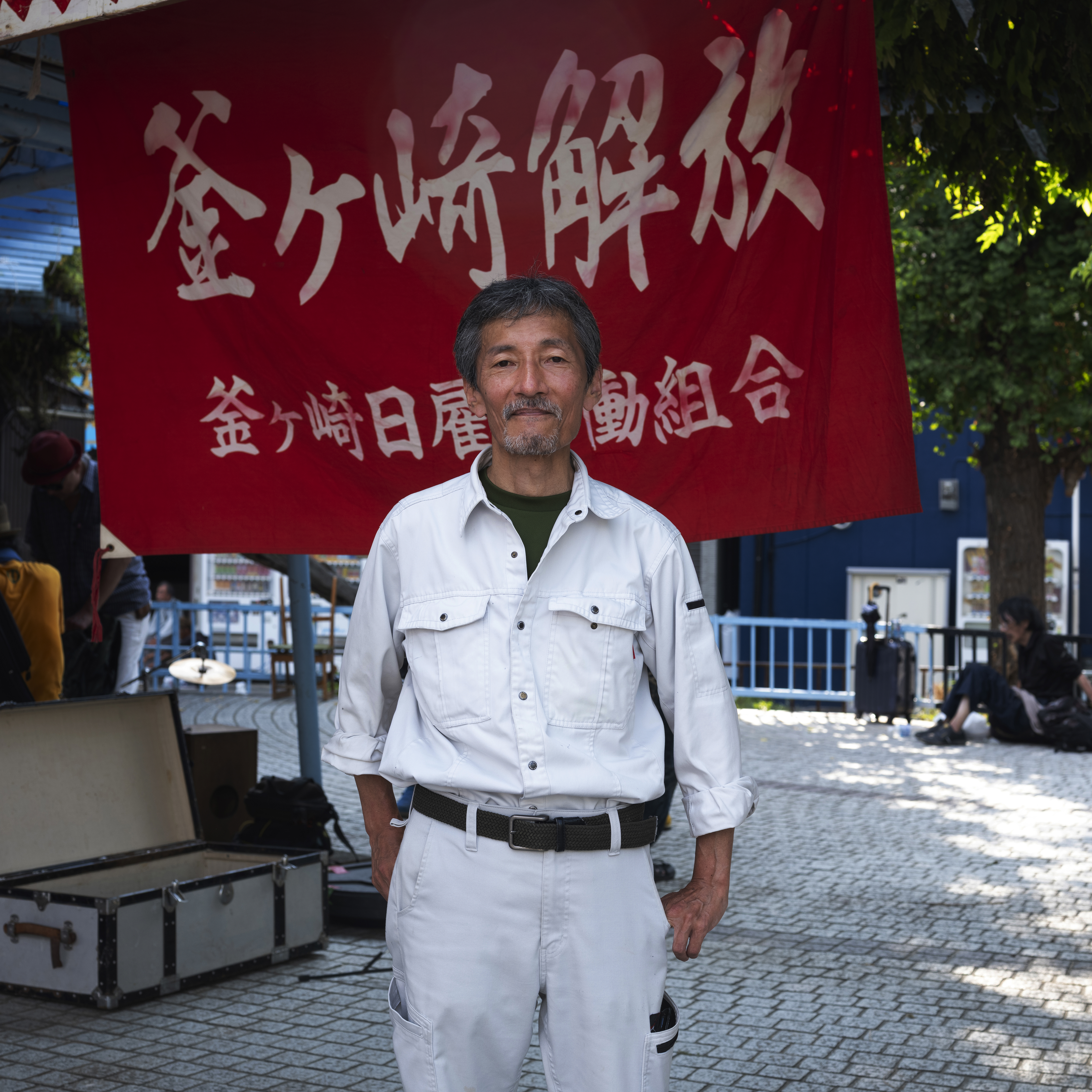 一名街友把超市的手推車當作助行器,前來參加夏祭。 他是一位摔角手,在釜ヶ崎開了一家通宵營業的居酒屋,成了遊客的打卡熱點。 她是「釜ヶ崎藝術大學」的導賞員。「釜藝大」由非政府組織 Cocoroom 發起的計劃,口號是:「只要有想學習的人聚集,那裡就是大學。」釜ヶ崎有許多無處可去、缺乏目標的人,「釜藝大」經常舉辦藝術節目、講座和展覽,為他們提供學習與交流的機會。隨著來釜ヶ崎的外國遊客越來越多,「釜藝大」也經營民宿與咖啡廳,並招募英語和日語導賞員,漸漸釜ヶ崎也不再遺世而立。 攝影師石津武史(1943 年生)長期關注釜ヶ崎。大約自 2008 年起,他每年越冬節和夏祭都會在三角公園搭建臨時攝影棚,為街友與勞動者拍攝肖像,作為他們「活著的證明」,很多被攝者會把照片當作遺照使用。石津先生認為攝影是溝通的媒介,他是透過攝影是與釜ヶ崎居民在一齊。 一名勞動者以工作服造型來參加夏祭,腰間還繫有飯團。但不確定他當日有否找到工作機會。 他本來是教師,經歷離婚、有酗酒習慣,後來來到西成區生活,靠社會援助維生。 寺川大地在釜ヶ崎經營的咖啡館「EARTH」也是一間 Live House,表演收費隨緣樂助。自 2021 年起,他發起了名為「歡迎來到後巷舞台」(路地裏の舞台にようこそ)的活動,當時受新冠疫情影響,許多藝人失去演出機會。寺川說服了釜ヶ崎一帶的酒吧、咖啡館、商店、公共澡堂與旅館等場所提供場地,舉行戲劇、電影放映、舞踏等多種表演,成為區內的藝術盛事。 「EARTH」Live House的常客。 他是長期關注街友社群社工,年輕時在橫濱服務,20 多年前來到釡ヶ崎,為勞動者提供居住支援服務。 釡ヶ崎勞動組成員。 在夏祭演出的樂手。 幾年來在釡ヶ崎,當看到她(左)常帶著小女兒在三角公園悶納的俳佪,但夏祭時好像換了一個人,精神爽利的。另外兩位是長醉不願醒的釡ヶ崎街坊。 垂老矣矣的三浦先生,在夏祭時稍微衝了動。 釡ヶ崎勞動組成員。 釡ヶ崎勞動組成員。 釡ヶ崎作為左翼基地,反美是常態,MAGA 派絕對是稀客。 在「釡ヶ崎藝術大學」擔任導賞員的學生。 在釡ヶ崎服逾 40 年的修女(左),長期為死去的街友殮葬。 很有石津武史攝影風格的釡ヶ崎居民。 這位先生已年屆 75 歲,知道要拍照,便秀出他引以為傲的修羅紋身。擁有這紋身的,都曾是黑社會的打手。他本身是沖繩剛柔流空手道二段。一位武術家為何露宿街頭,他的人生跌宕有待發現。 這名運動家身型的參與者,特地戴了手套來參加夏祭的拔河大賽。 跨性別人士平日不被看見,在夏祭時都悉心打扮。這名喜歡軍服元素的跨女,得知我是攝影記者,欣然被拍,表示她要告訴外界這個社群的存在。 他是一位居酒屋老闆,近 5、6 年在釡ヶ崎開店,客人主要是年輕遊客。 一名身穿浴衣的參與者,來參加夏祭慶典。 森澤達郎是居酒屋「呑み処 八福神」的老闆,早在 2012 年已在釡ヶ崎開業,現時已成為區來名店,很受外國遊客和 Youtuber 歡迎。森澤長期致力於公益活動,開設「兒童食堂」,為弱勢家庭的孩子提供營養餐;並在西城區設立「米達卡學校」,提供工作訓練和就業支援。 一名愛沙尼亞遊客、摔交好手即席加入夏祭壓軸重頭戲相撲比賽,展開一場有趣的交流。他多戰連勝,現場的本地參加者應為國技不能輸人,不斷出來挑戰,還是鍛羽而歸。愛沙尼亞遊客獲得一個西瓜作為戰利品。 年屆 70 歲的舞踏藝術家デカルコ・マリィ(Decalco Marie)。舞踏源自 5、60 年代,日本一群年輕藝術家對西方芭蕾、現代舞和日本傳統舞蹈都感到疏離,開始挑戰當時的審美與道德標準。舞者經常塗滿白粉、動作扭曲、裸露身體。デカルコ・マリィ的演出也加入了易服的元素。有別於保守的日本主流社會,釜ヶ崎匯聚了許多邊緣、異色的人與事,大有「Stay weird, stay different」的意味。 Open Cafe ロック亭的店主いずやん(Izuyan)。Open Cafe 是藝術家的聚腳點,每晚都有不同的音樂人來表演。基本低消一杯飲品便可入場,但很多時他都會讓勞動者免費觀賞。