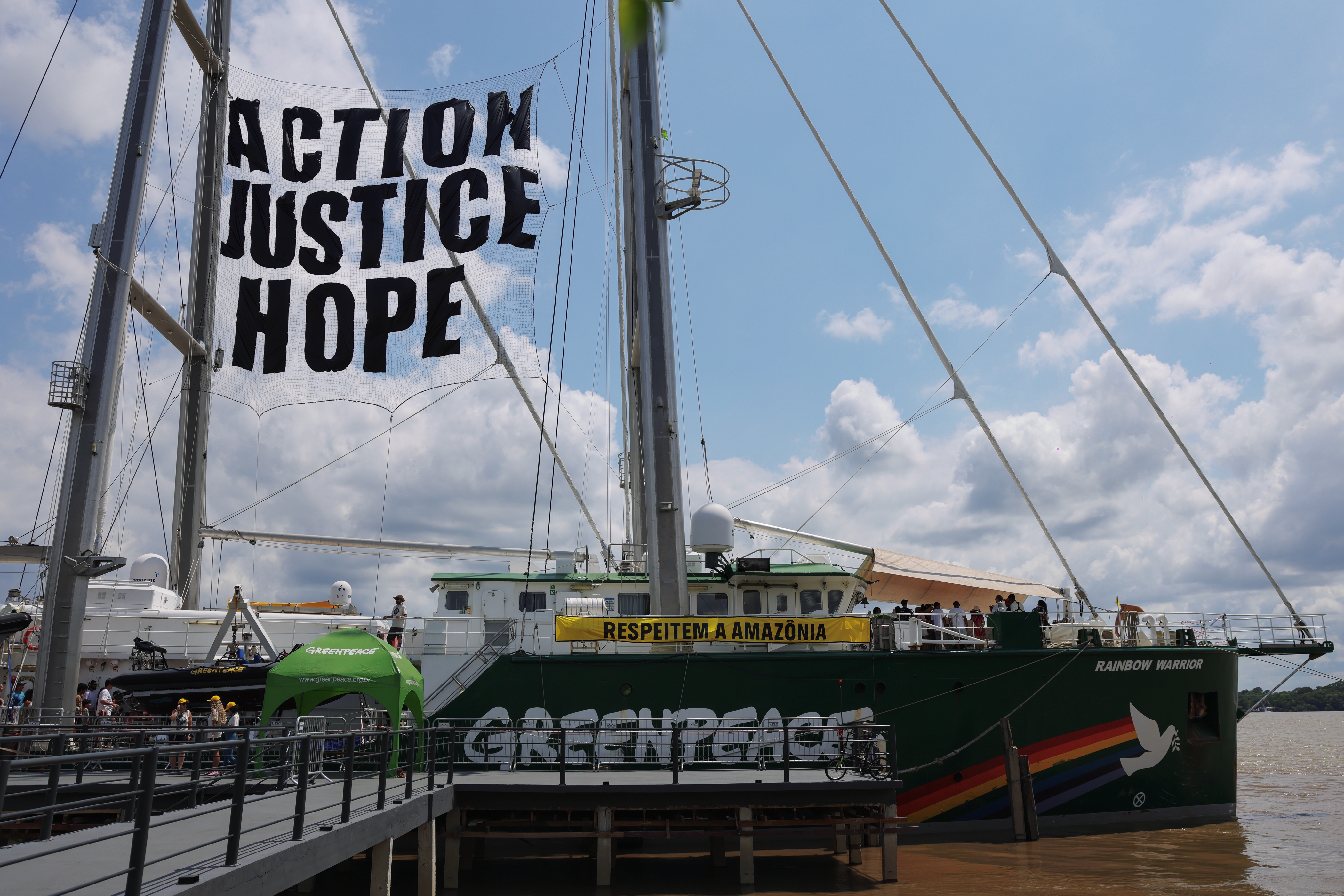 綠色和平也透過彩虹勇士號呼籲尊重亞馬遜原住民族與居民,支持其作為守護森林的第一線力量。「我們沒有退路,氣候變遷比我們預期更快發生,原本計畫在五年、十年、十五年後才出現的現象,現在已提前到來。我們沒有時間可以浪費,多邊合作(multilateralism)至關重要。」羅慕洛說。