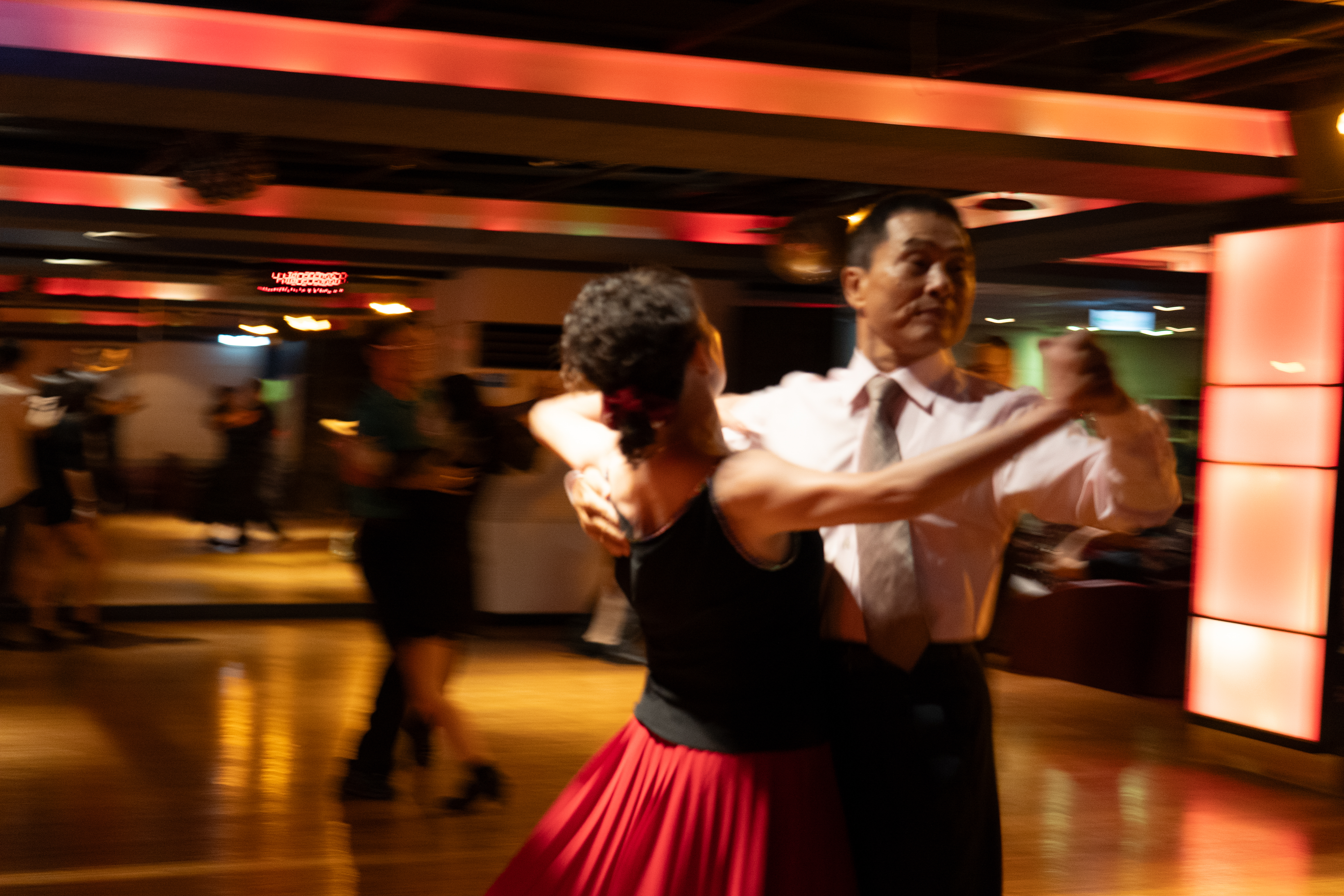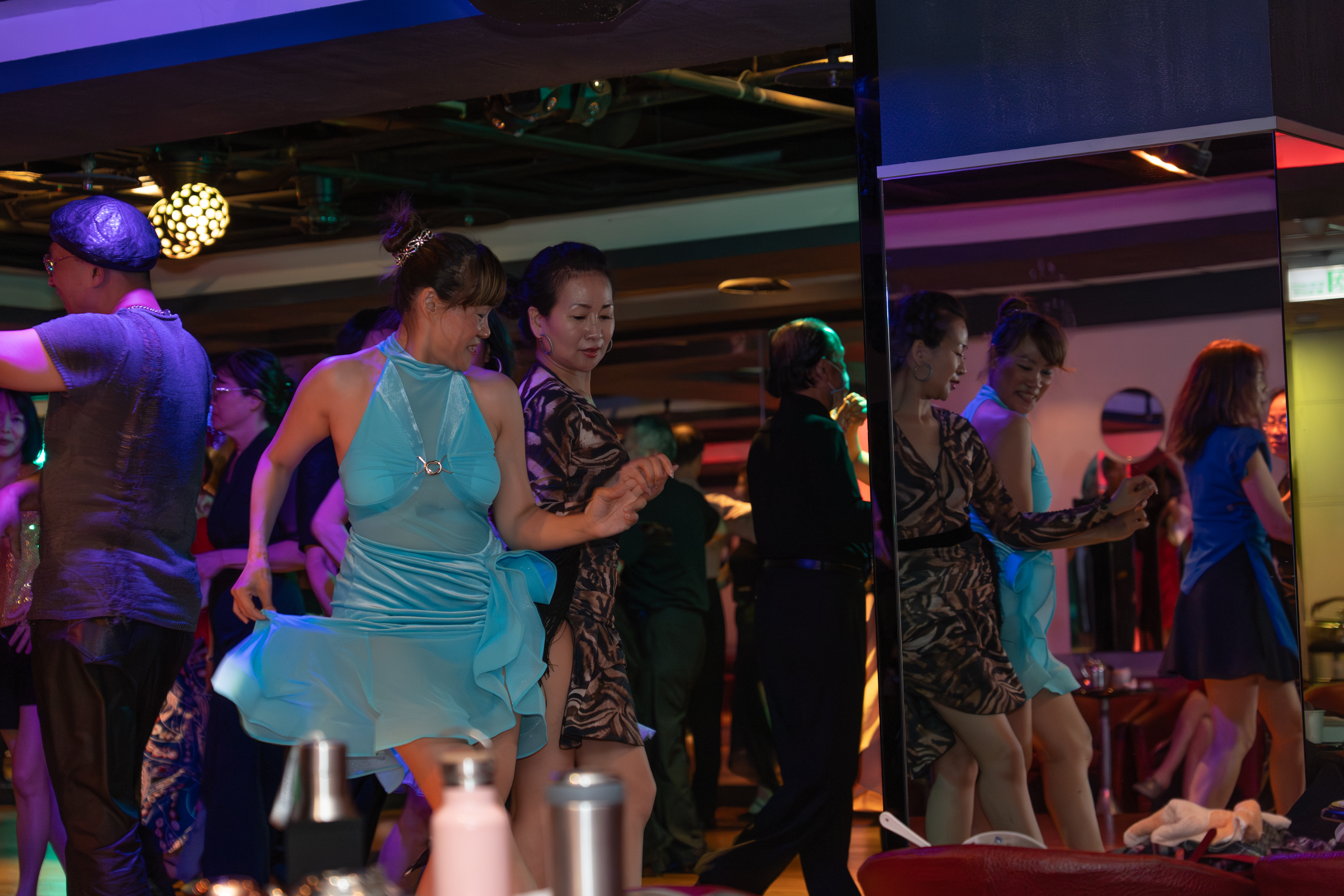 舞場從早上八點半便開始營業,不同時段有著不同客群,早場以舞蹈老師和學生上課為主;過了中午十二點半,退休族群陸續進來,六點半的晚場則多是半退休、下班後的中年人。小護士和姐妹淘,總在晚場時到來。