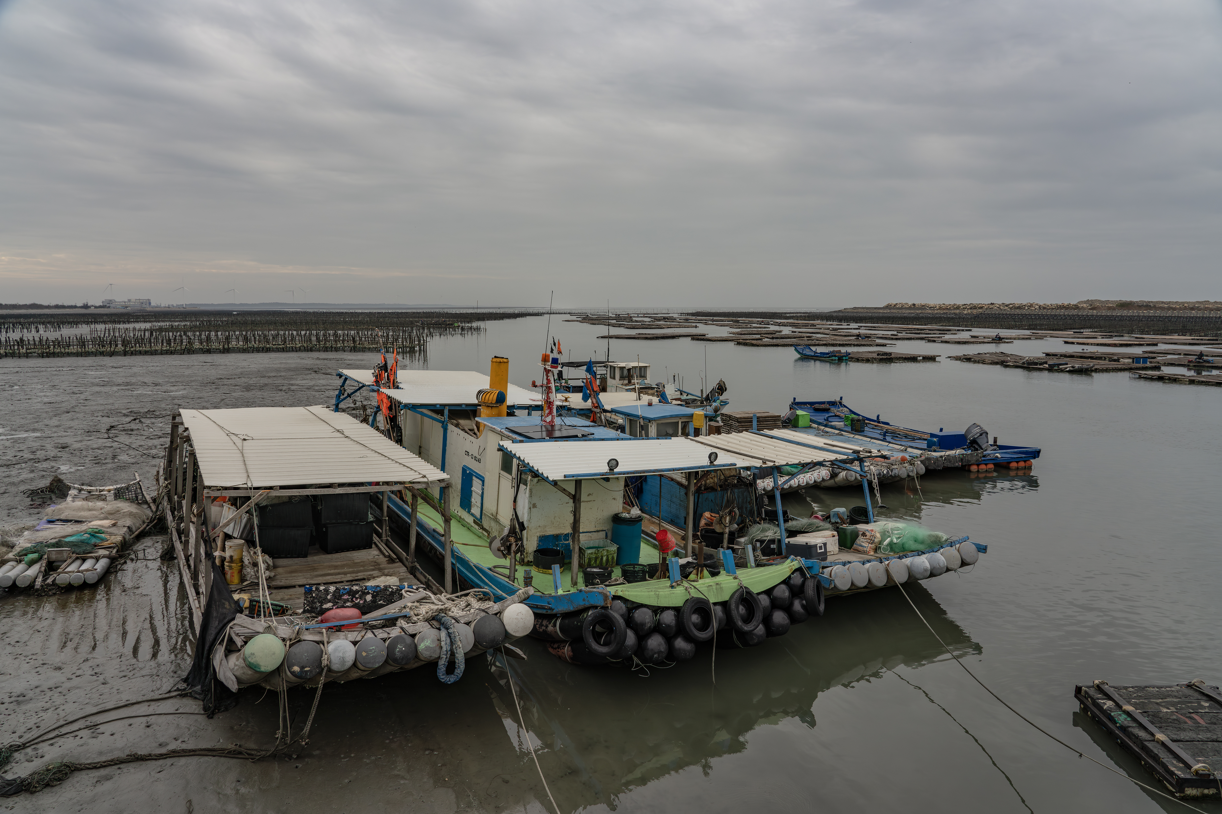 退潮後的雲林五條港水道呈乾涸觸底狀態;別說凱文的大型膠筏無法進出,就連蚵農的小膠筏都難以自由航行。如泥灘般的水道非五條港獨有,而是西海岸諸多小漁港共同的處境。