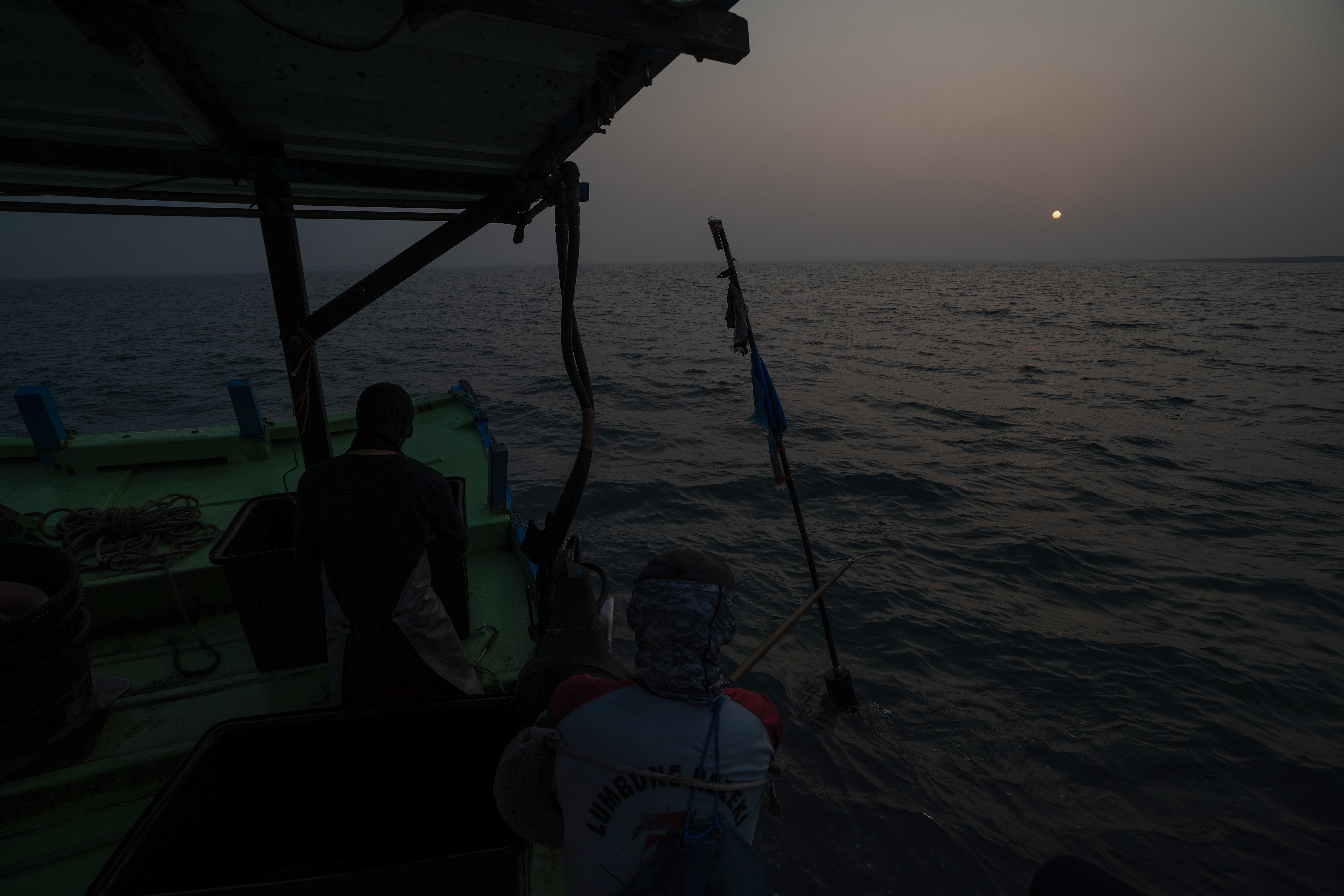 下完最後一網,已經晚上十點了。趕著潮水進港的一行人,跳上貨車趕夜路回家,明天清晨五點半還要趕潮水出海。有時他們也不會返港,直接錨泊在外海夜宿,等待天未明時開始又一天的海海人生。