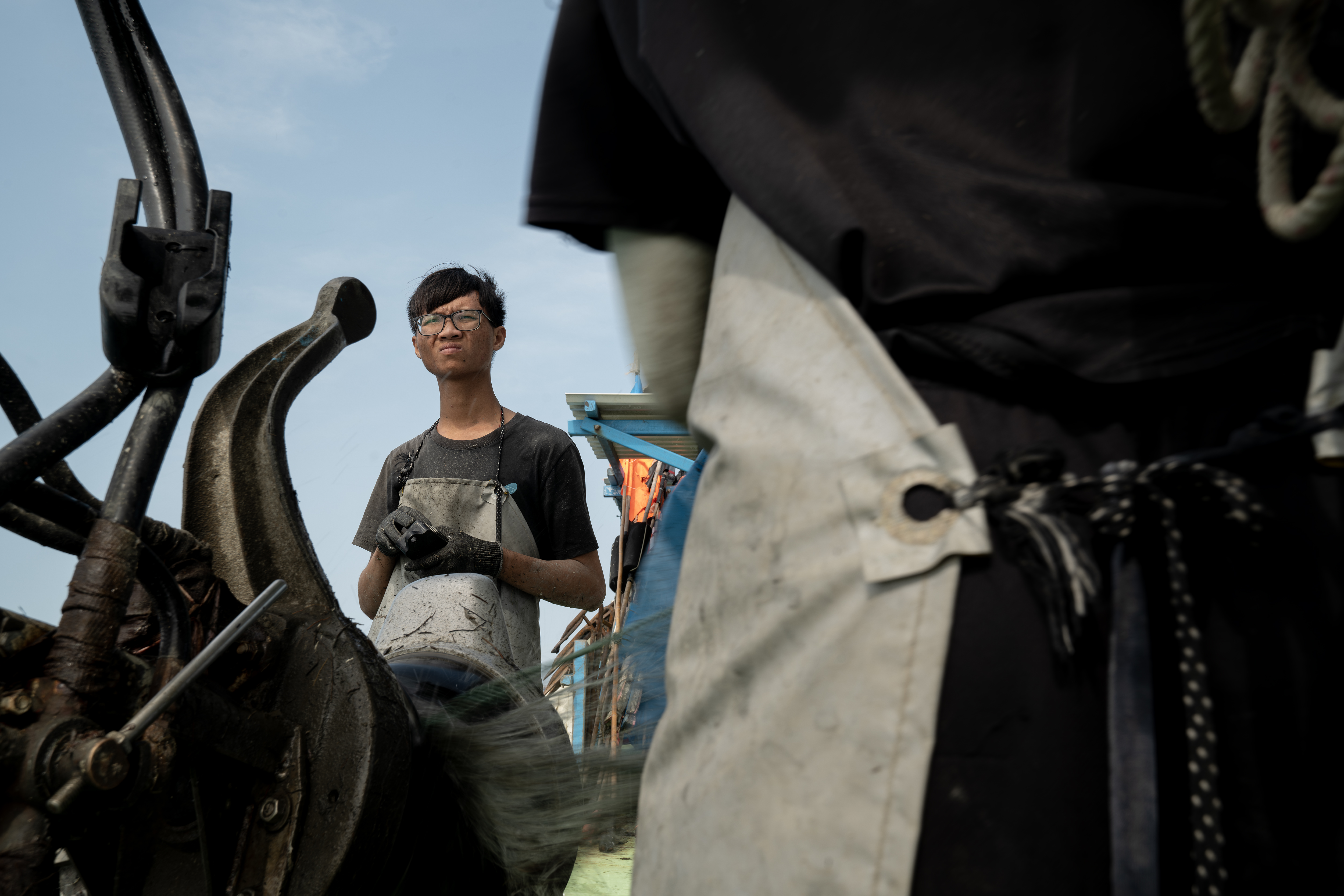 近海、沿岸漁業資源的萎靡,也意味另一種海洋經濟需求的崛起,或者說爭奪。 「我家原本主要的漁場並不在這裡,但離岸風機一來,施工、打樁,真的擾動了海底生態。捕不到魚只好換地方跑遠一點。」凱文無奈地說。