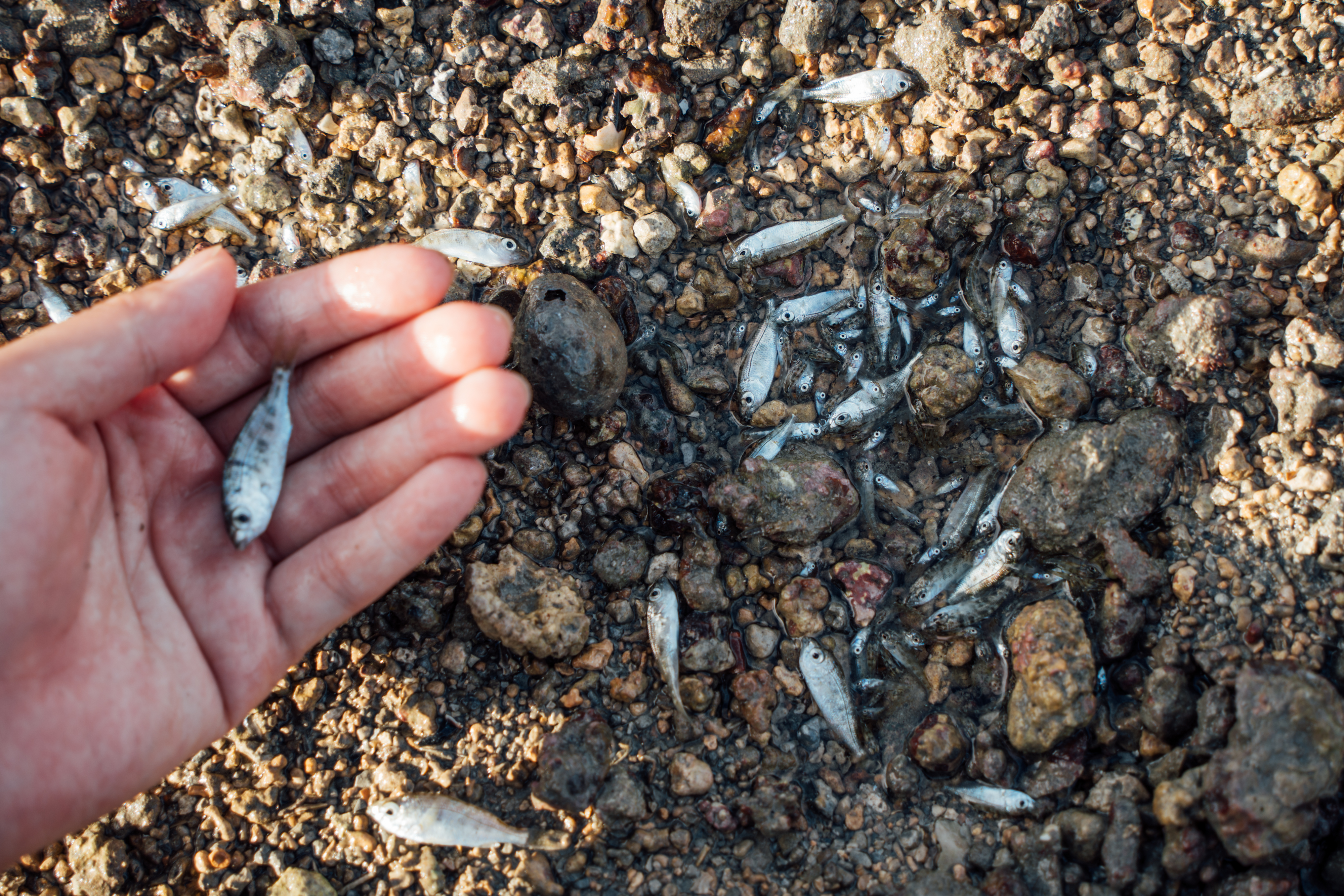 不只人類,潮間帶的豐富生態系,也因砂砱堆積而面臨嚴峻生存危機。水試所澎湖漁業生物研究中心主任謝恆毅觀察,砂砱淤積不僅造成珊瑚礁生態系無法呼吸,也阻礙陽光和水流帶來的養分。