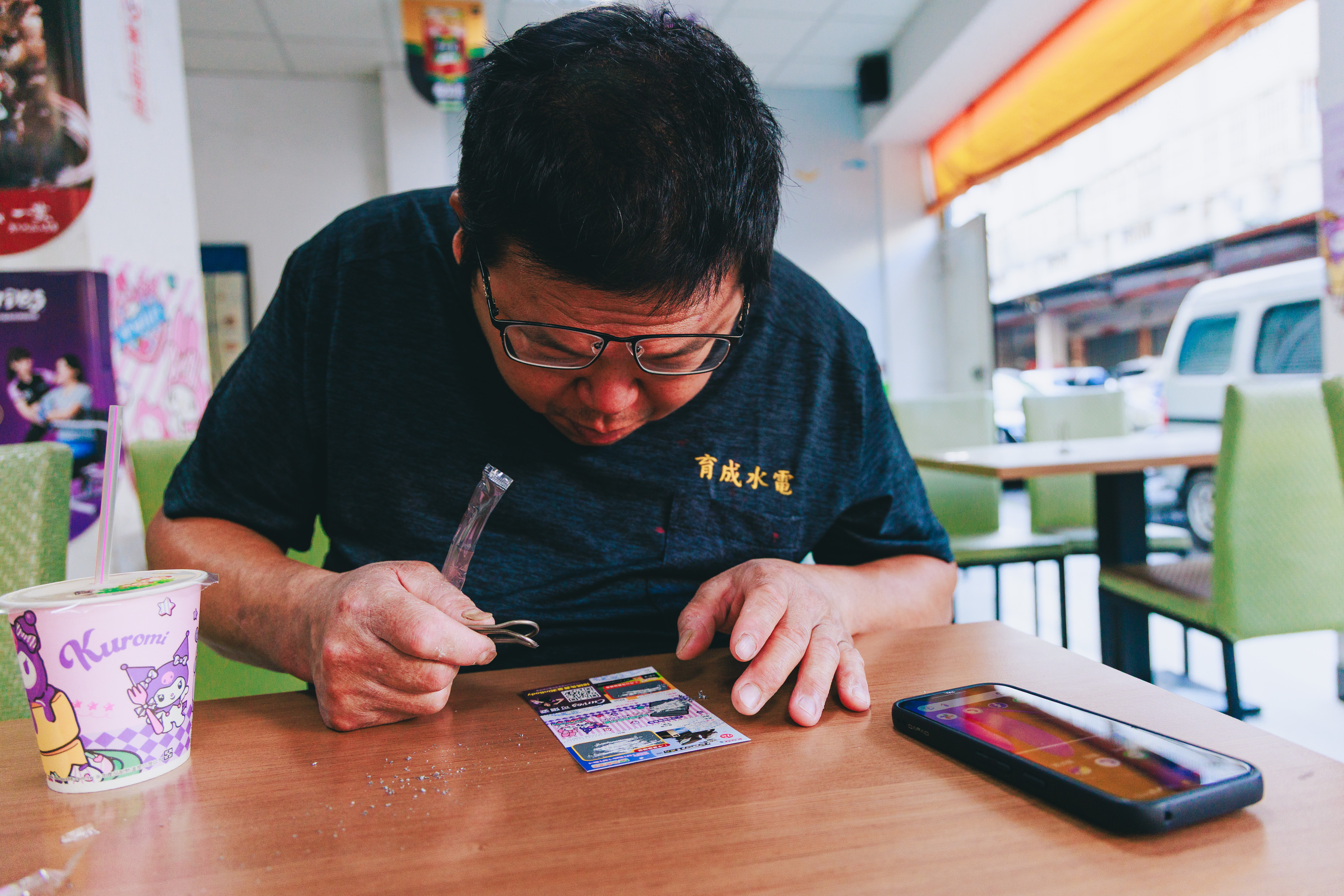 鏡頭內的世界,我看見他積年累月的勞動化成手上厚實的繭、輕微動盪就會刺痛的膝蓋、每日服用的十幾顆藥丸。平常對話像吵架般的音量,是工作環境吵雜帶來的副作用;拐彎的溝通方式,是無意識承接上一代的習慣;繁忙工作,則是為了擺脫童年貧窮陰影。