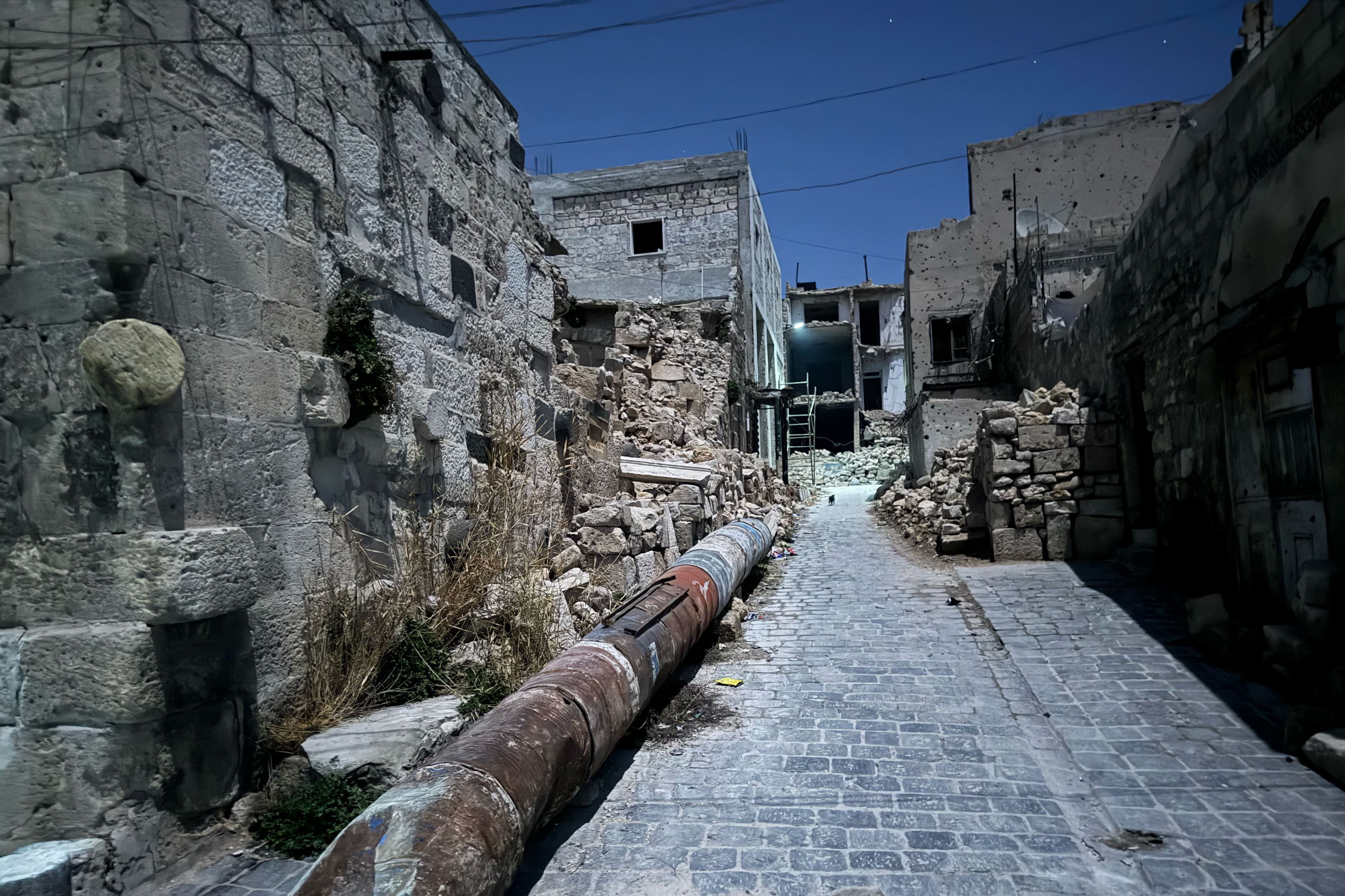 阿勒坡在內戰前是敘利亞第一大城,也是全國最重要的產業城市。戰爭初期,這座城市被一分為二,成為戰火摧殘最猛烈的地方,直到 2016 年阿薩德軍完全掌握此城,戰火才稍微停歇。然而直至今日,阿勒坡許多地區仍滿目瘡痍。