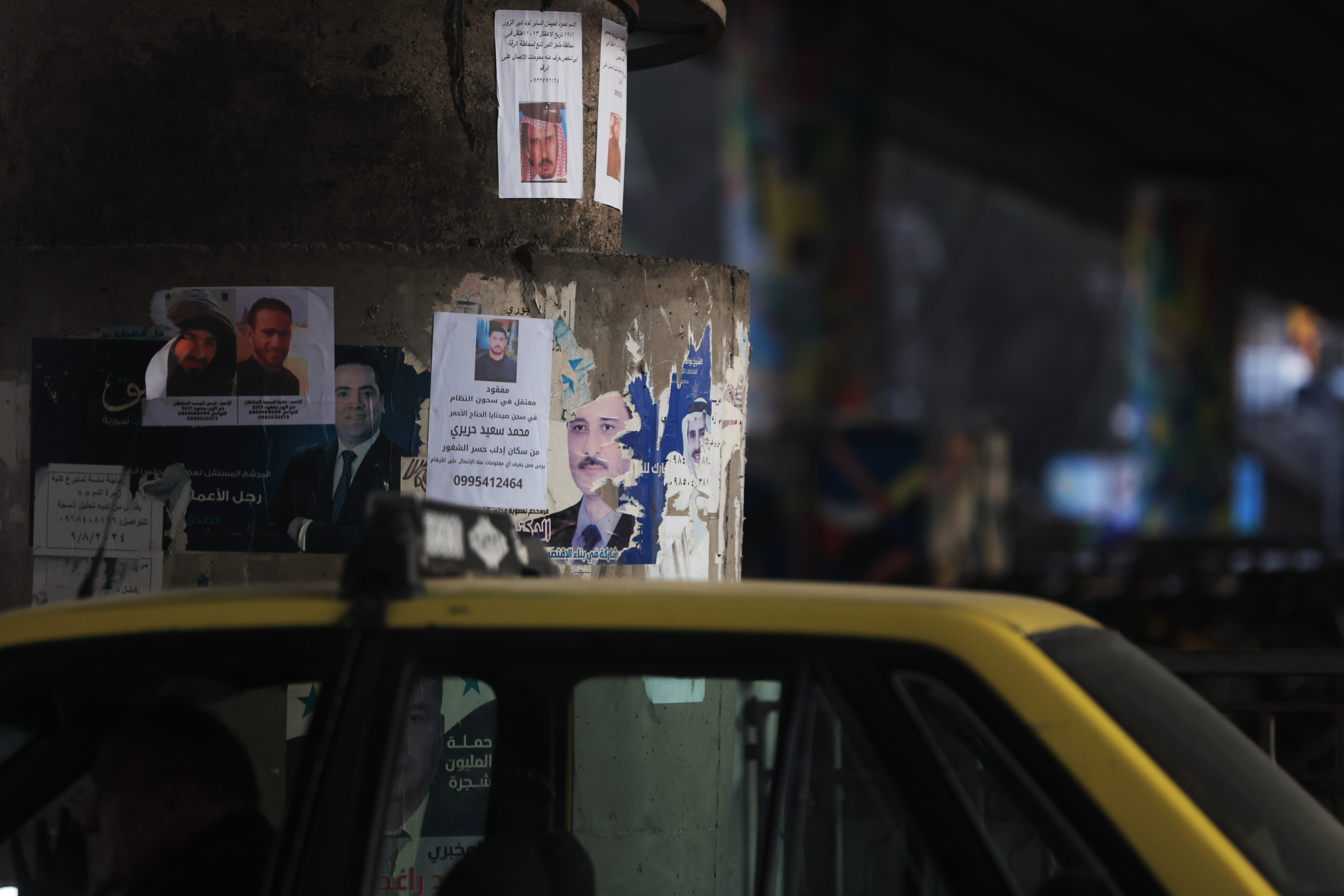 大馬士革「總統橋」下,殘存的阿薩德頭像。滿佈在他頭像旁的,幾乎都是在協尋「戰時失蹤人口」的告示單。如今,阿薩德自己也成了戰後的失蹤人口。