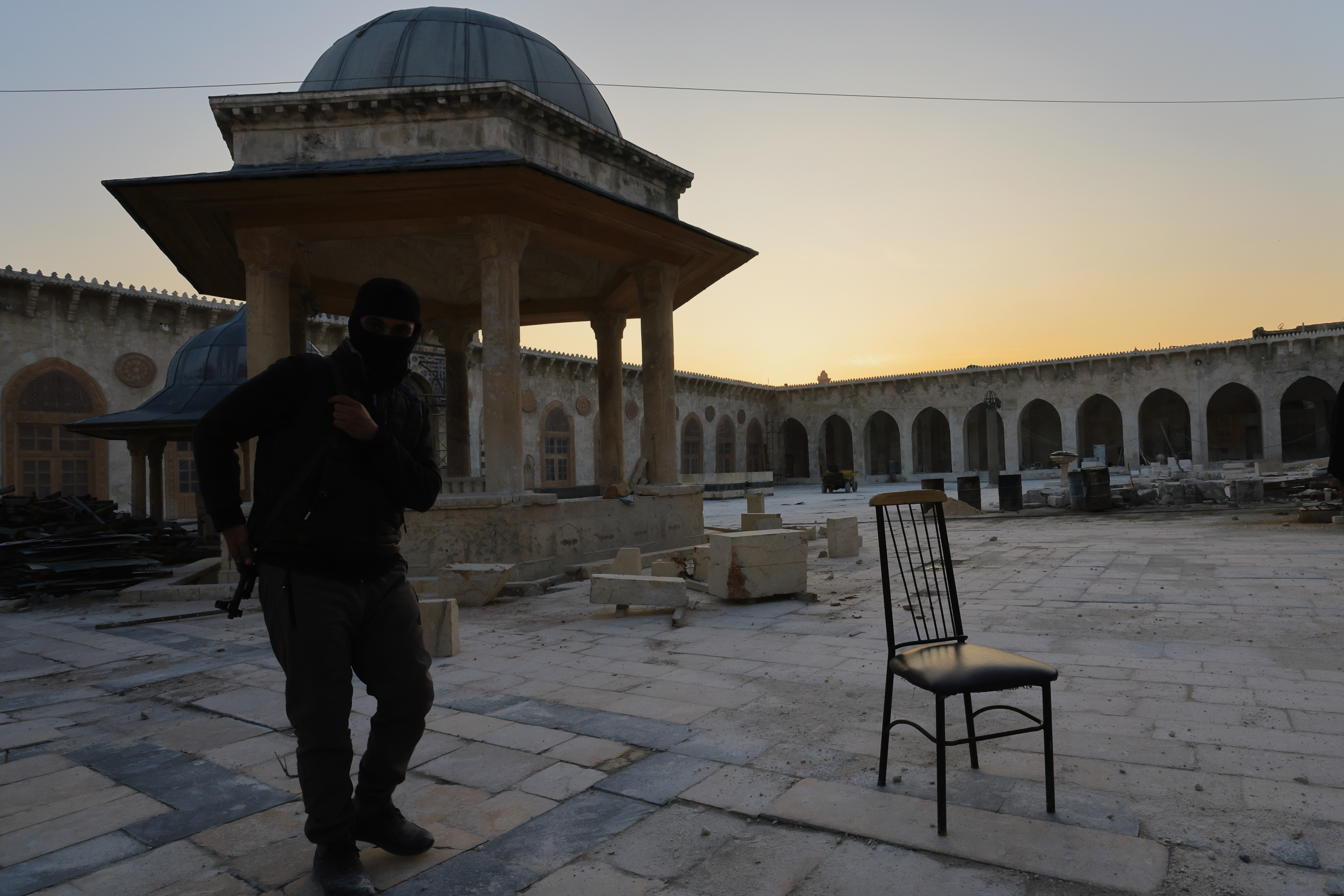 如同不少反抗軍的士兵, X 飽受極權的蹂躪,家中有 16 人被捕或被殺,加上他居住的城市不斷受到攻擊,官逼民反,令他選擇用武力捍衛自己的家。「解放後,我們站在這片土地上,藍天在微笑。」站在阿勒坡大清真寺廣場上,這裡一直被遜尼派視為聖地直至內戰烽火降臨,堂皇的大殿被毀,人去樓空,香火鼎盛畫面不再, X 亦因政府軍掌控阿勒坡,多年未有踏進這地。