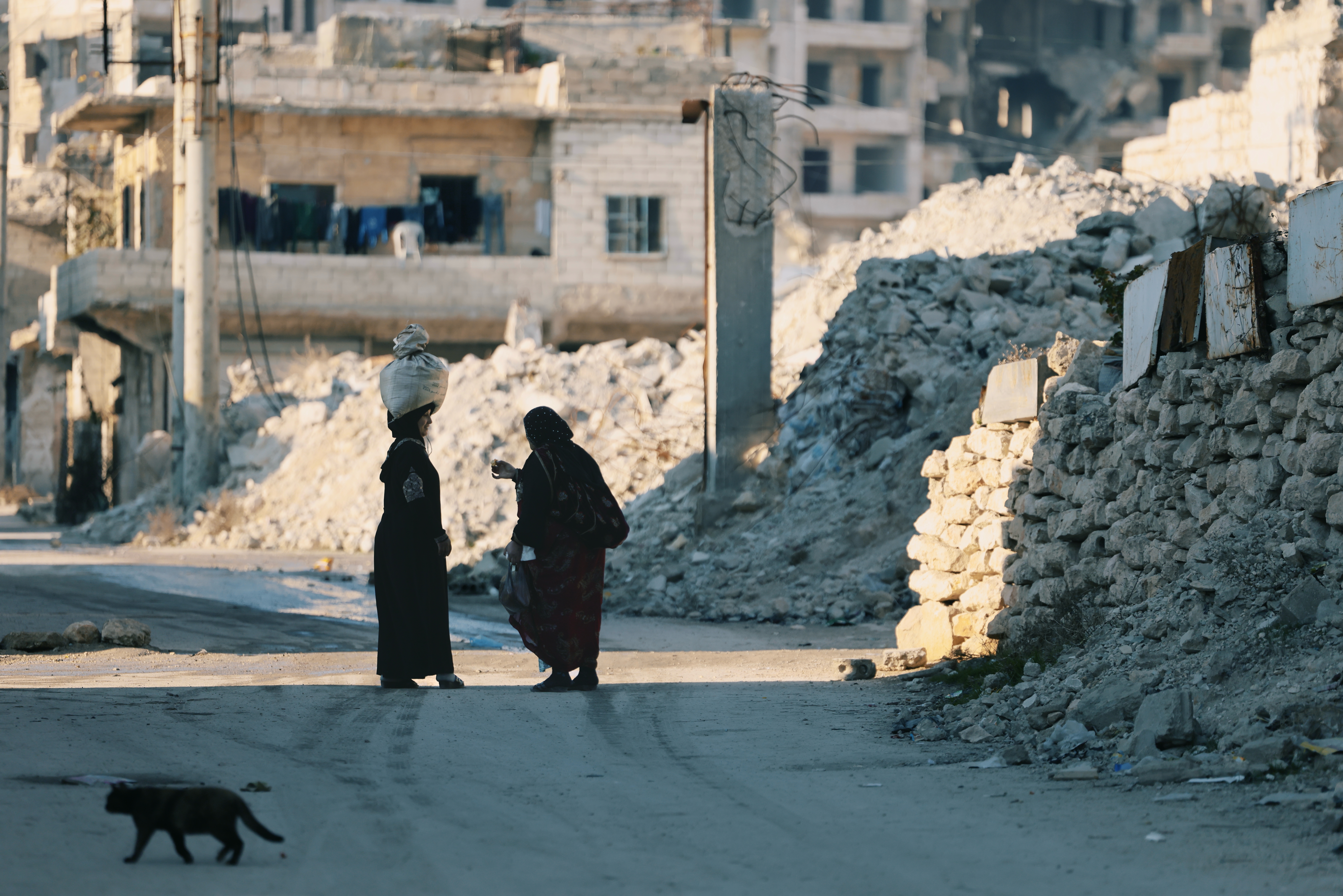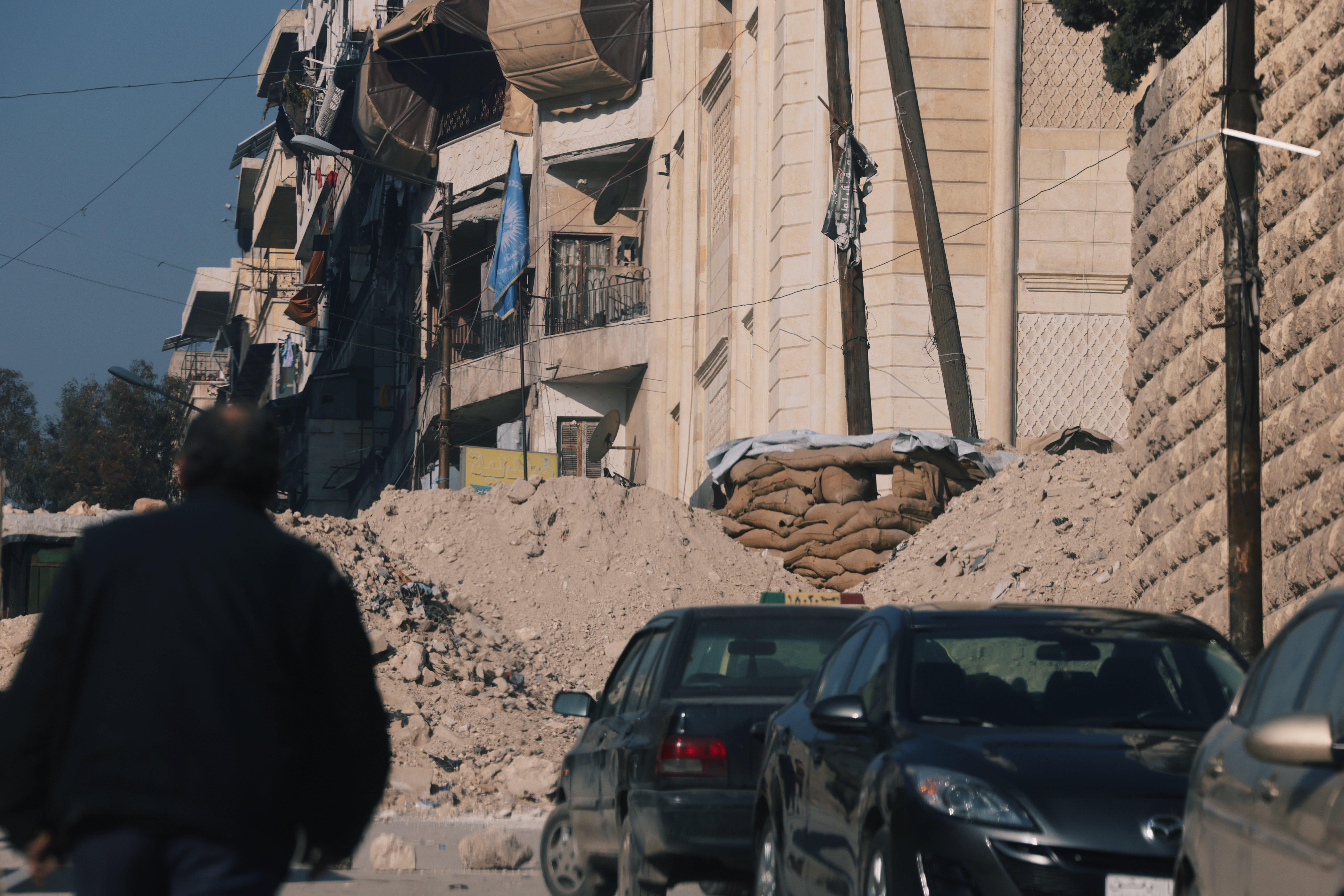 即便許多地方被炸得如同廢墟,但許多人仍拒絕離開,持續在此生活。從往來行人的裝扮,可明顯分辨居住在 Sheikh Maqsoud 的族群與阿勒坡其他區域稍有不同。這裡雖是庫德族大本營,同時也是少數族群避害居住的區域。