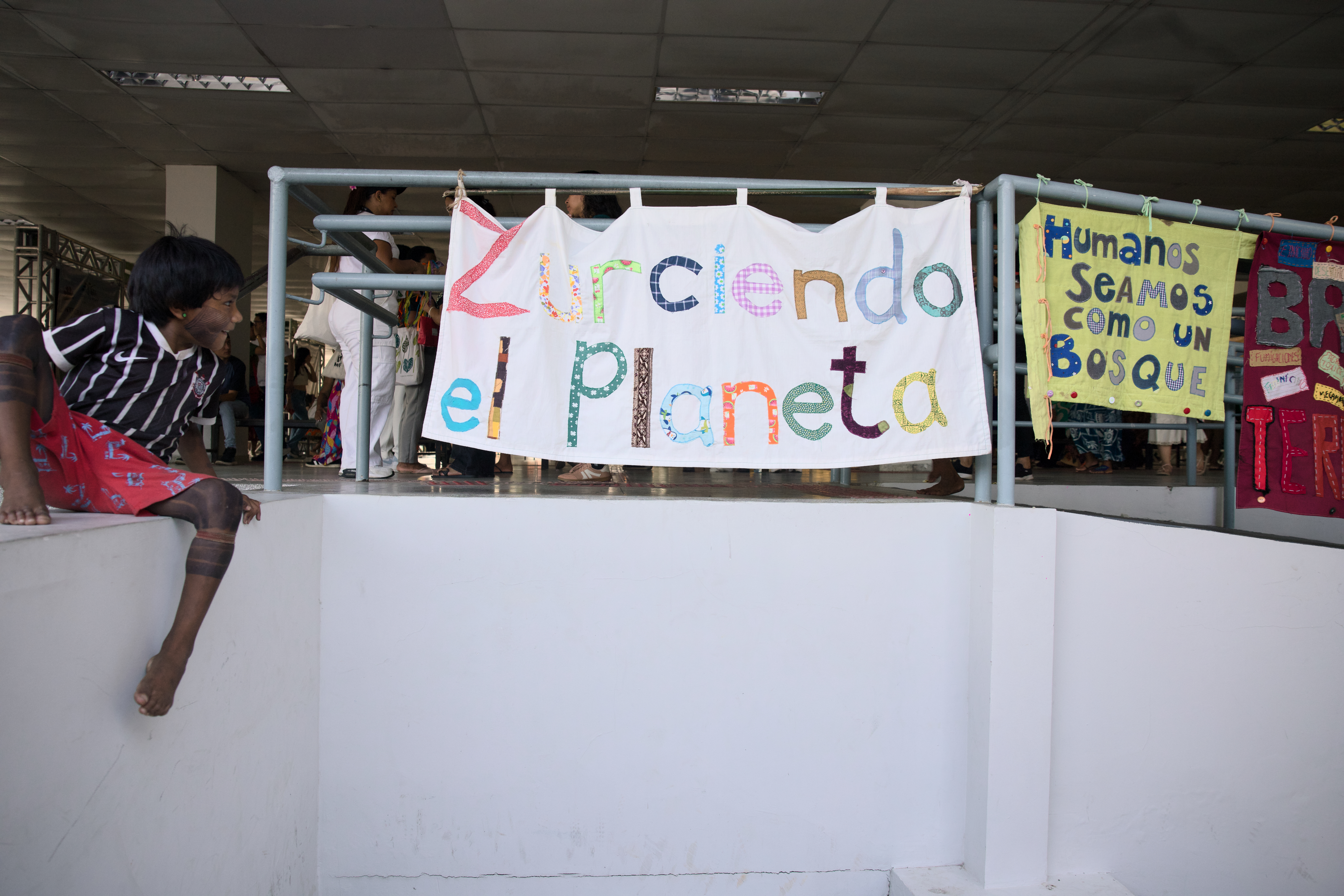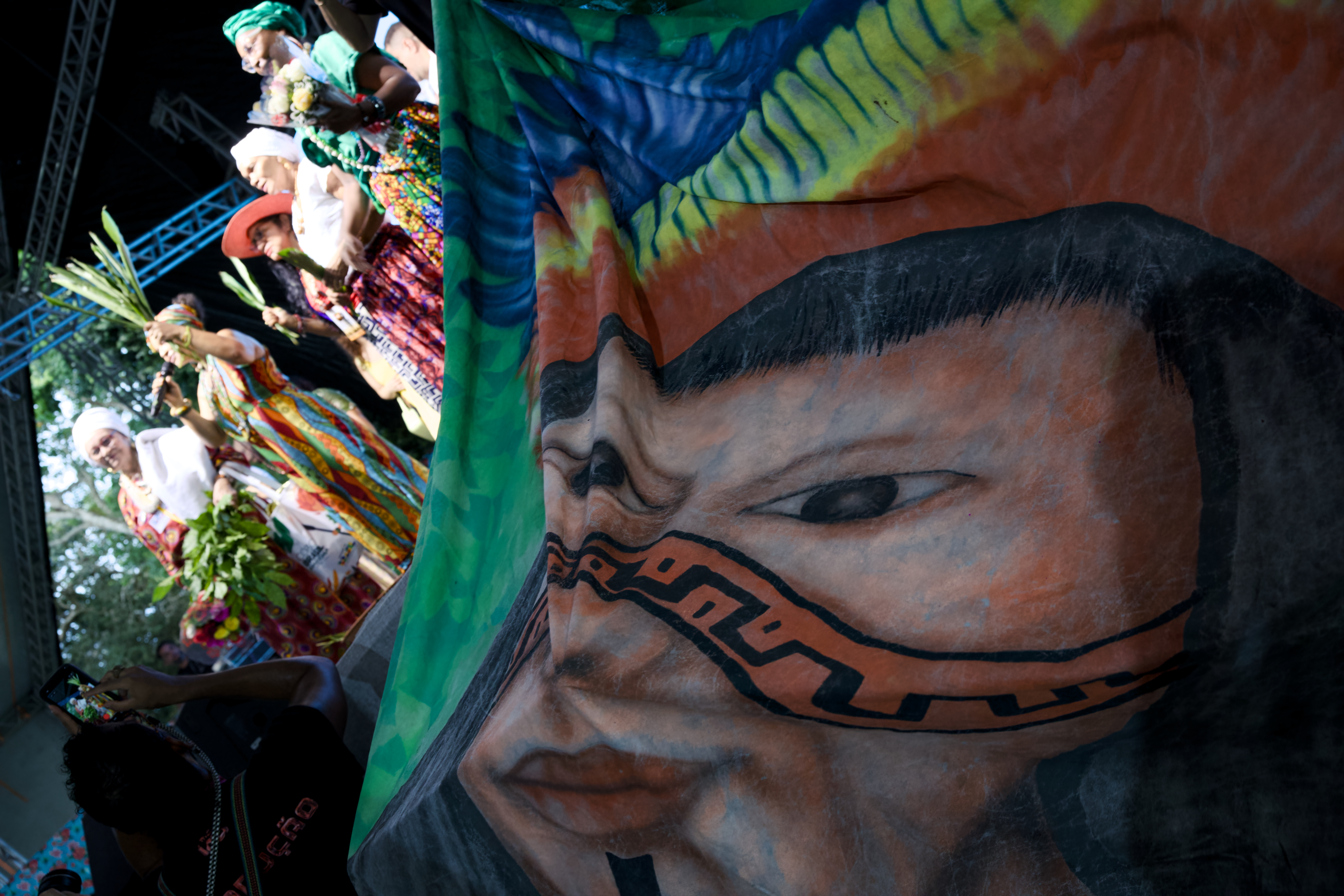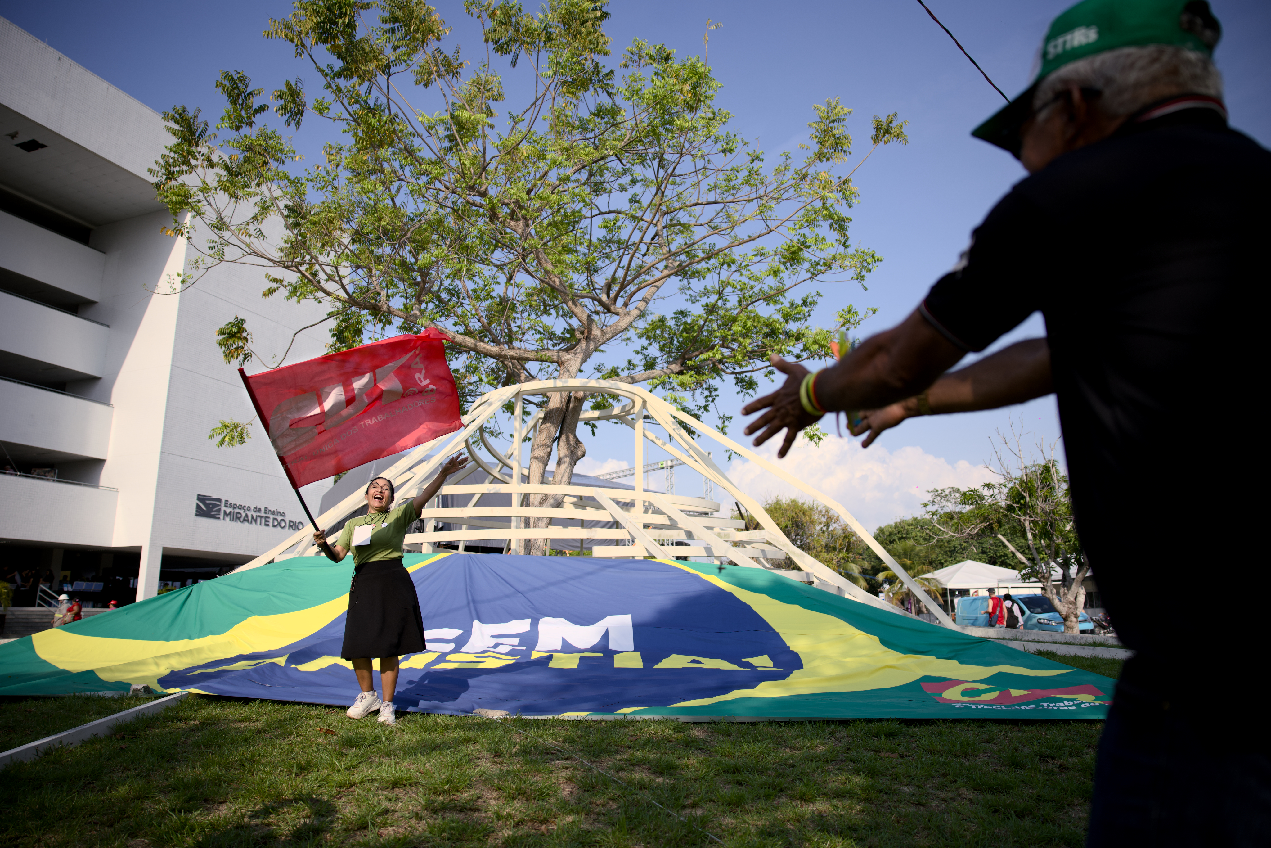 而年僅 16 歲的伊西斯(Ysis Rebeca Alves Rodrigues)是第一次參與社會運動。還在貝倫讀書的她來自黑人後裔金邦社群(Quilombola)——位於巴西內陸,由非裔黑人與其他族群建立的聚落,居民多為逃亡奴隸的後裔——她興奮且堅定地說:「能來到這裡真的充滿感激。這是我第一次看到這麼多人、來自不同文化,一起為森林、為亞馬遜而奮鬥。我感到榮幸能代表我的族群,讓世界知道我們會一直為家園的權益站出來。」