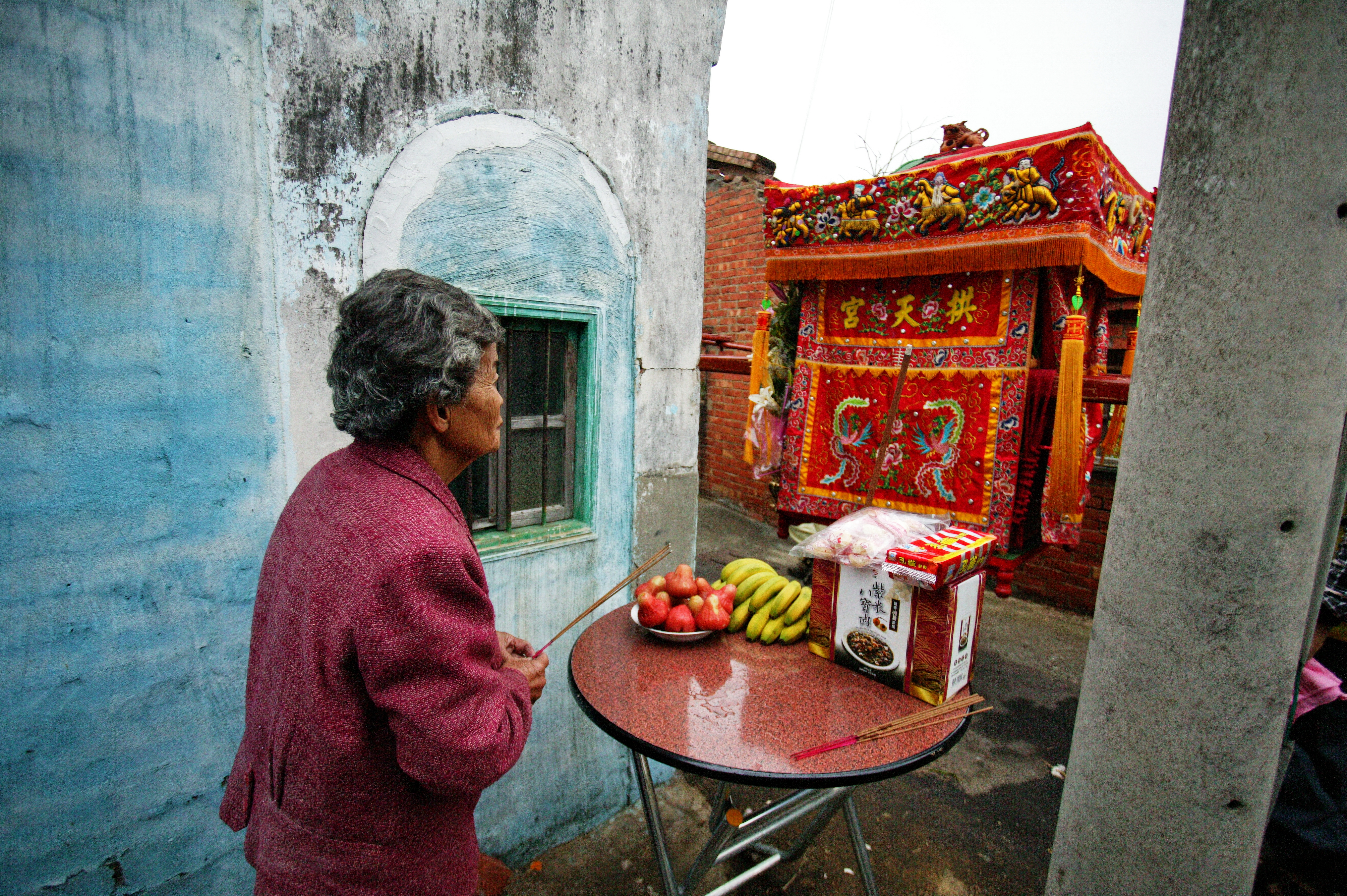 2015 到 2019 年,我連續五年在二媽遊庄時拍攝了內島里的這位婆婆,一期一會。每次二媽遊庄,我最期待的就是看到這位婆婆,彷彿見到老朋友。2020 年再去,沒看到婆婆;她家門口不見香案,門戶也關著。