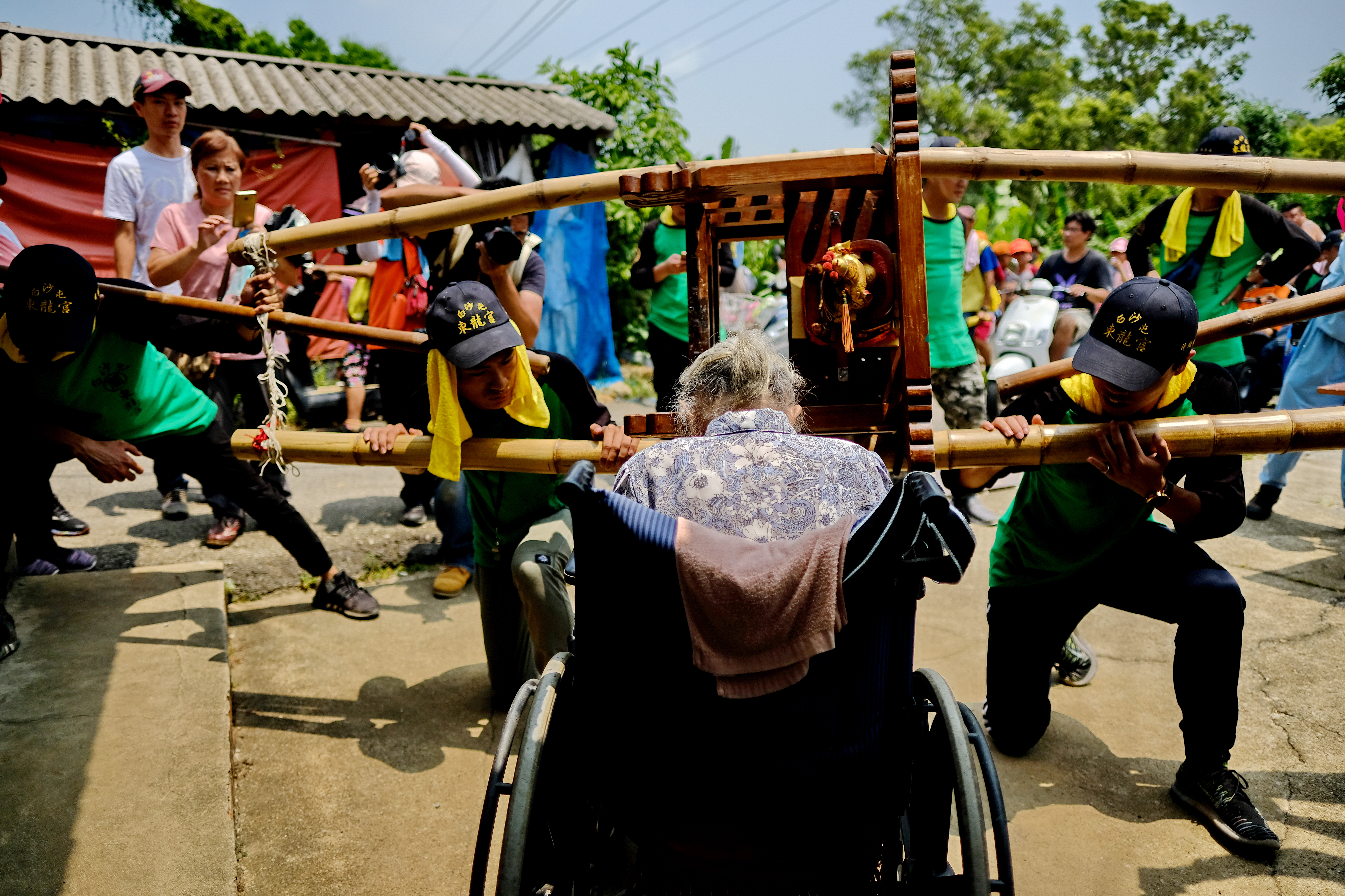 對攝影者來說,紀錄廟會剛開始可能先搜奇獵豔,尋找特別的場景、畫面。我從 2006 年開始紀錄,十年後回頭思考進香跟鎮民的關係。這些民眾可能出錢、出力,家裡壯丁也跟著去進香,留下家中老人。我希望記錄背後默默支持這活動的完整力量,便利用起駕前二至三小時,穿梭在白沙屯白東、白西二里的民宅,記錄他們在起駕前的活動型態。