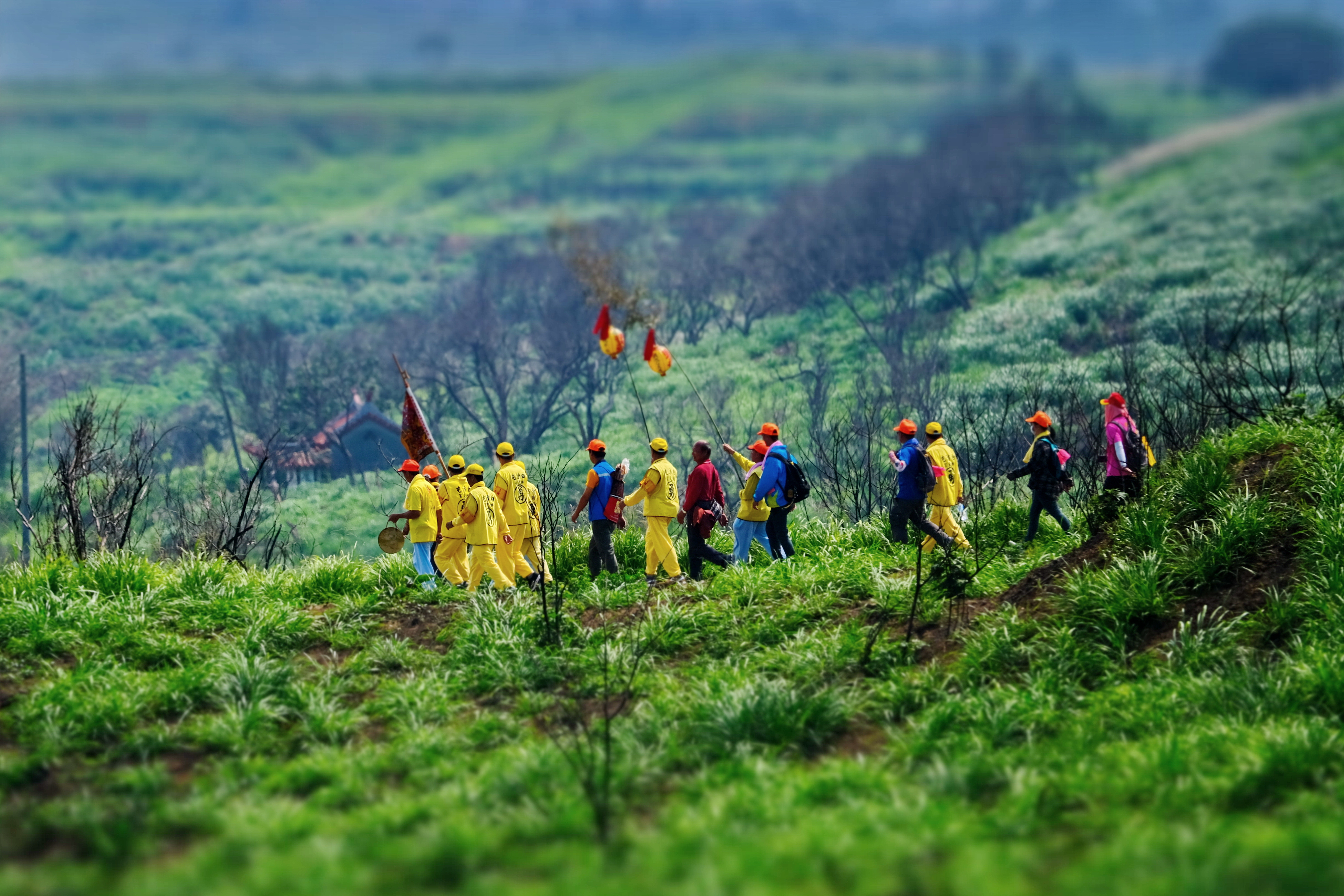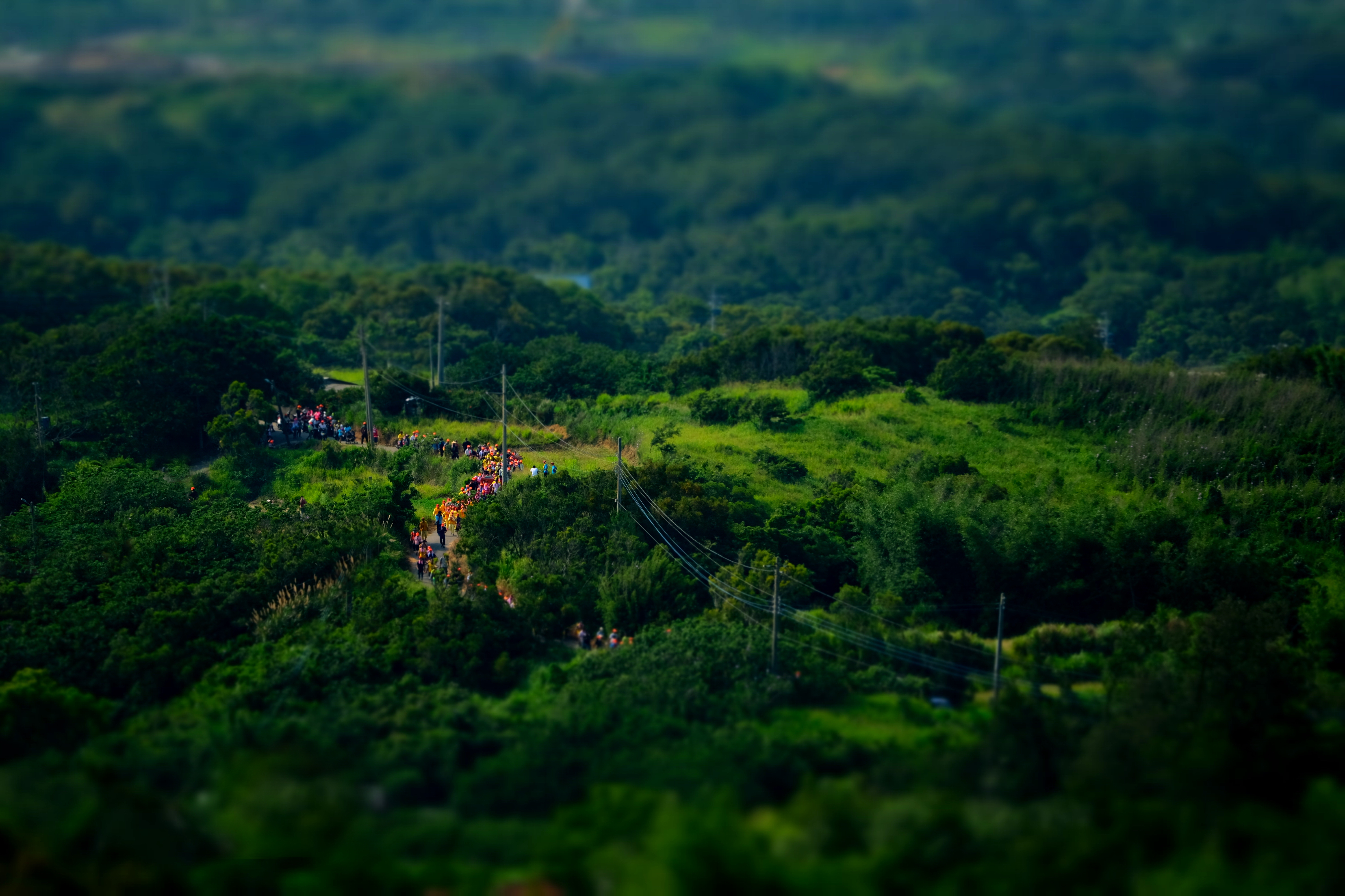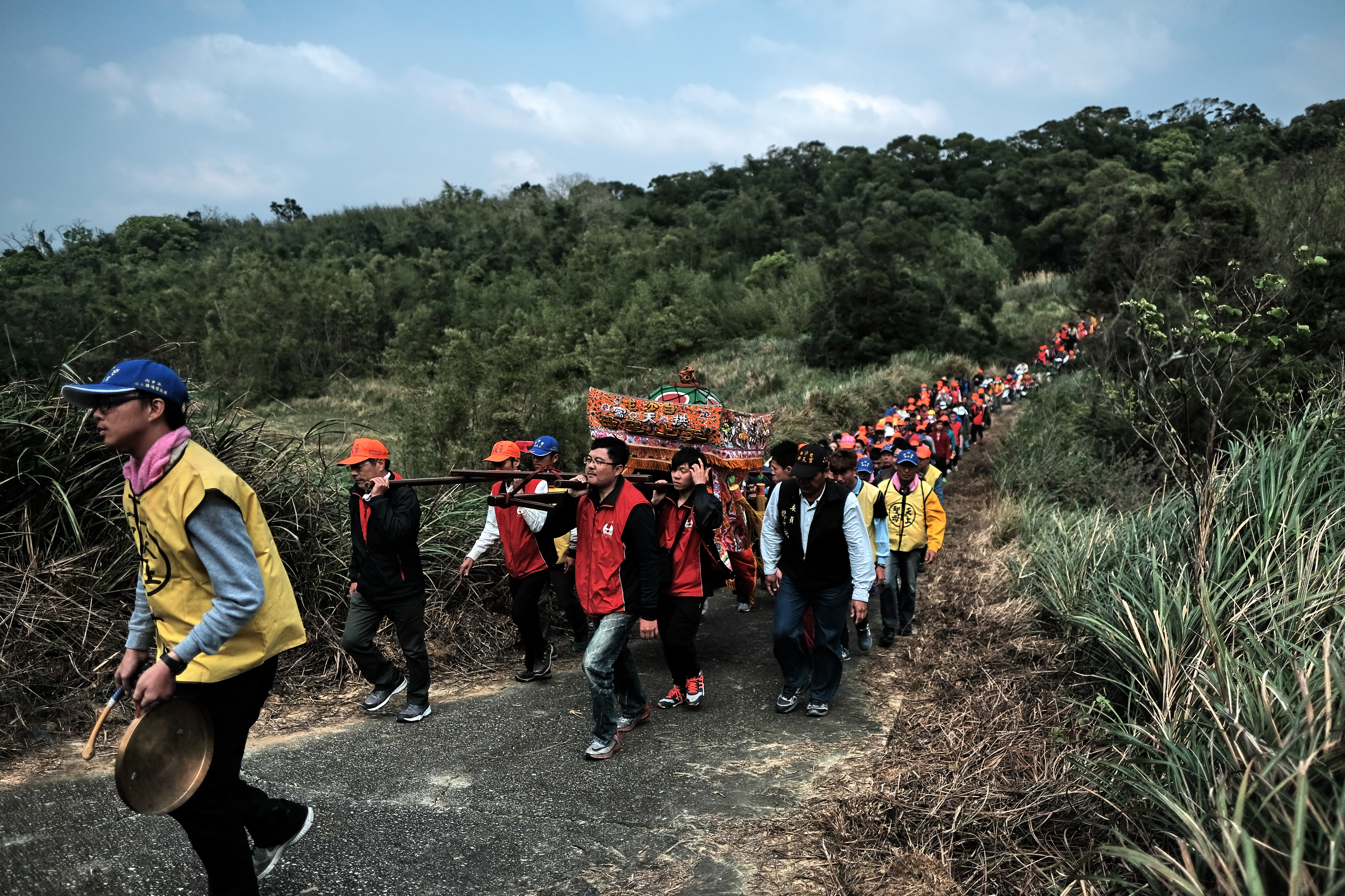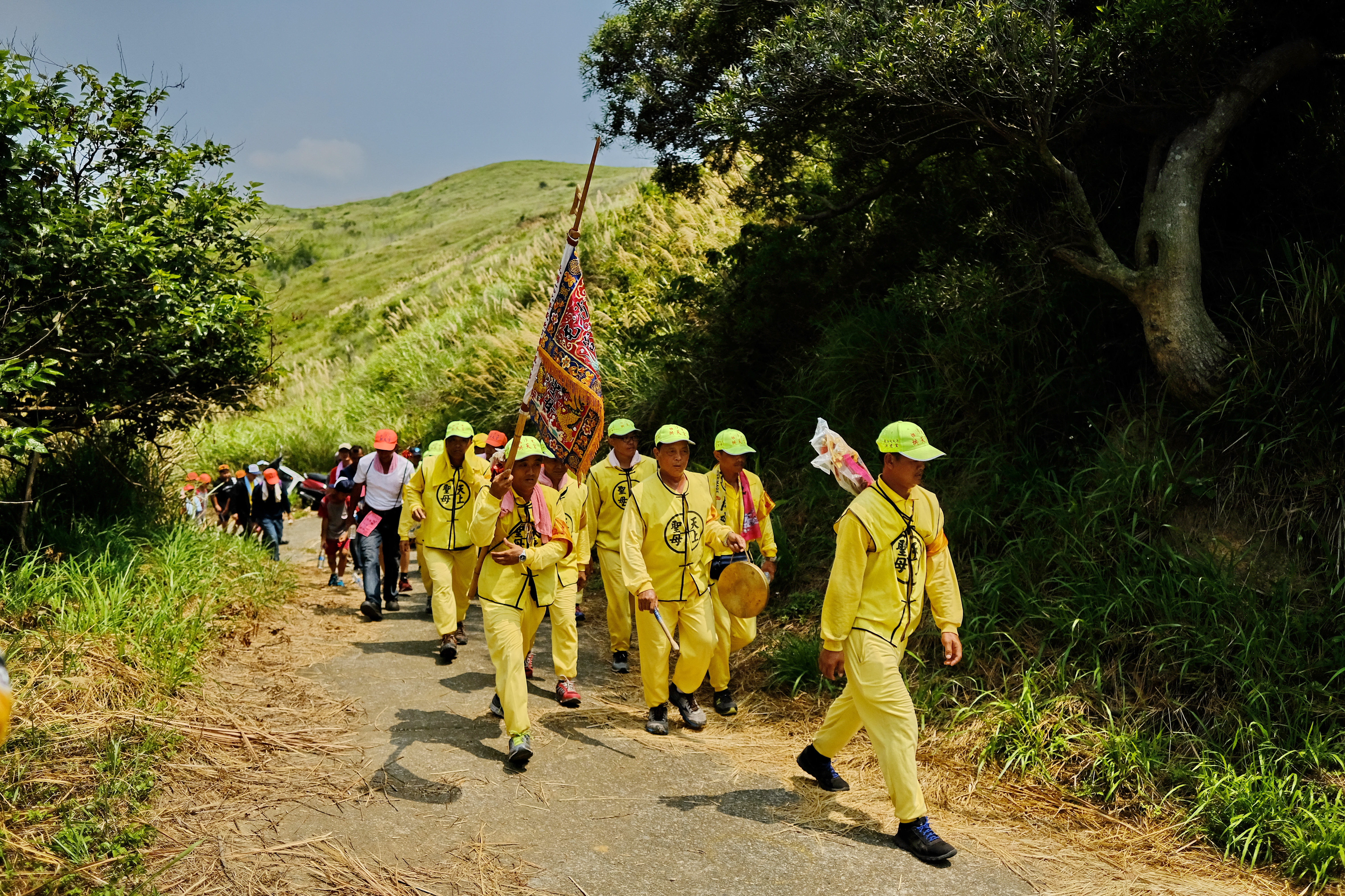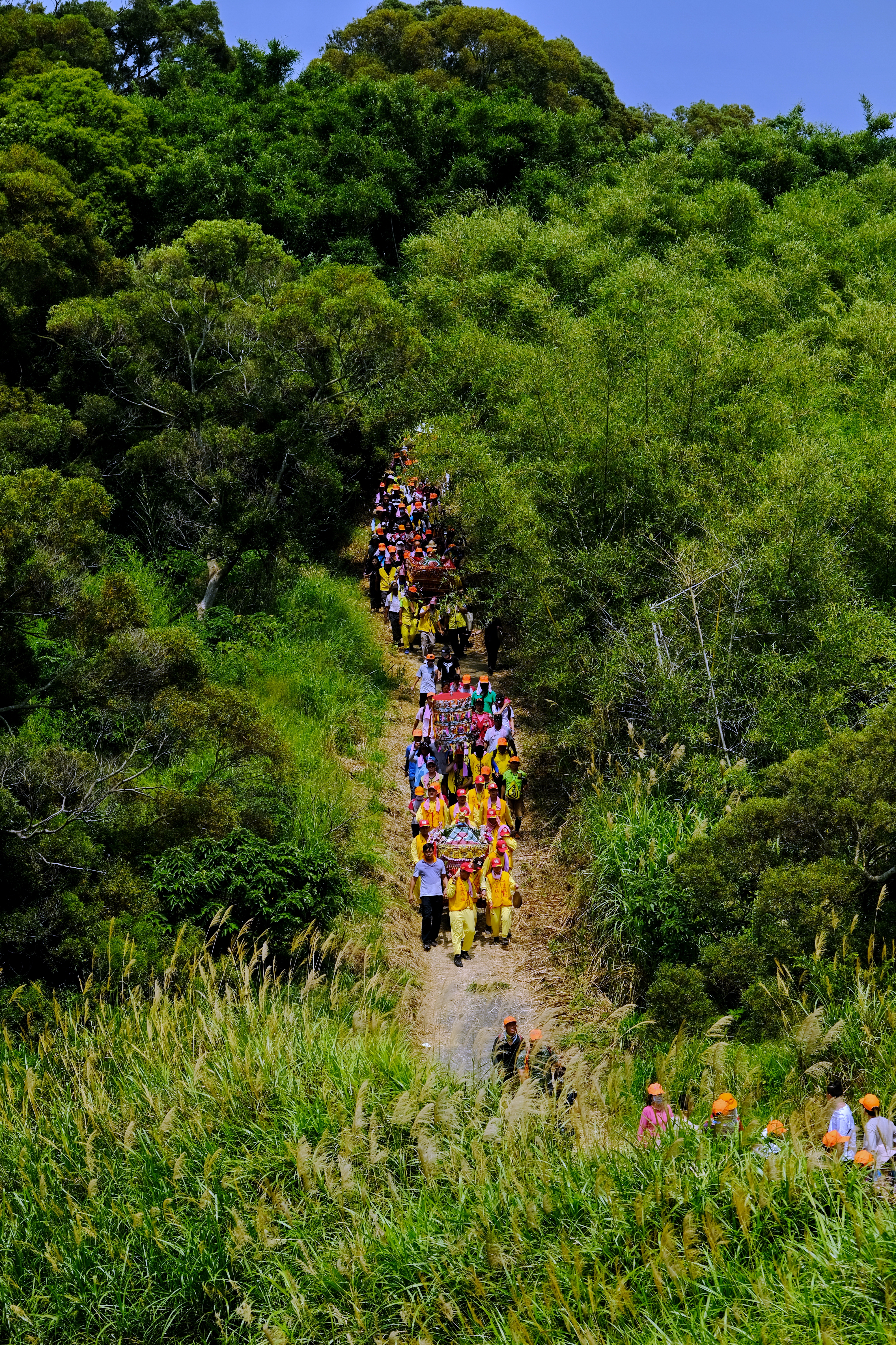 鄉間小路佈滿了二媽遊庄神轎和信徒;人跟自然包裹在信仰裡。遊庄行列走進荒僻之處,隱藏山野的居民,同等受到眷顧。